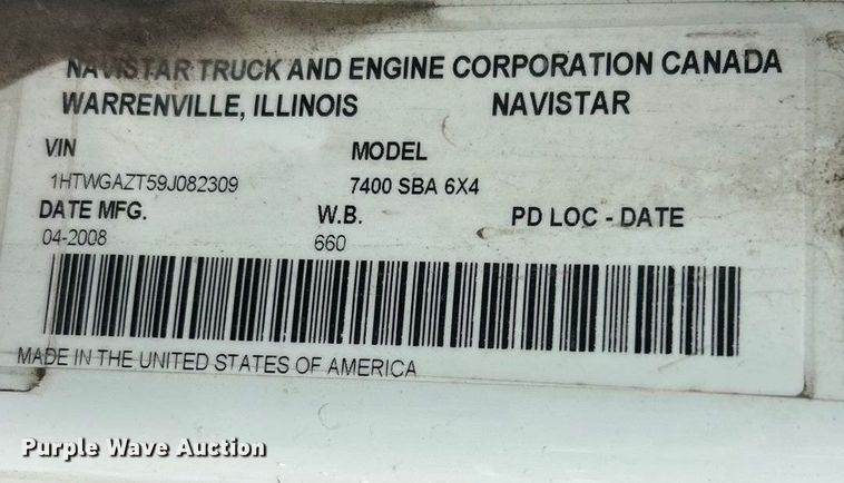 2009 International 7400 SBA refuse truck