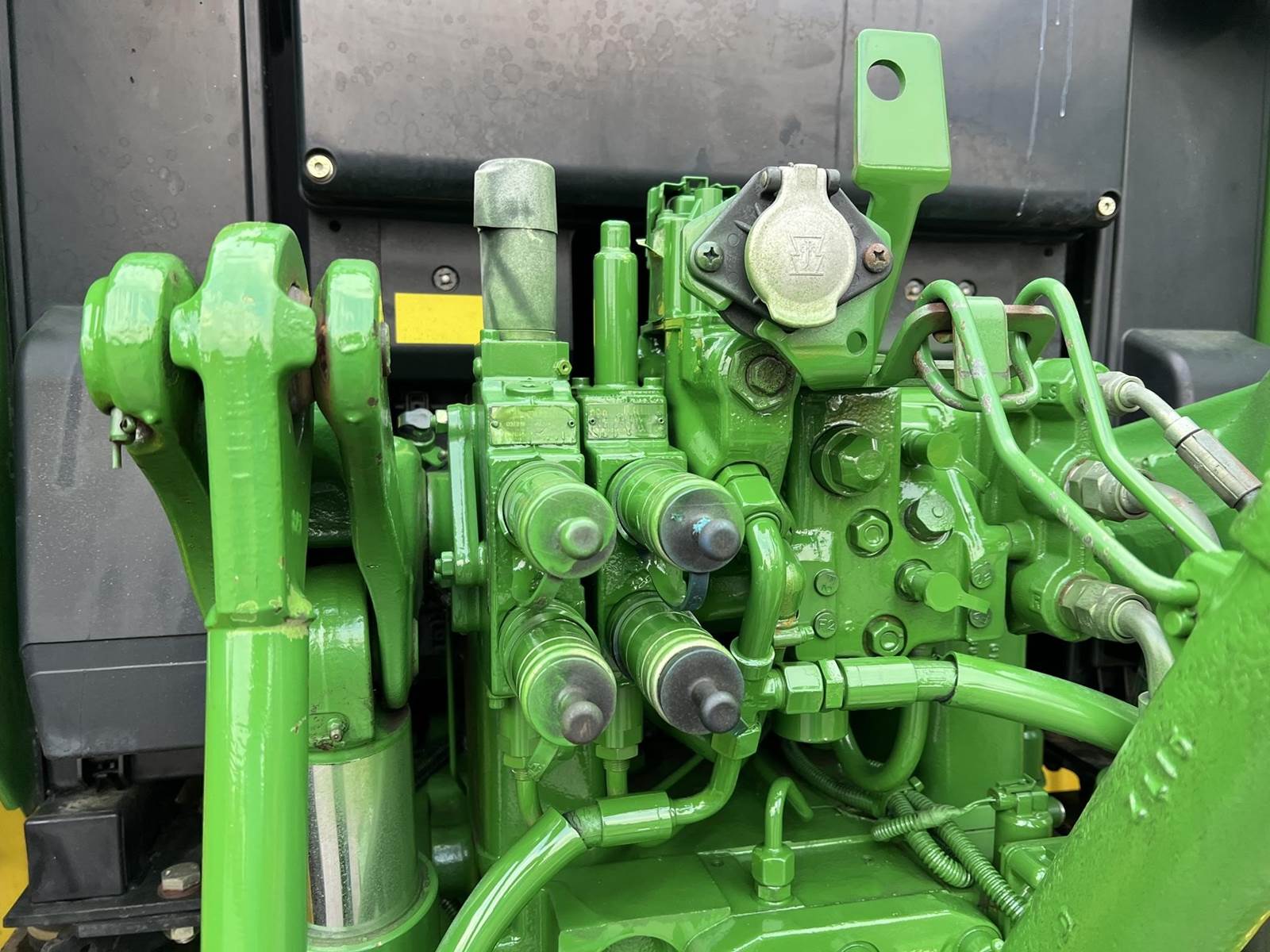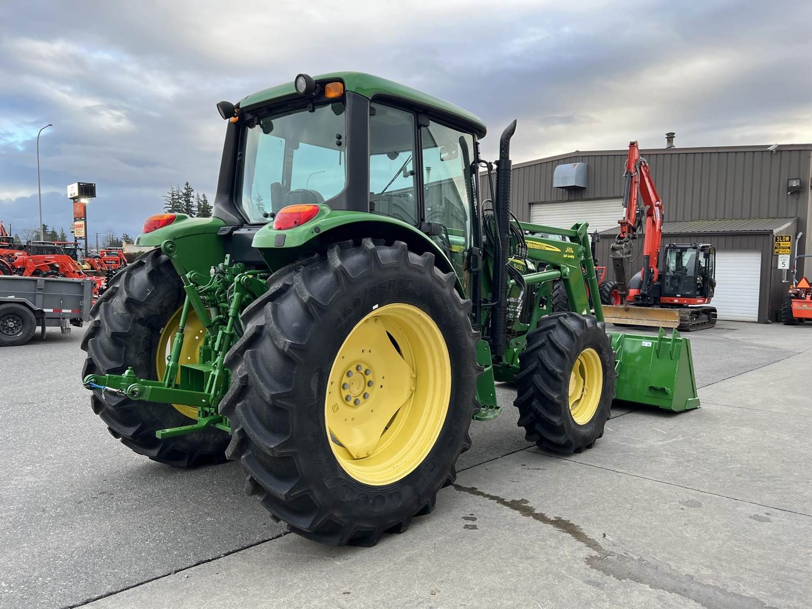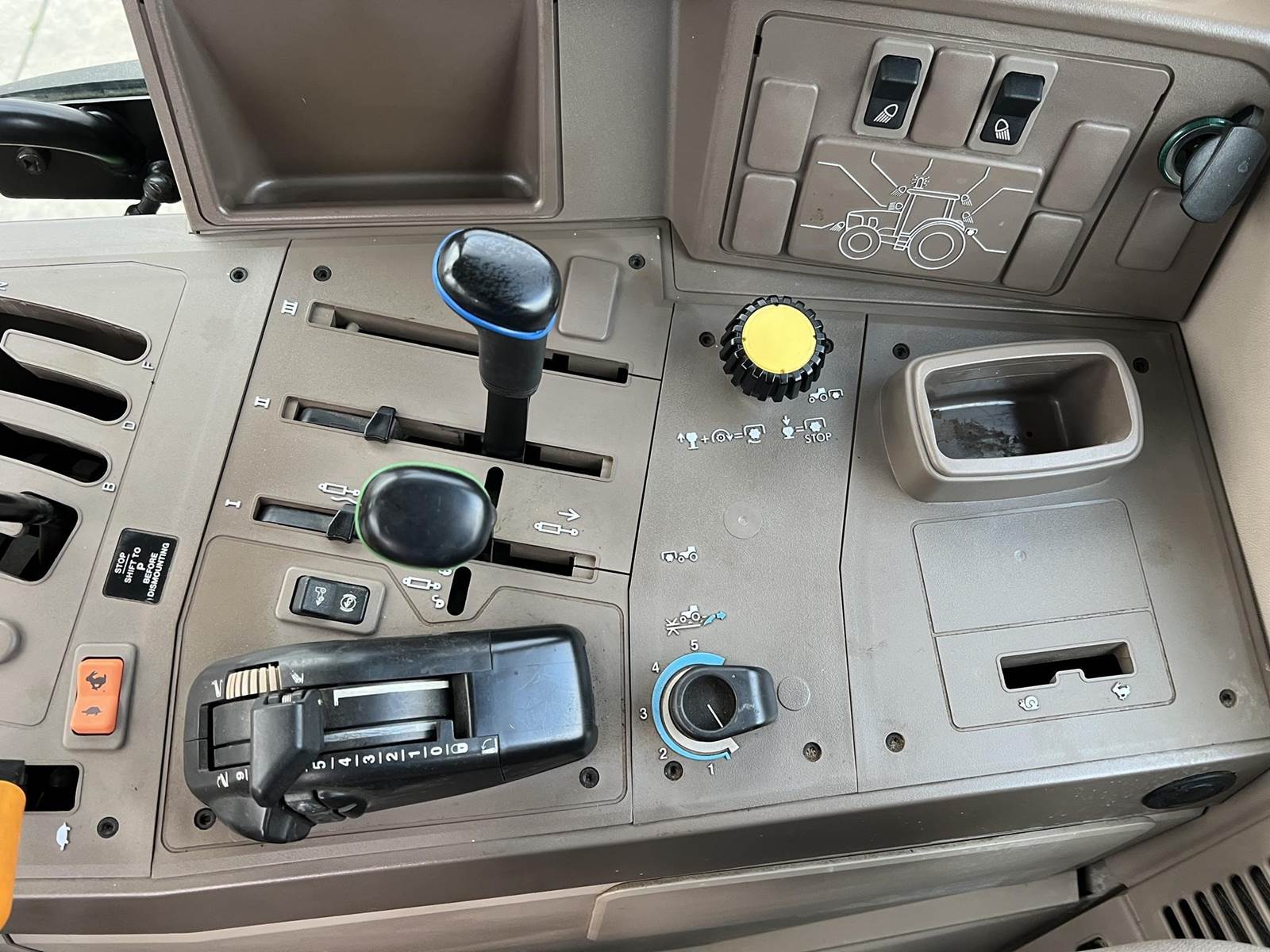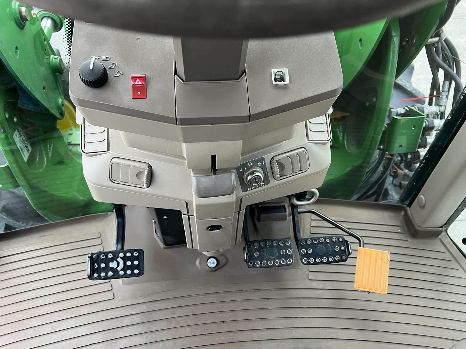 2009 JOHN DEERE Tractor - John Deere turbocharged diesel engine, PowrQuad partial power shift transmission with four gears in six ranges with left-hand reverser lever, 673 loader with bucket, 3rd function, 380/85R24 front tires, 460/85R38 rear tires, rear PTO, rear 3Pt., two rear remotes, cab, heat air conditioning, radio.