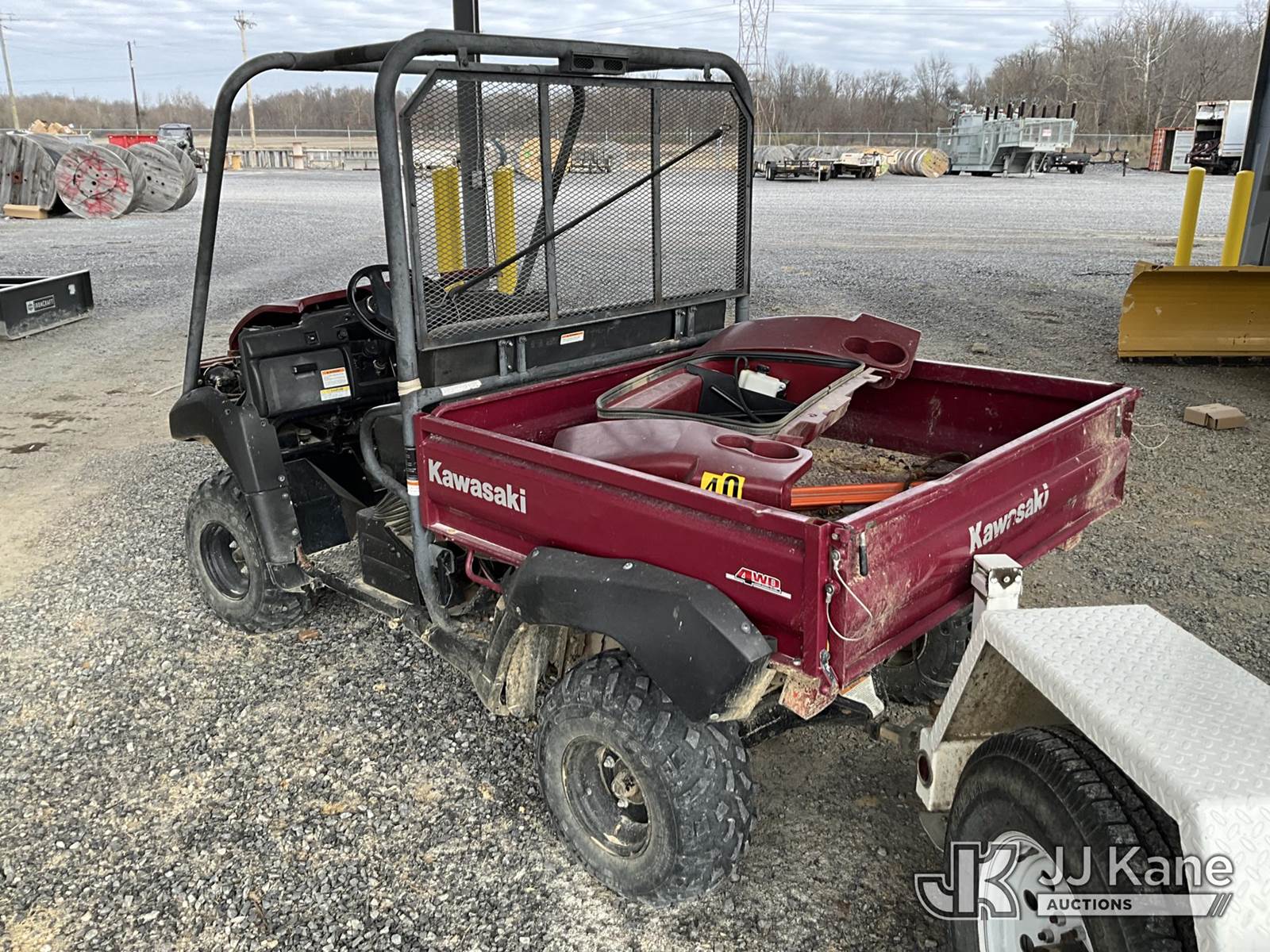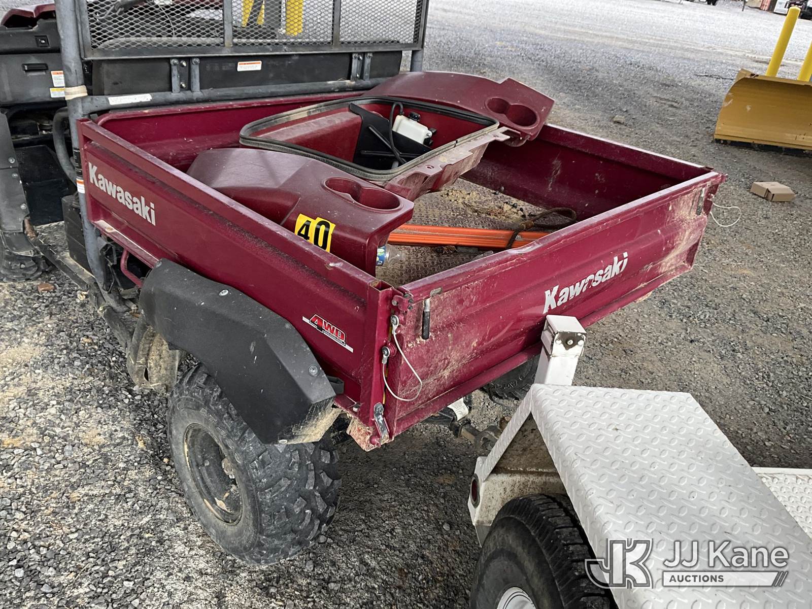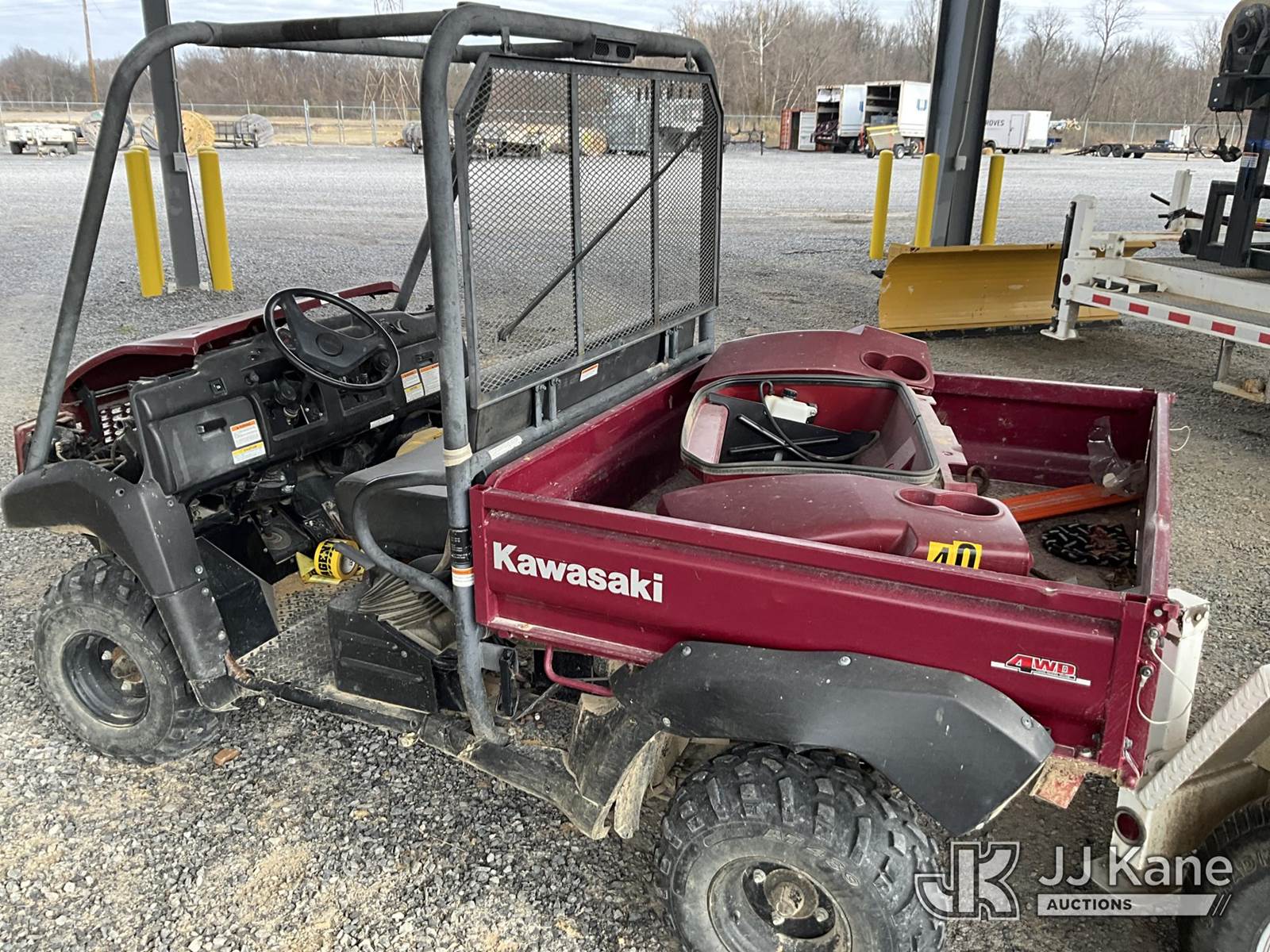 2009 Kawasaki Mule 4010 4x4 Yard Cart, Gas, Auto, with 1-3 yard dump body & front winch, (Not Running, Condition Unknown, NO TITLE, MSO Only) (Reads 495 hours) This is a Titled Item NOTE: This unit is being sold AS IS/WHERE IS via Timed Auction and is located in Paducah, KY. For more information & removal arrangements please contact Spencer Owen @ 502-232-2541. Load Out will be by appointment only M-F; must call 24 HRS. in advance. Buyer/Hauler must present copy of paid invoice upon arrival. Purchaser acknowledges ALL lots must be removed within 5 business days of Auction, or a storage fee may be incurred. This item is used and may contain defects that are not immediately detectable. Text description and photos given are meant to be used as a guide only. The conditions are provided by the consignor; you are responsible for inspecting item before bidding. All information provided is believed to be correct but no warranty as such is either intended or implied. All items are sold AS IS - WHERE IS AND WITH ALL FAULTS AND DEFECTS THEREIN. Auctioneer Michael Whitebread / License # 256617 (Buyer is responsible for removal. Assistance by consignor or JJ Kane Auctions is not assured.)