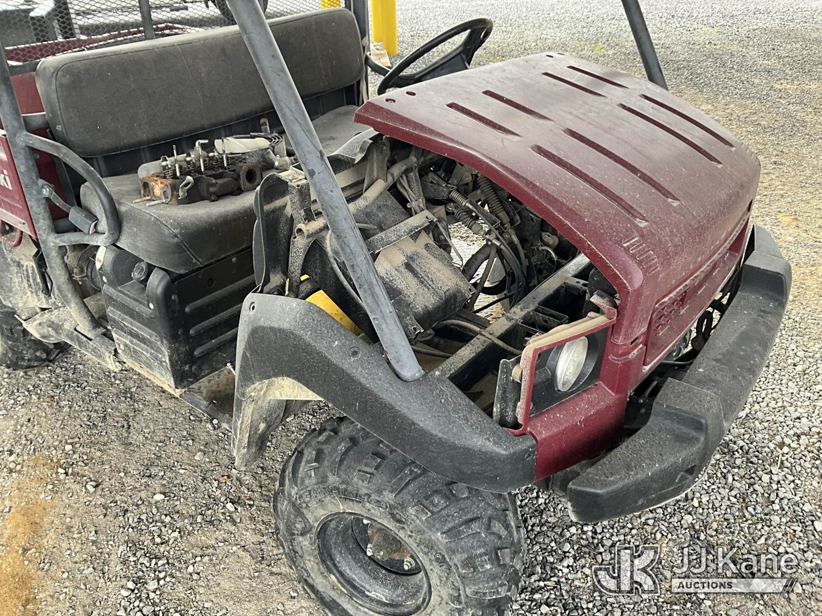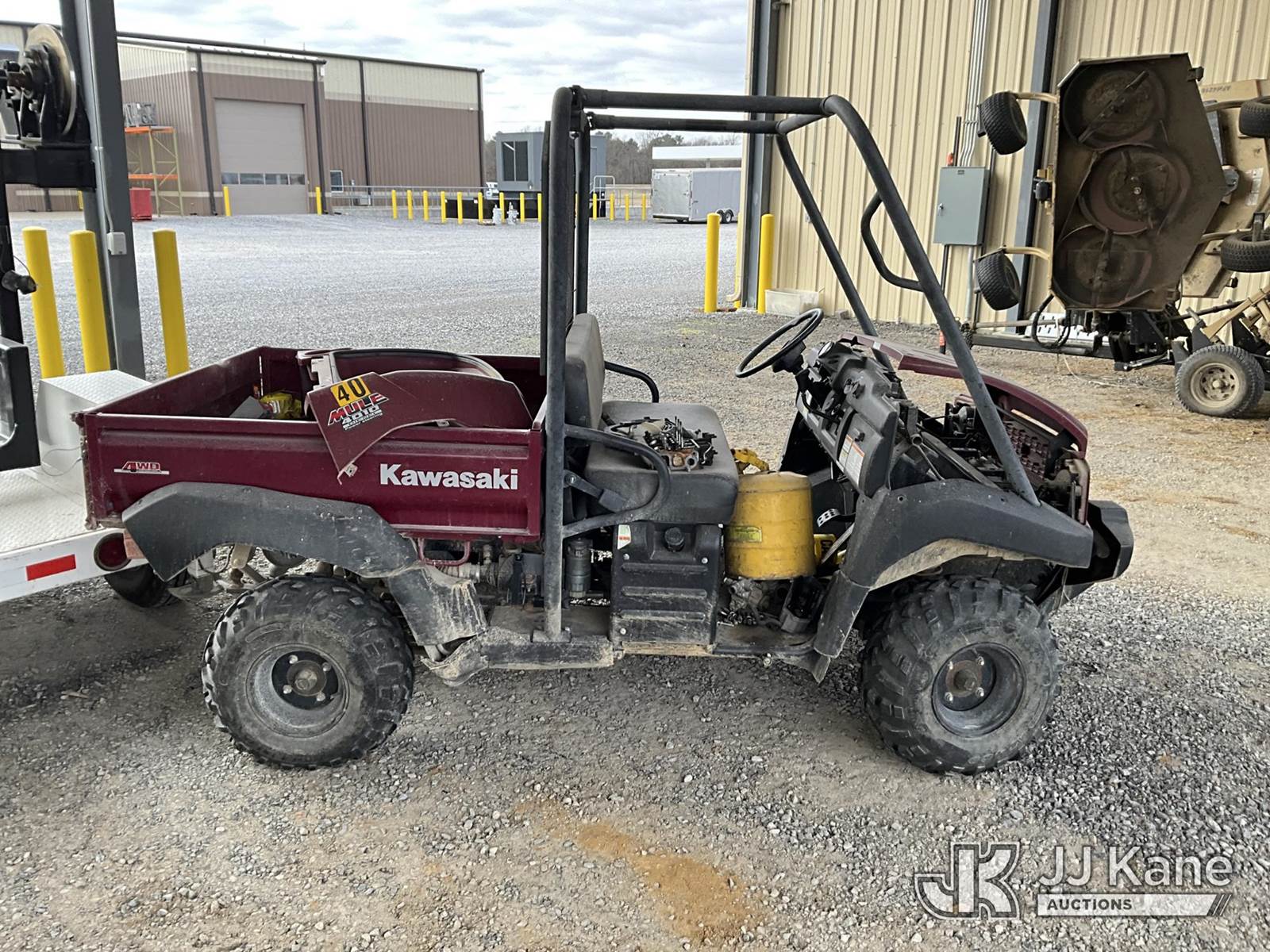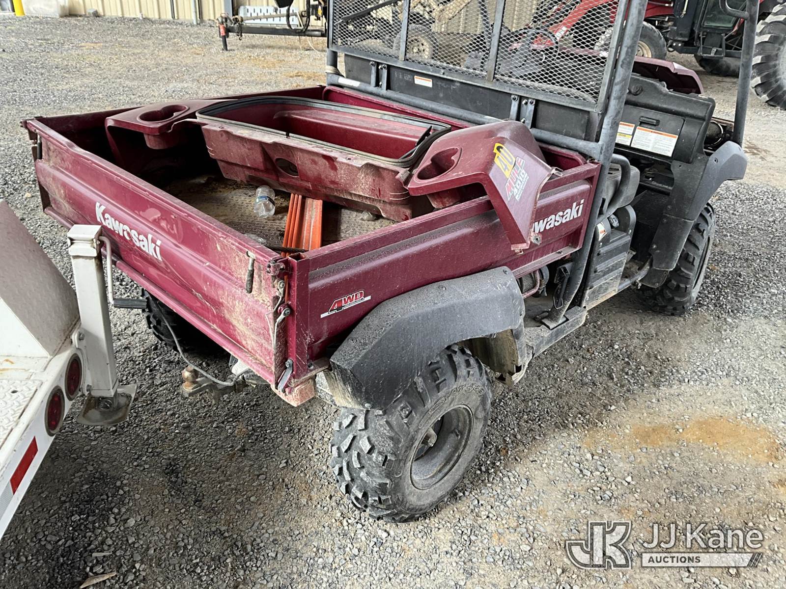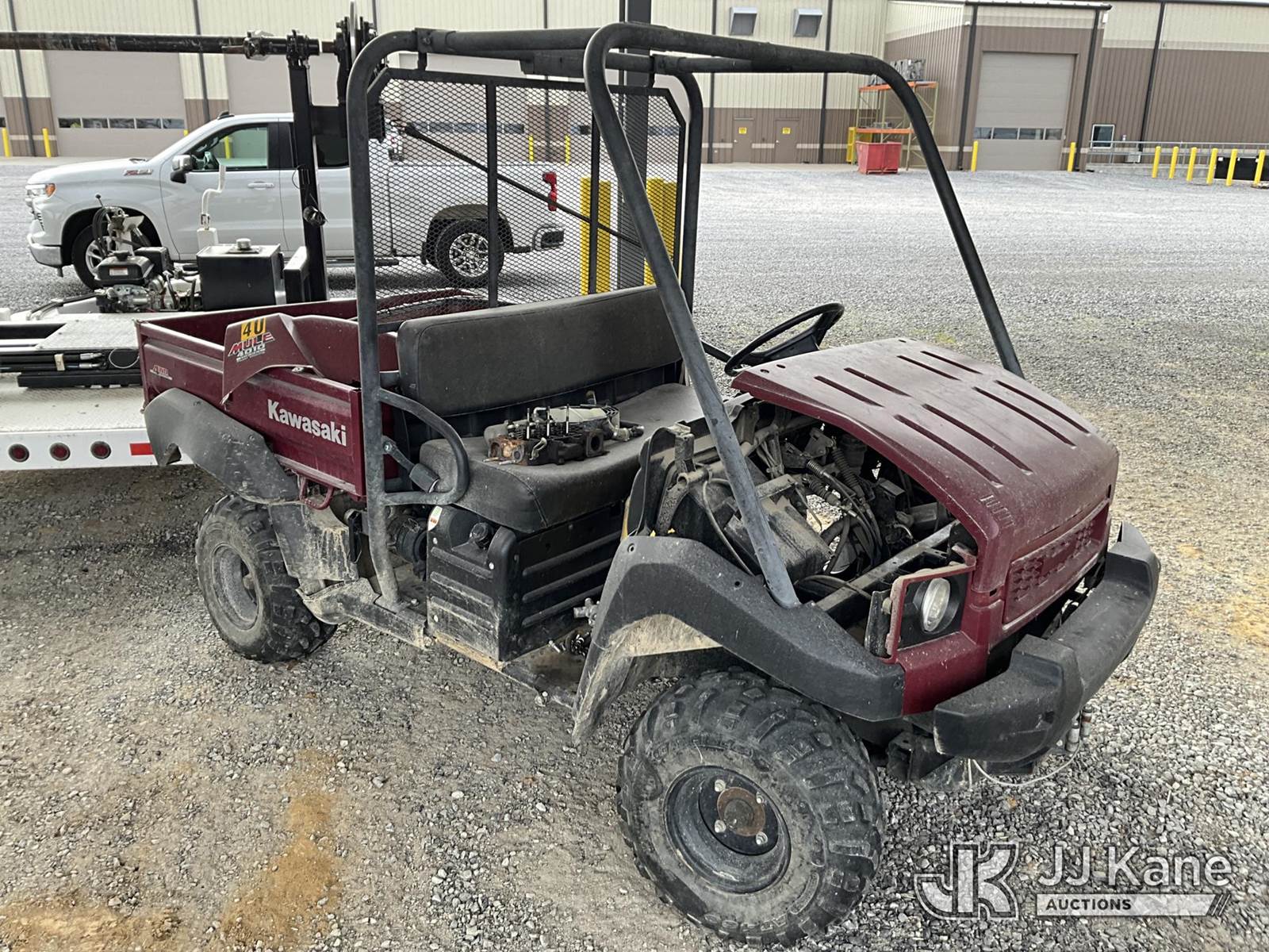 2009 Kawasaki Mule 4010 4x4 Yard Cart, Gas, Auto, with 1-3 yard dump body & front winch, (Not Running, Condition Unknown, NO TITLE, MSO Only) (Reads 495 hours) This is a Titled Item NOTE: This unit is being sold AS IS/WHERE IS via Timed Auction and is located in Paducah, KY. For more information & removal arrangements please contact Spencer Owen @ 502-232-2541. Load Out will be by appointment only M-F; must call 24 HRS. in advance. Buyer/Hauler must present copy of paid invoice upon arrival. Purchaser acknowledges ALL lots must be removed within 5 business days of Auction, or a storage fee may be incurred. This item is used and may contain defects that are not immediately detectable. Text description and photos given are meant to be used as a guide only. The conditions are provided by the consignor; you are responsible for inspecting item before bidding. All information provided is believed to be correct but no warranty as such is either intended or implied. All items are sold AS IS - WHERE IS AND WITH ALL FAULTS AND DEFECTS THEREIN. Auctioneer Michael Whitebread / License # 256617 (Buyer is responsible for removal. Assistance by consignor or JJ Kane Auctions is not assured.)