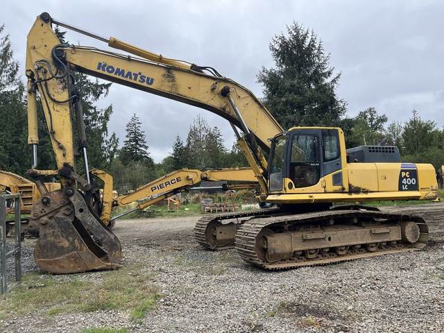 Komatsu PC400LC-8 Excavator Equipped with Quick Coupler, Thumb, and Dig Bucket. Good undercarriage. Komatsu PC400LC-8 Excavator Equipped with Quick Coupler, Thumb, and Dig Bucket. Good undercarriage.