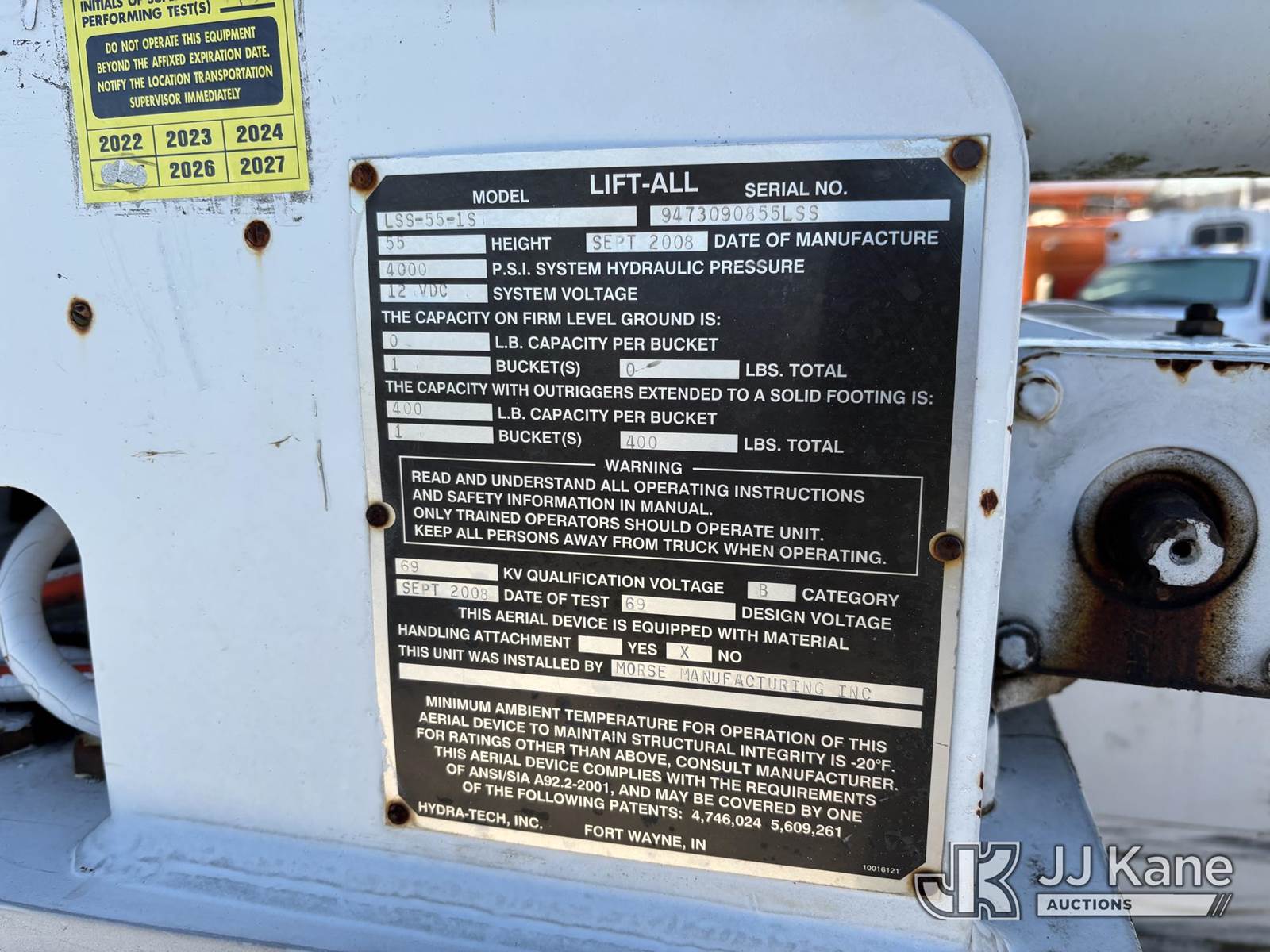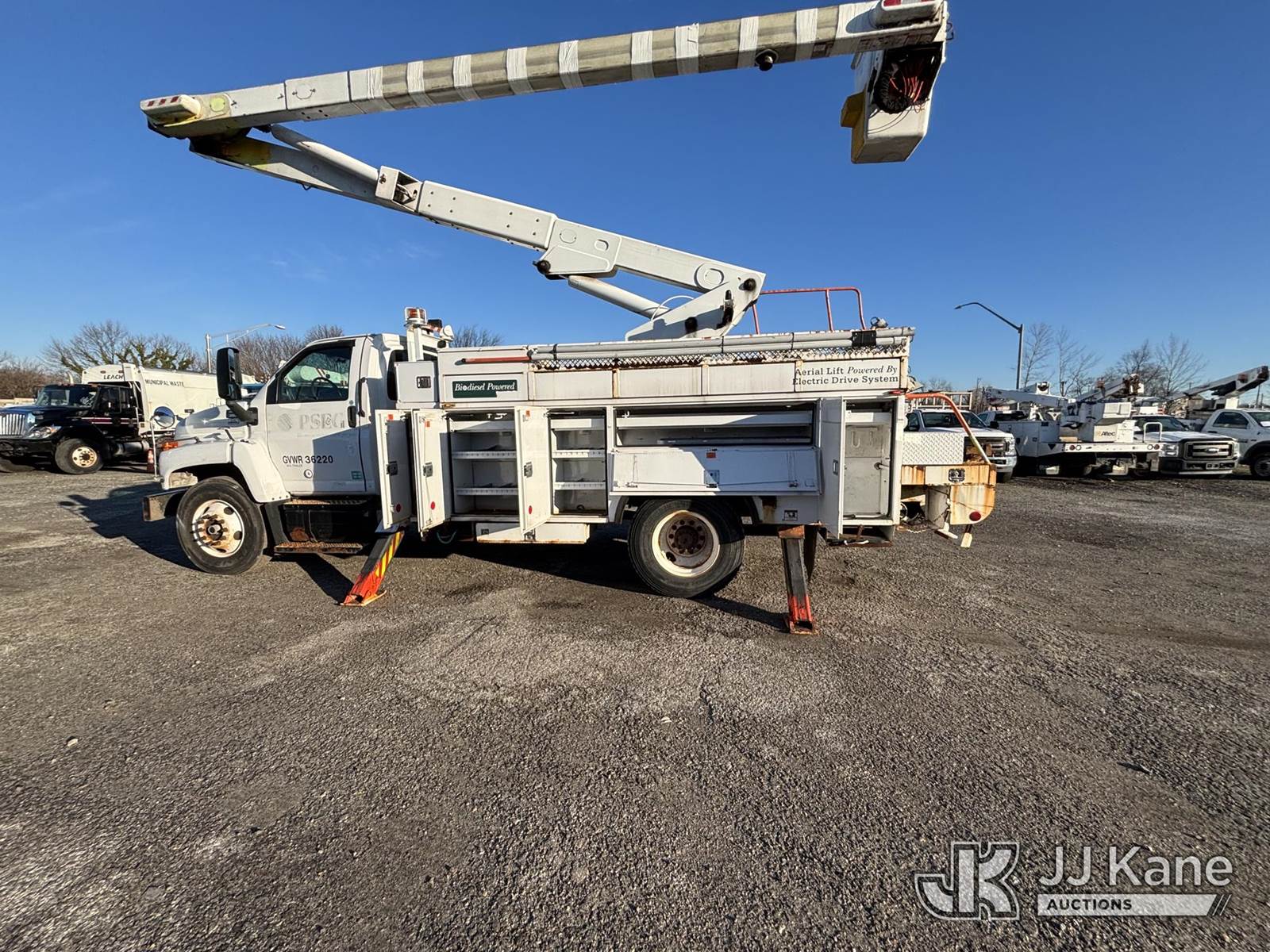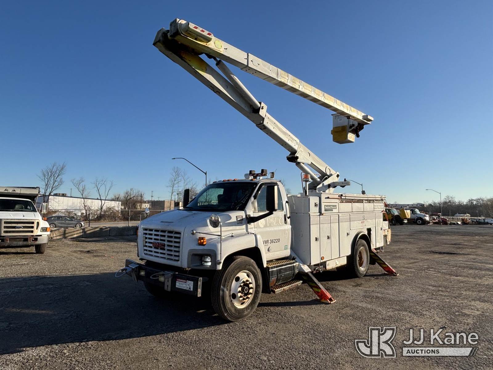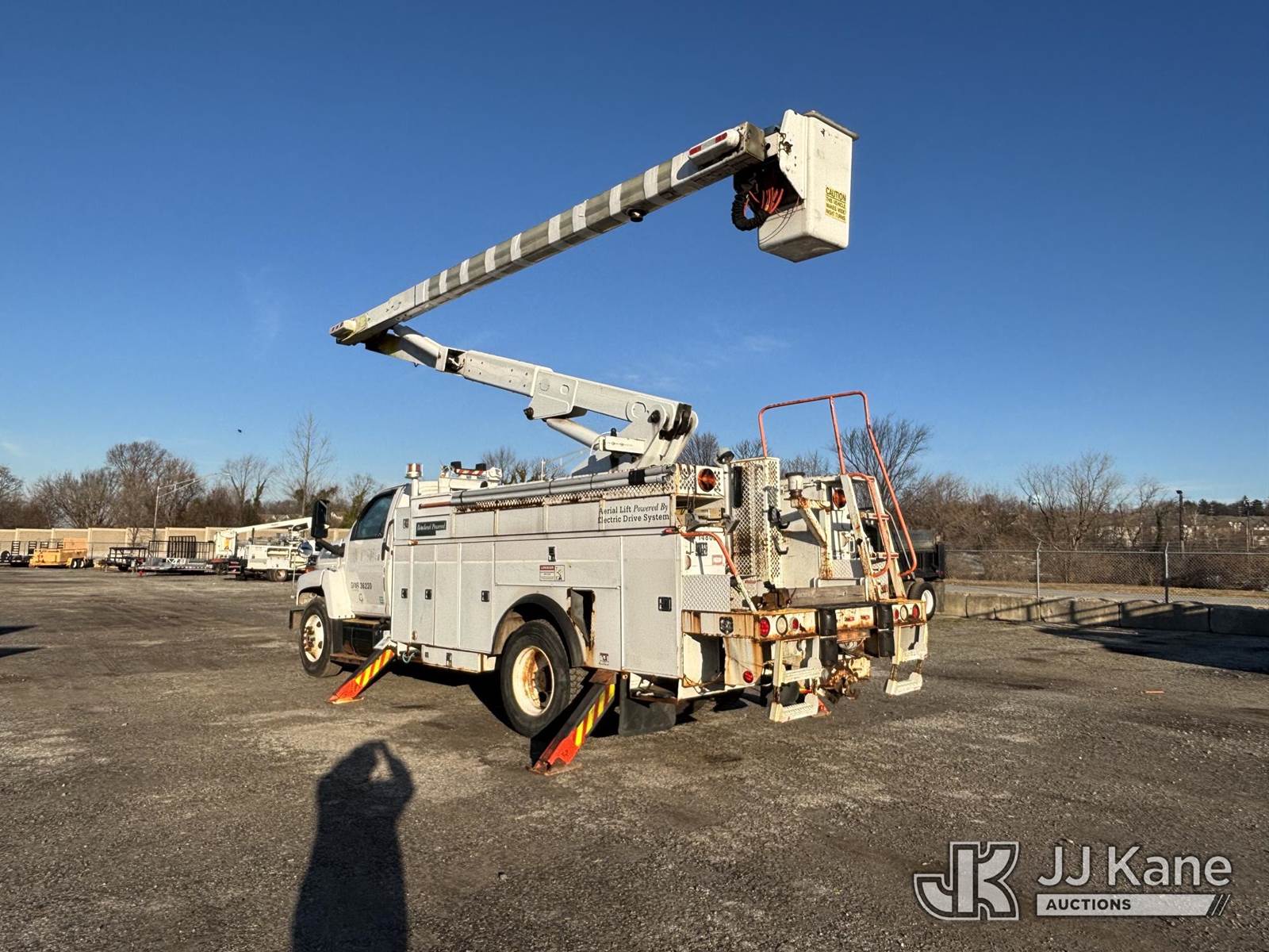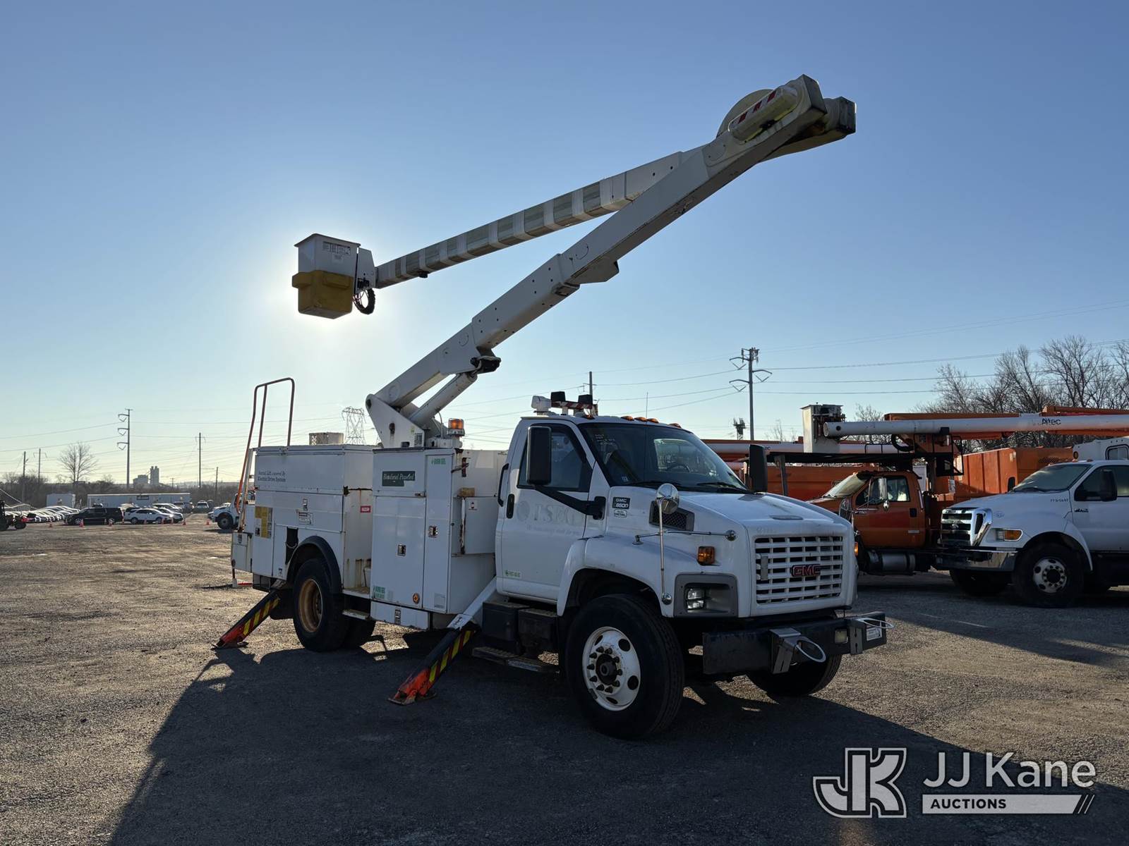 Lift-All LSS55-1S, 60 ft, Over-Center Bucket Truck s/n 9473090855LSS, with single-man bucket & 4 hyd outriggers, center mounted on 2009 GMC C8500 Utility Truck, Isuzu, diesel Auto, 4X2, A/C, (80,124 miles) (Runs Moves & Upper Operates, Body & Rust Damage, Exhaust Filter Light On) This is a Titled Item NOTE: This unit is being sold AS IS/WHERE IS via Timed Auction and is located in Plymouth Meeting, PA. Inspection & preview days for this unit are the 2 business days prior to the first day of items closing for this auction, item is located at 1402 Conshohocken Rd Plymouth Meeting, PA 19462 and hours of operations are 8a-4p. For pre-sale questions, please contact Bruce Thomas at bruce.thomas.jr@jjkane.com. REMOVAL: 10 days after the sale, Wednesday thru Friday 10 days (Excluding Saturday & Sunday. Excluding Holidays, Yard is closed Weekends) All items must be removed by the 10th day or a storage fee of $25 per item /per day will be applied. (Missing manuals, See Auction Company for Manufacturers Information to obtain manuals) (Buyer is responsible for removal. Assistance by consignor or JJ Kane Auctions is not assured.)