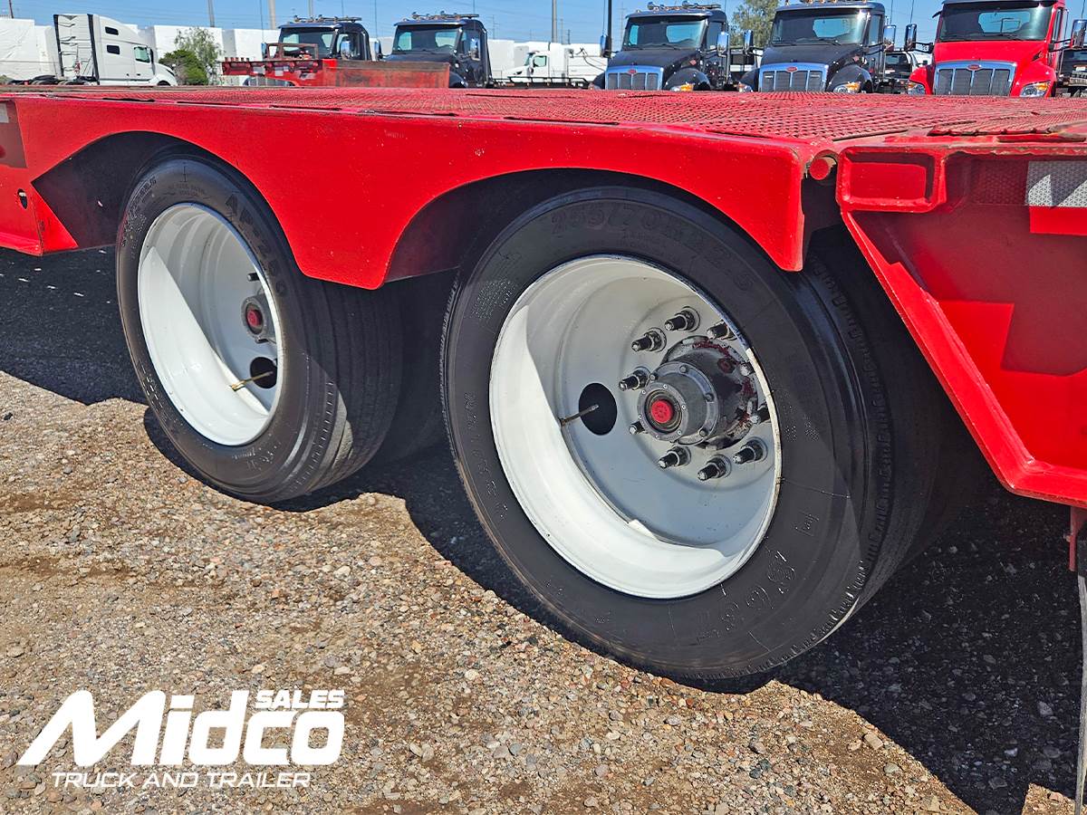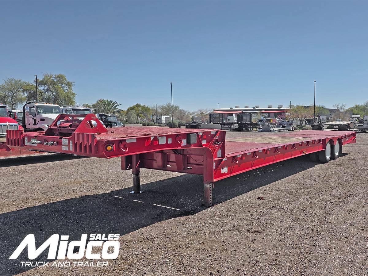 is a heavy-duty equipment hauler built for transporting construction machinery, paving equipment, and other oversized loads. Designed with a