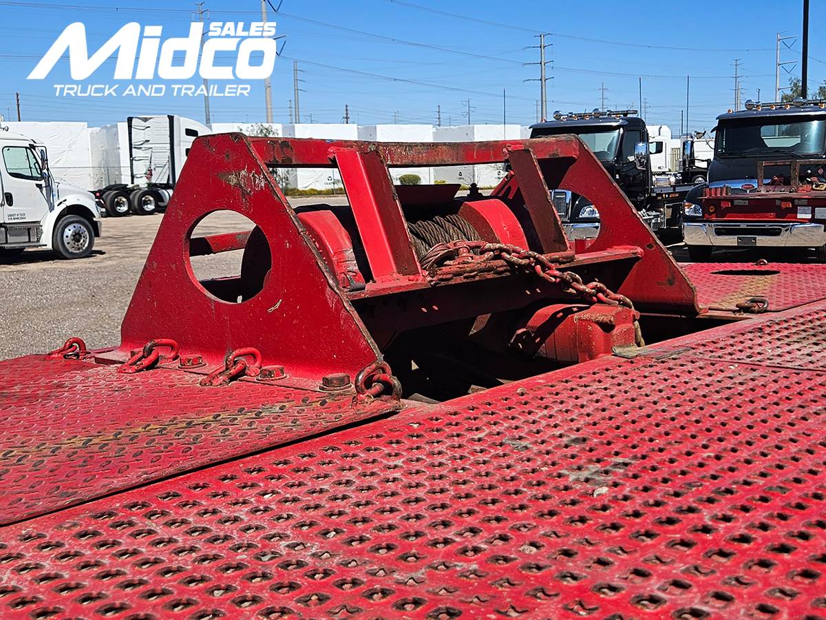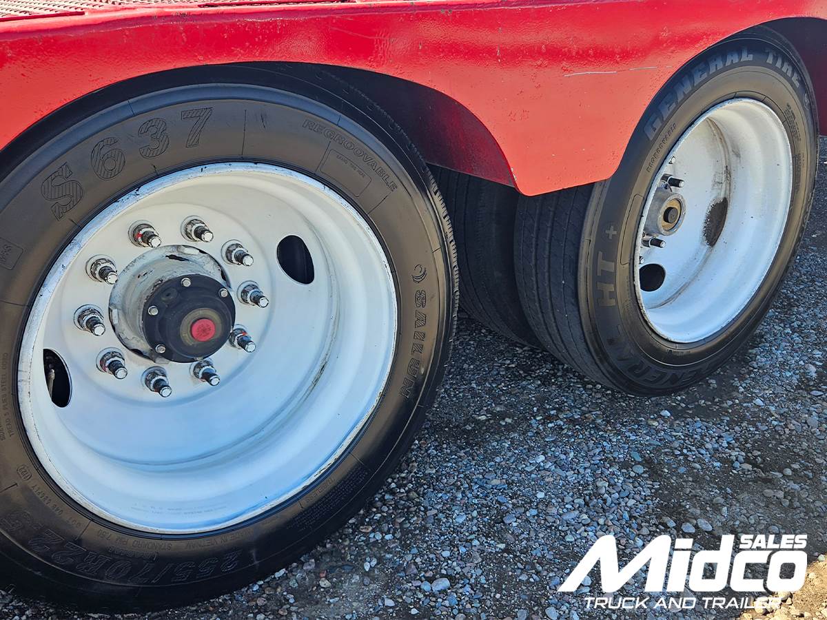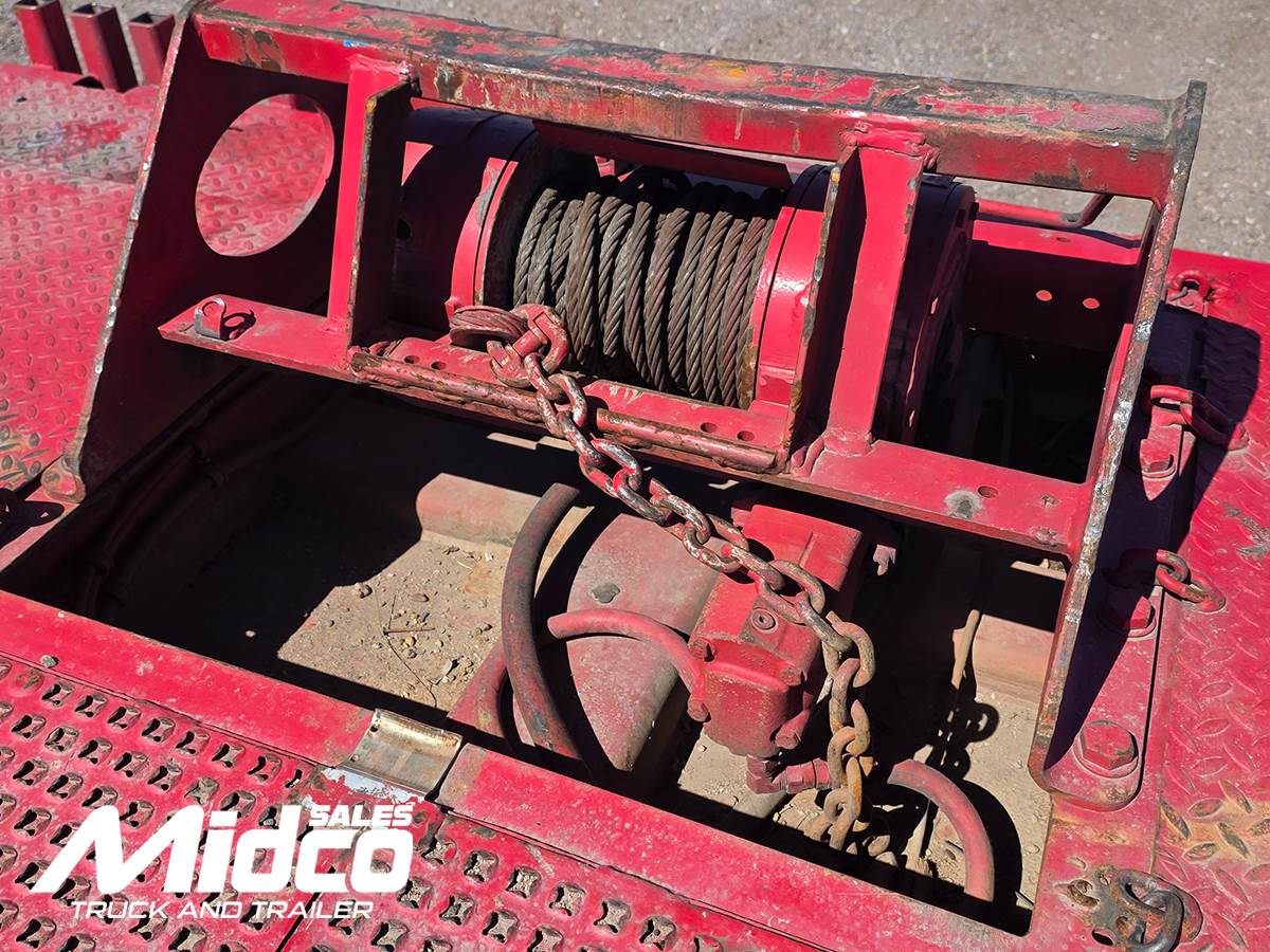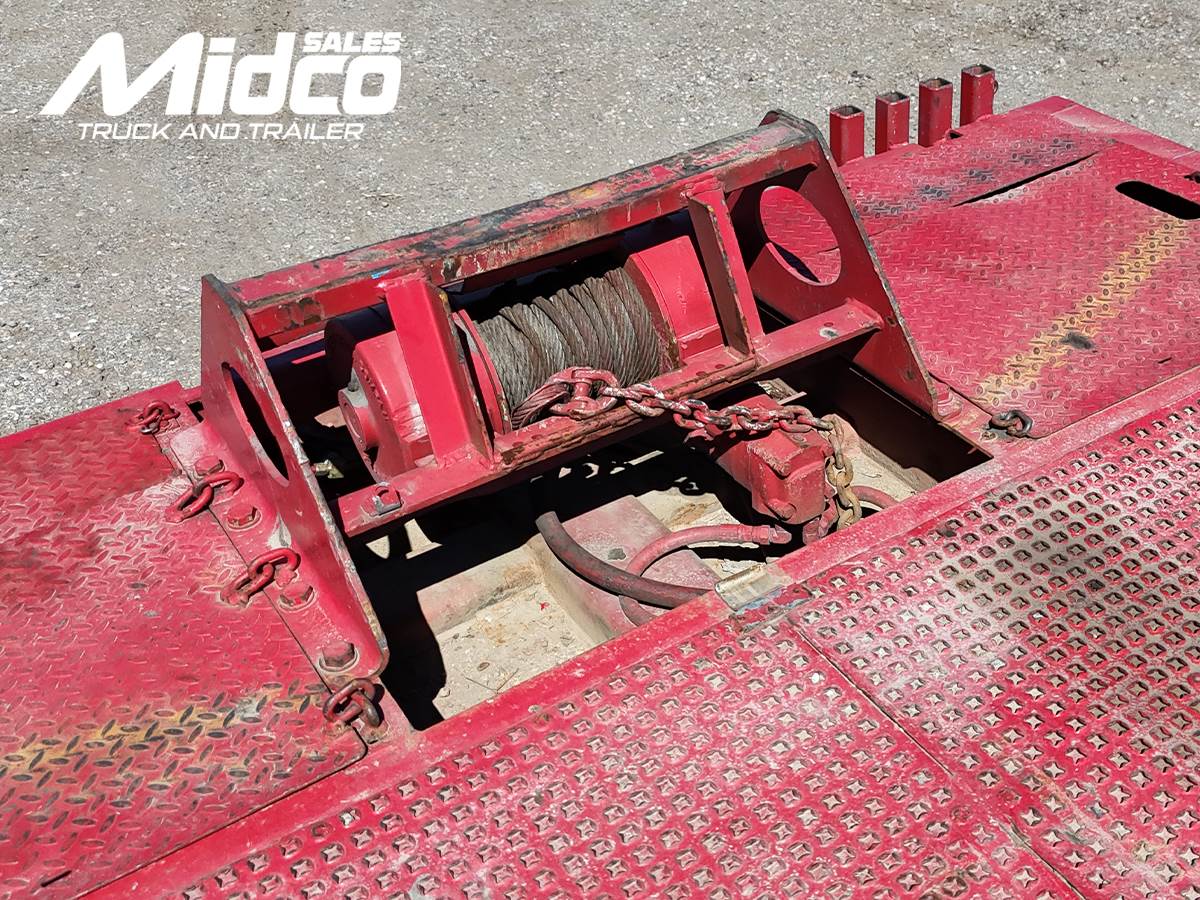 with traction plate ramp, center keyhole slots for secure tie-downs, and a hydraulic winch to assist with loading disabled or non-running equipment. Additional highlights include air ride suspension for smoother transport, Right Weigh onboard scale system, upper deck toolboxes, and 255/70R22.5 tires on steel wheels. Built with Load King’s reputation for heavy-duty trailer construction, the HFT70RS is an excellent choice for contractors, equipment haulers, and fleet operators needing reliable hauling capability.