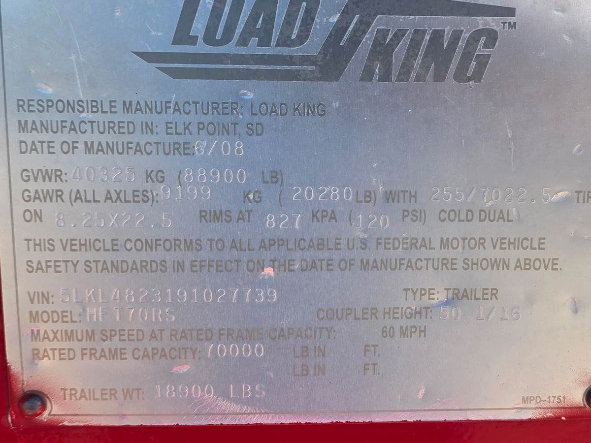 used Load King HFT70RS hydraulic tail trailer