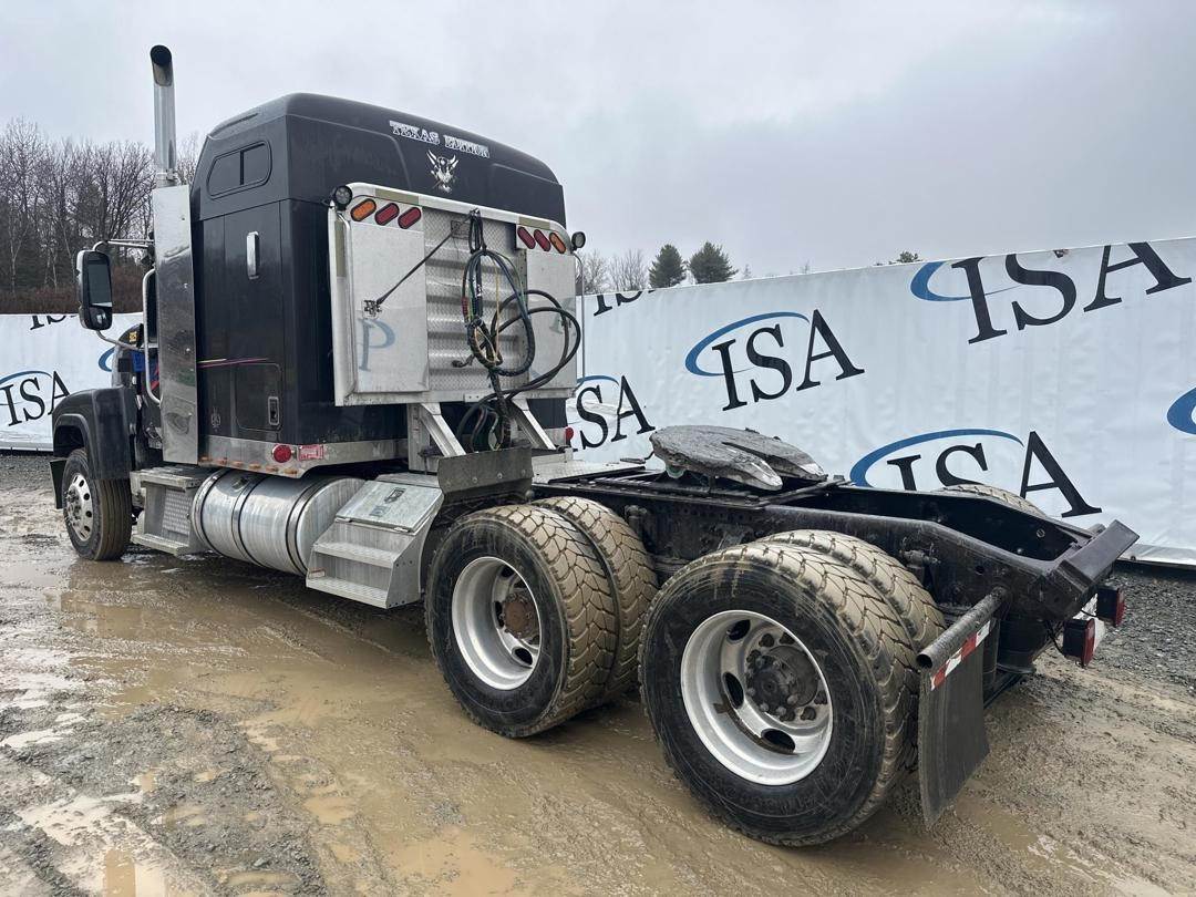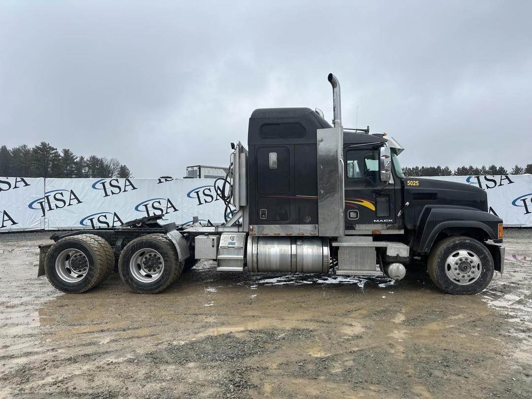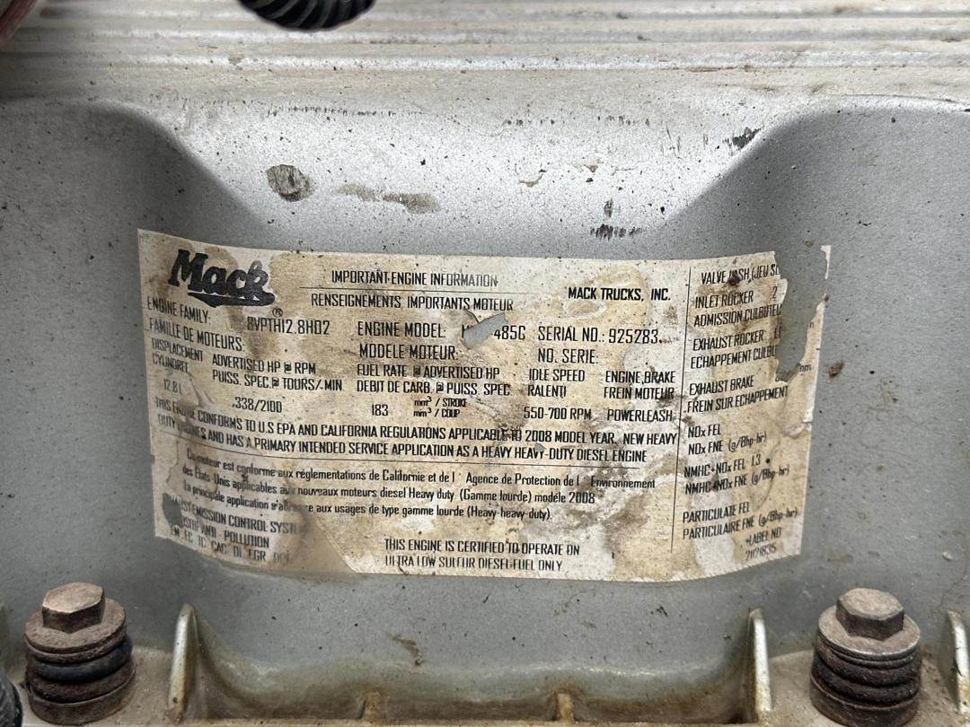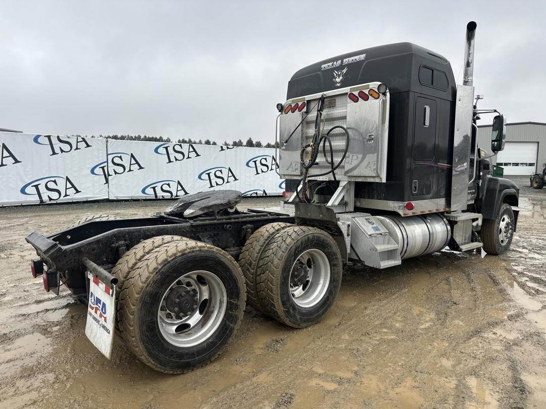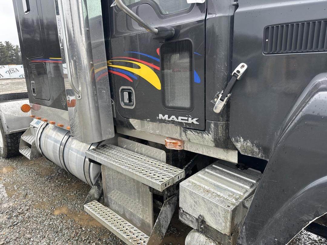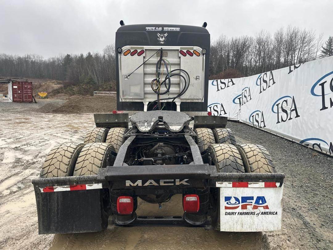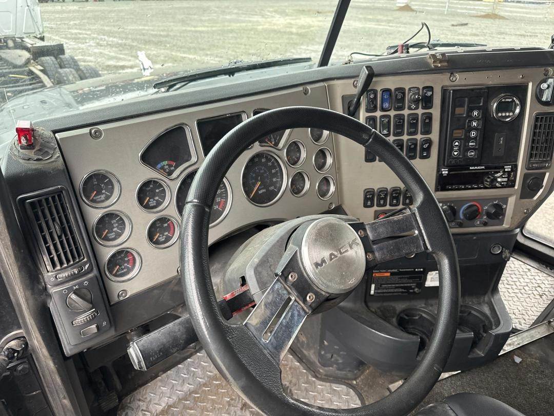 Mack 12.8L MP8 Turbo Diesel Engine, Eaton Automated Transmission, GVWR: 52000LB, 12000LB Front Axle, Air Ride, Inter Axle and Differential Lock, Engine Brake, Air Release Fifth Wheel Slide, PTO, Left and Right Side Saddle Box, Aluminum Headache Rack W/ (2) Storage Compartments, Air Ride Seats, Power Windows, Power Mirrors, Power Locks, Air Weigh Scale, Single Bunk, Rear Climate Controls, Storage Cabinet, Refrigerator, Privacy Curtain, 295/75R22.5 Front Tires, 305/70R22.5 Rear Tires