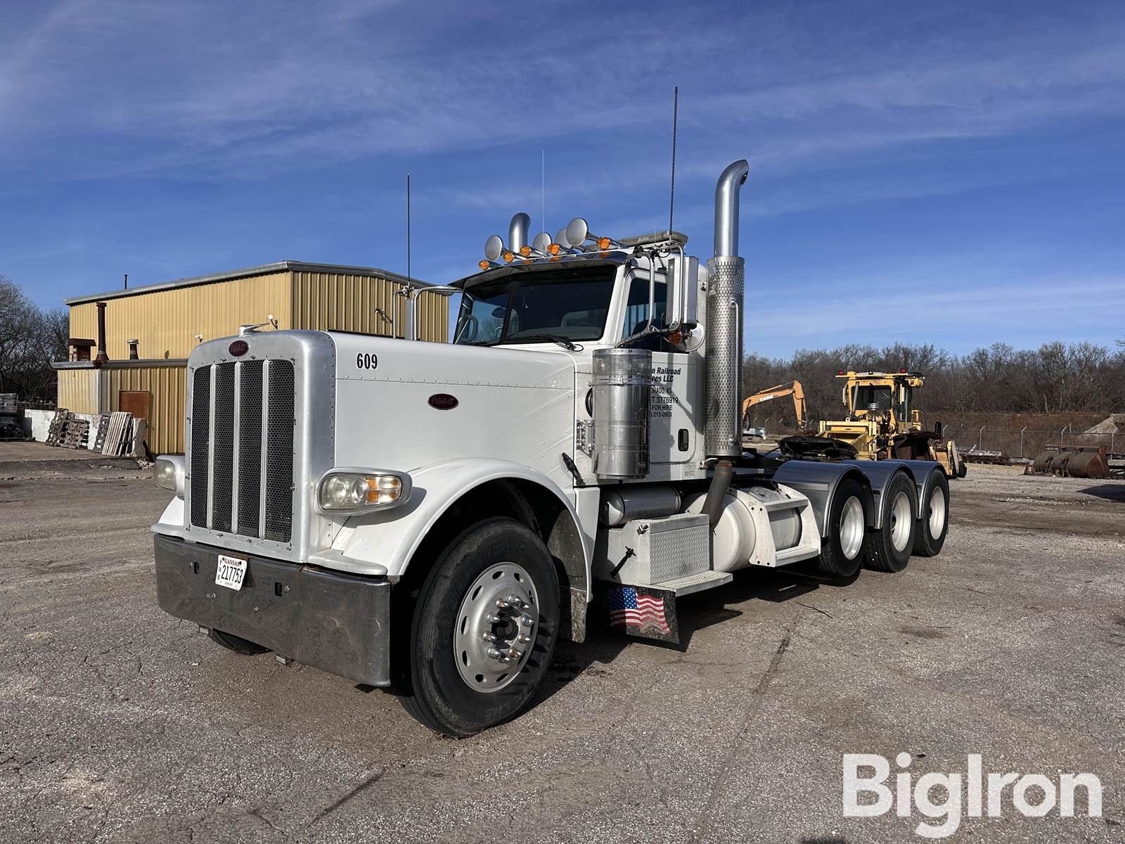 2009 Peterbilt 389 Tri/A Truck Tractor, 21,541 Hrs Showing, 689,397 miles Showing, Title Will Be Marked Miles Exempt, Cummins ISX-550 14.9L 6-Cyl Turbocharged Diesel Engine, Eaton Fuller 18-Speed Manual Transmission, Air Brakes, Air Suspension, Air Sliding 5th Wheel, Dual Fuel Tanks, Aluminum Chain/Boomer Rack, Toolbox, Remote Lube Center, Heat/AC, Stereo, Air Ride Seat, Power Windows & Mirrors, Cruise Control, Engine Brake, Heated Mirrors, 11R24.5 Tires, 255/70R22.5 Lift Axle Tires, VIN: 1XPXD4EX59D775043