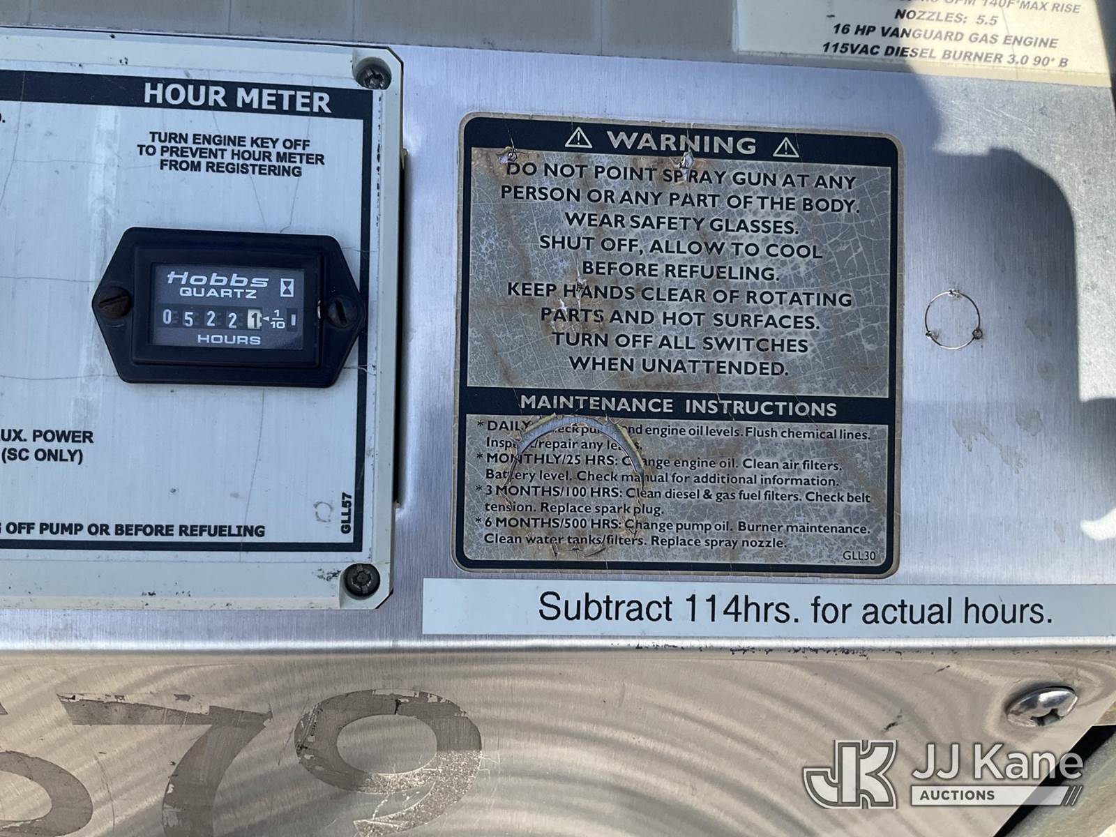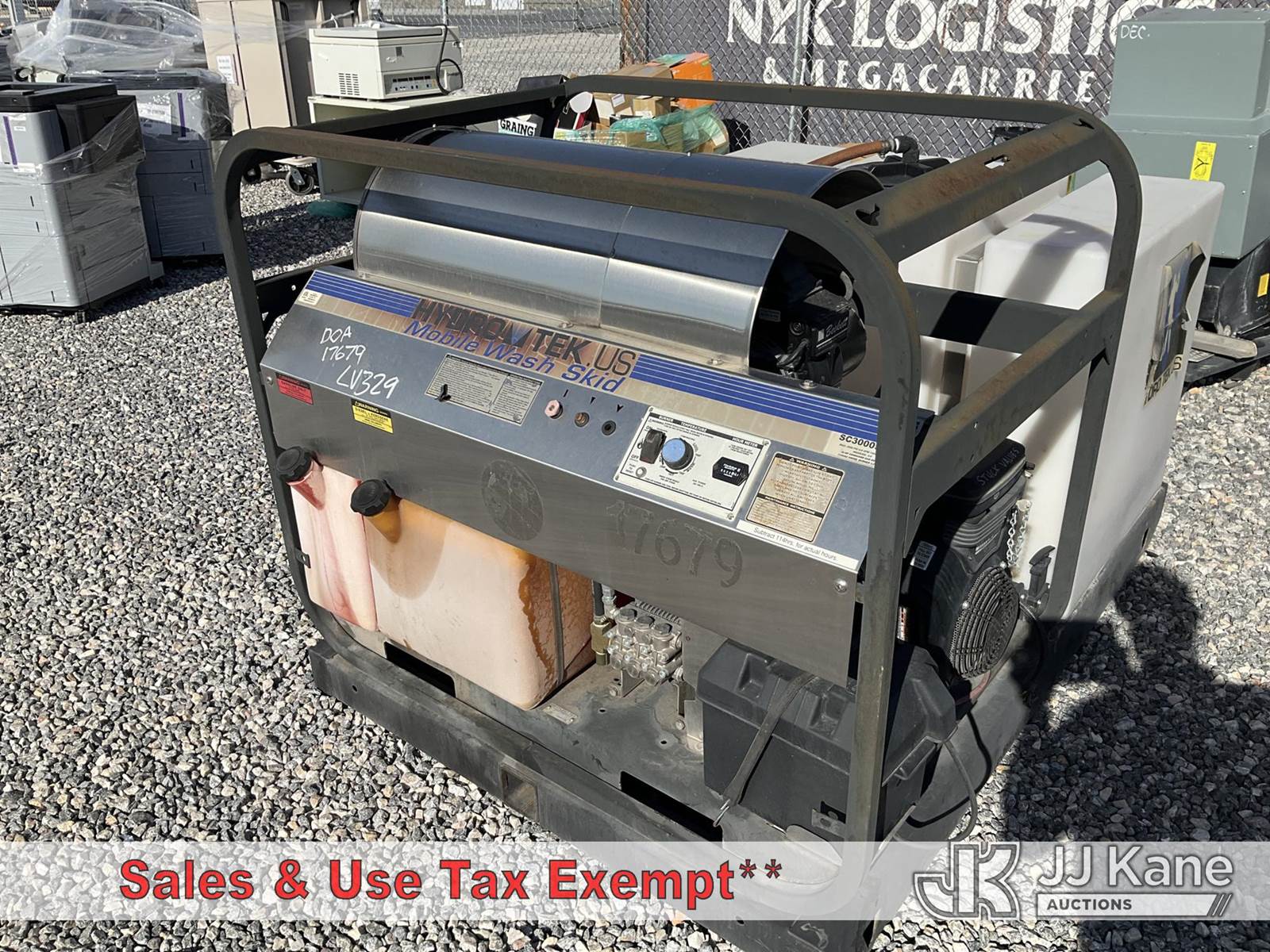 2009 s/n 2009011438, Hydro Tex Pressure Washer - Skid Mount - Boiler Failed/ Bent valves (Boiler Failed, Bent Valves, Working Condition Unknown) NOTE: This unit is being sold AS IS/WHERE IS via Timed Auction and is located in Las Vegas, NV. Inspection & preview days for this unit are the 2 business days prior to the first day of items closing for this auction, item is located at 14655 Grand Valley Pkwy Las Vegas, NV 89165 and hours of operations are 8a-4p. Titles executed exactly as bidder registered. Ensure your name and/or business name and address in JJ Kane and/or ProxiBid is correct before bidding. For pre-sale questions, please contact Office Staff @ (801) 519-0123 and provide sale date and lot number. Las Vegas Dealer License Number DLR000053086 / OHV000053094. (Buyer is responsible for removal. Assistance by consignor or JJ Kane Auctions is not assured.)
