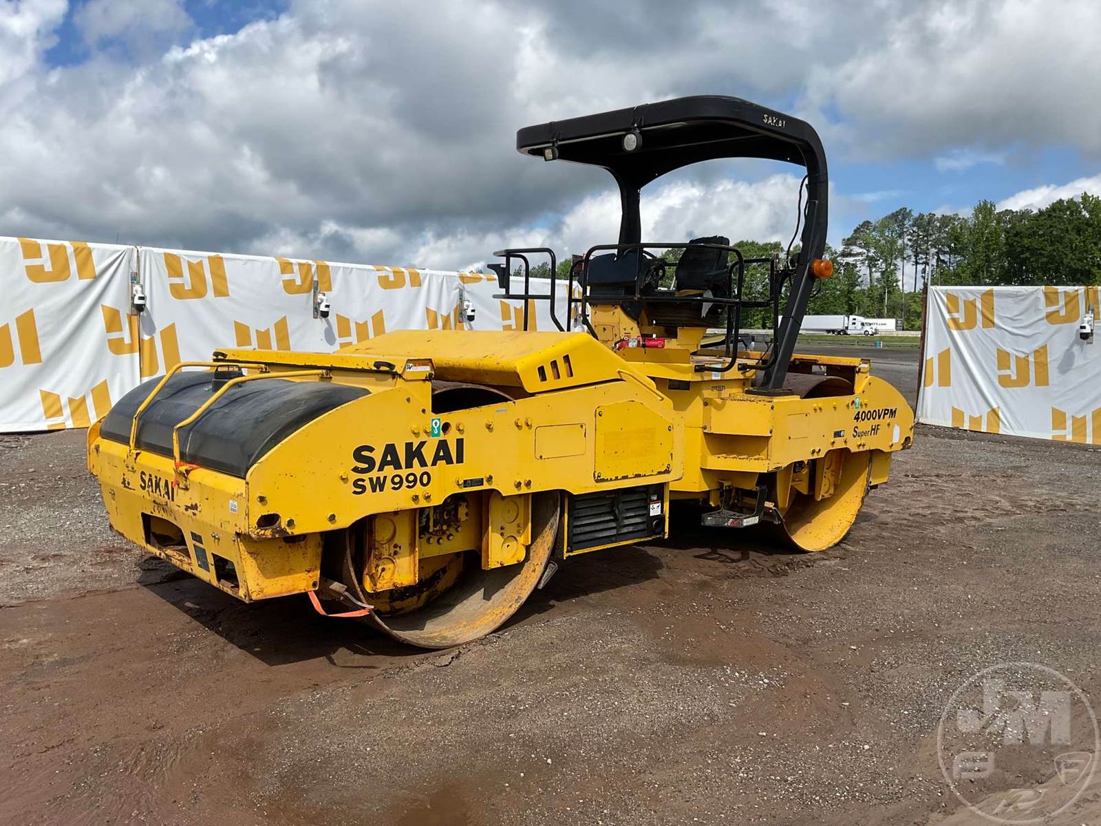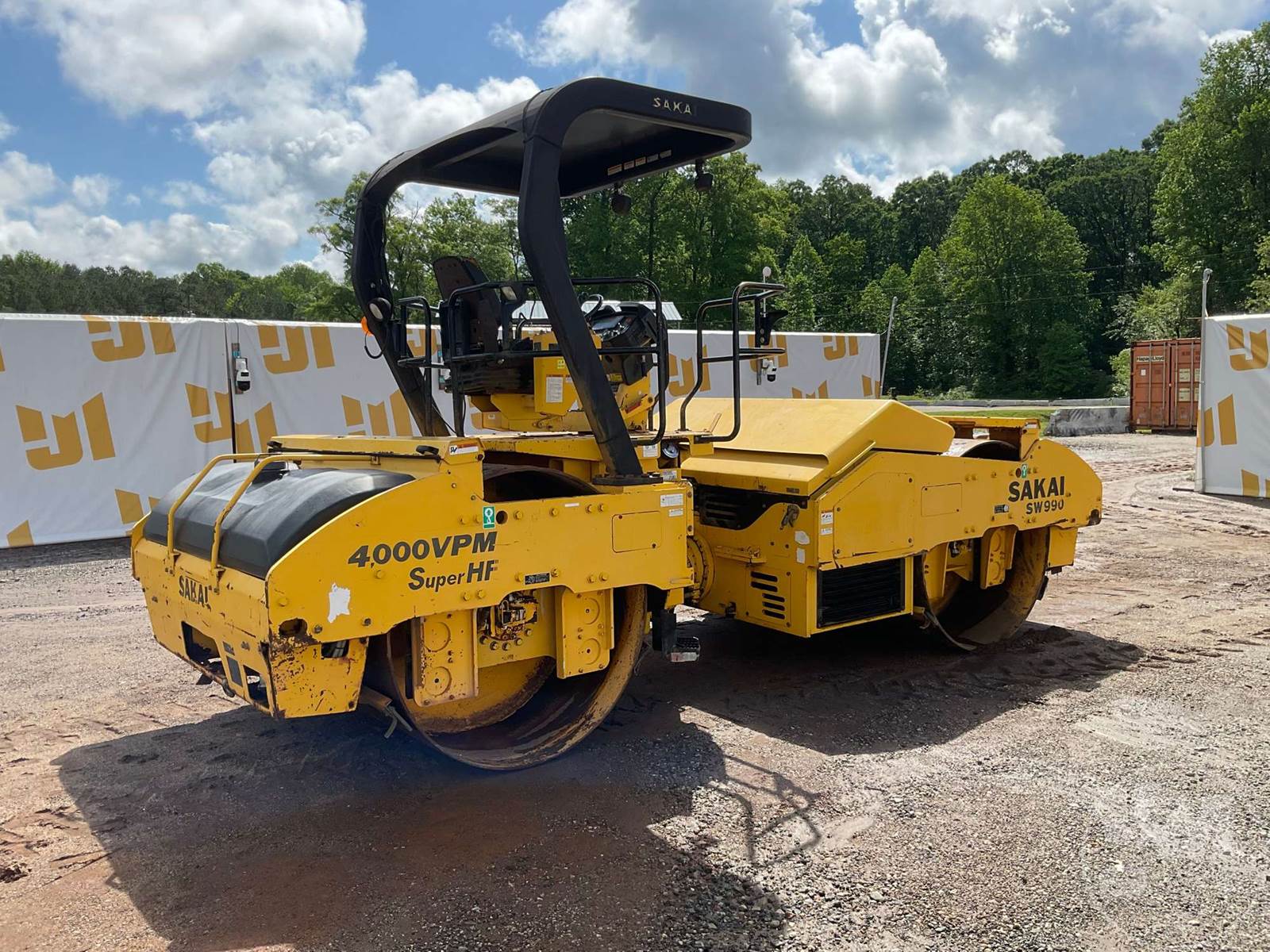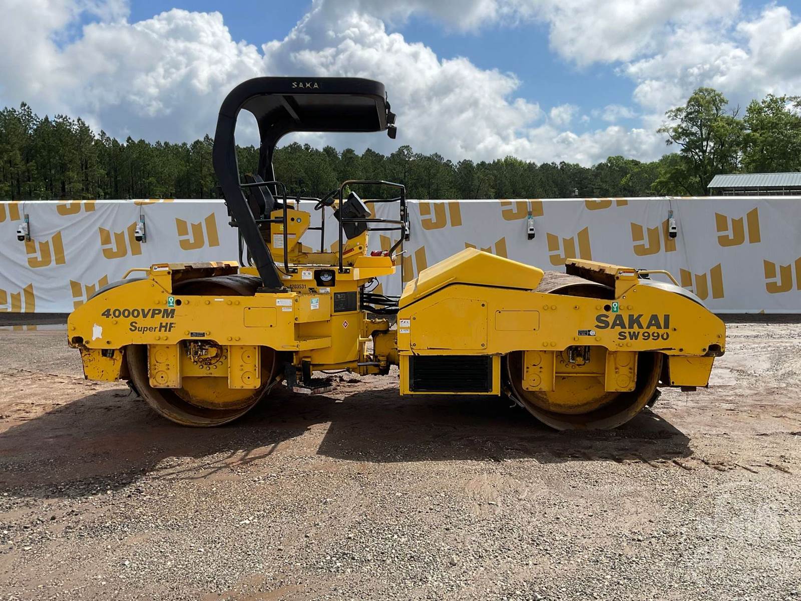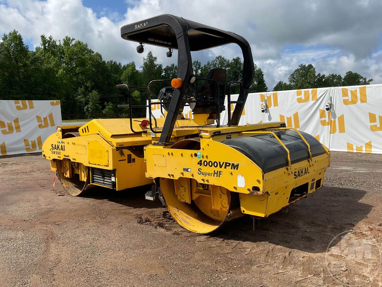 SAKAI TANDEM VIBRATORY ROLLER, DEUTZ, DIESEL, 6 CYL ENGINE, CANOPY, DRUM SIZE 83", WATER SPRAY SYSTEM, HOUR METER READS: 11161