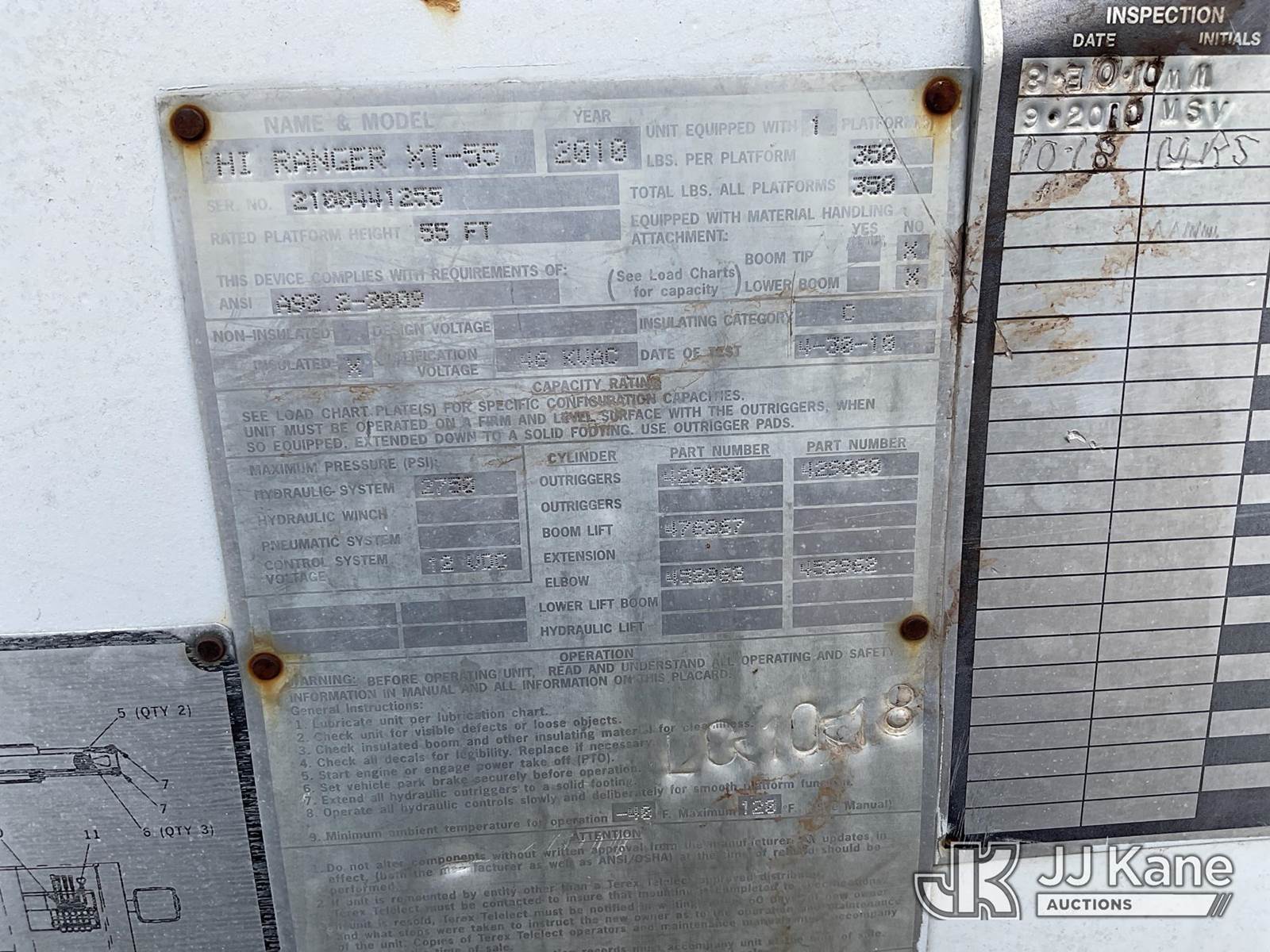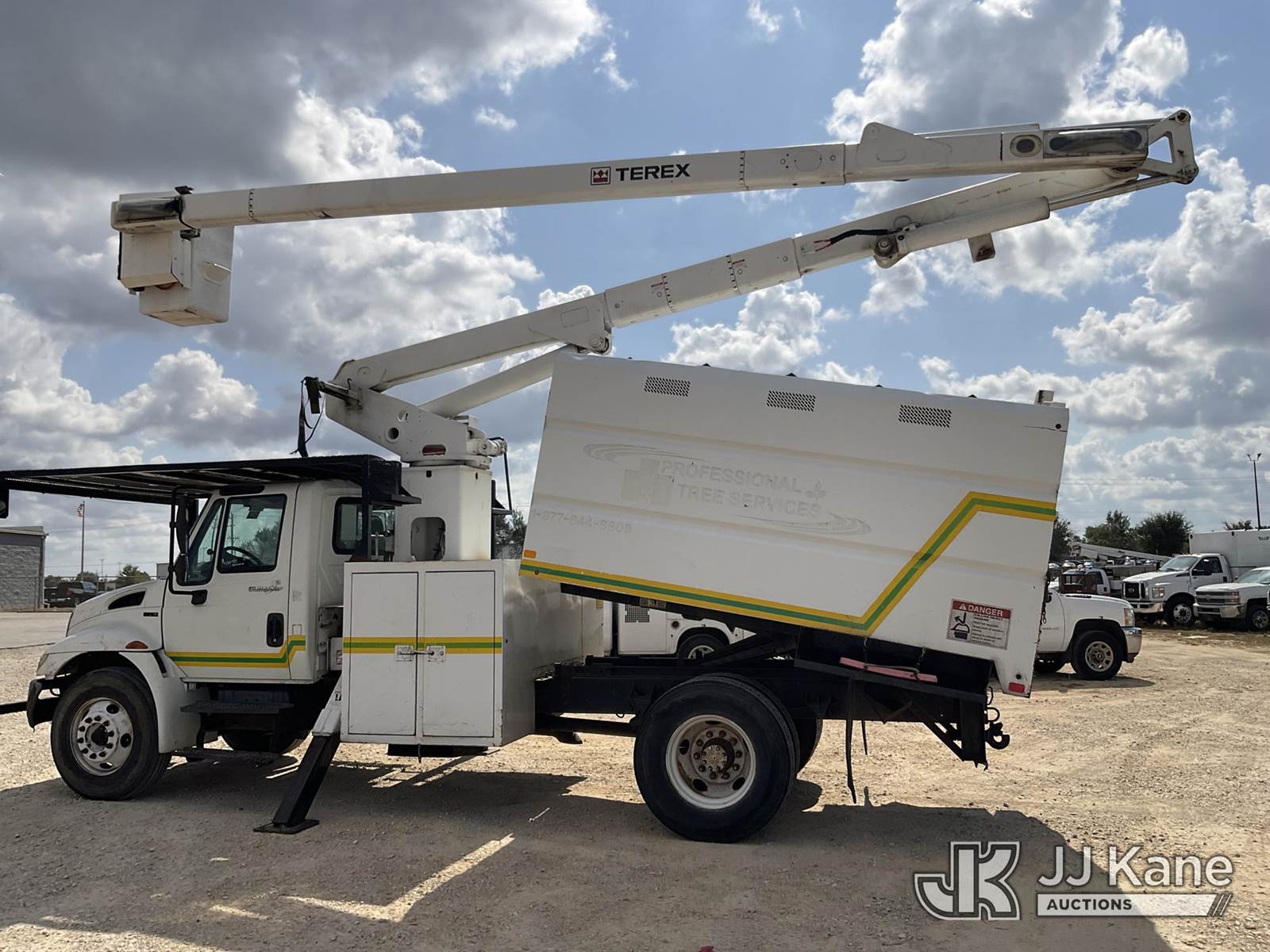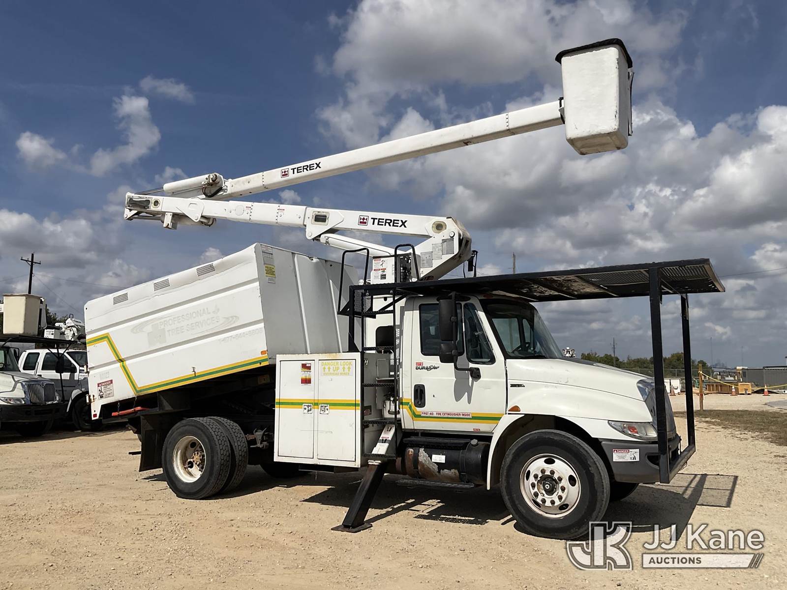 Terex XT55, 60 ft, Over-Center Bucket Truck s/n 2100441255, with single-man bucket, two hyd. outriggers, mounted behind cab on 2009 International 4300 Chipper Dump Truck, 7.6L L6 DIESEL manual, 4X2, A/C, (70,598 miles) (Runs, Moves, & Upper Operates) This is a Titled Item NOTE: This unit is being sold AS IS/WHERE IS via Timed Auction and is located in Houston, TX. For more information & removal arrangements please contact office staff @ (281) 841-0069. (Missing manuals, See Auction Company for Manufacturers Information to obtain manuals) (Buyer is responsible for removal. Assistance by consignor or JJ Kane Auctioneers is not assured.)