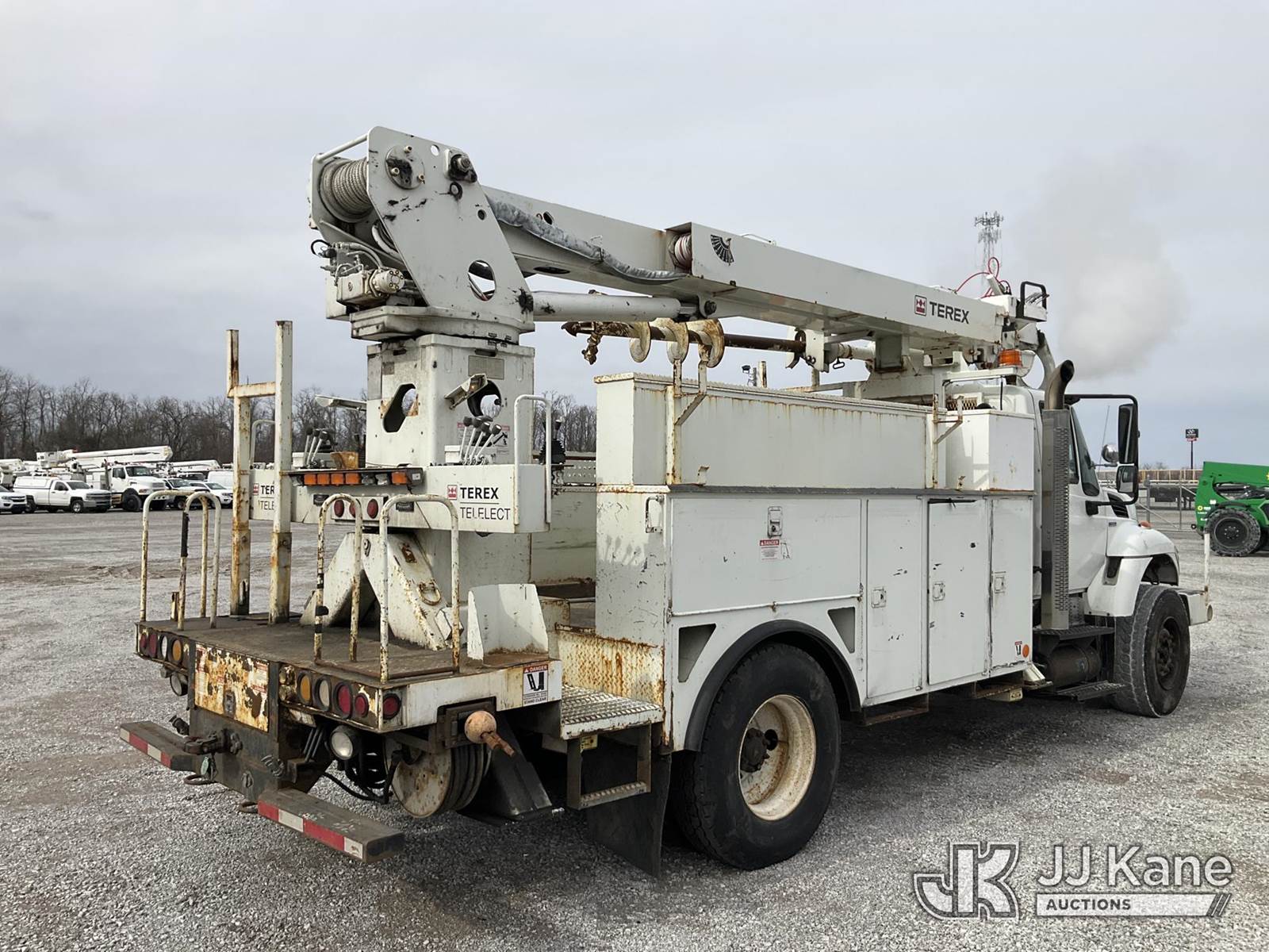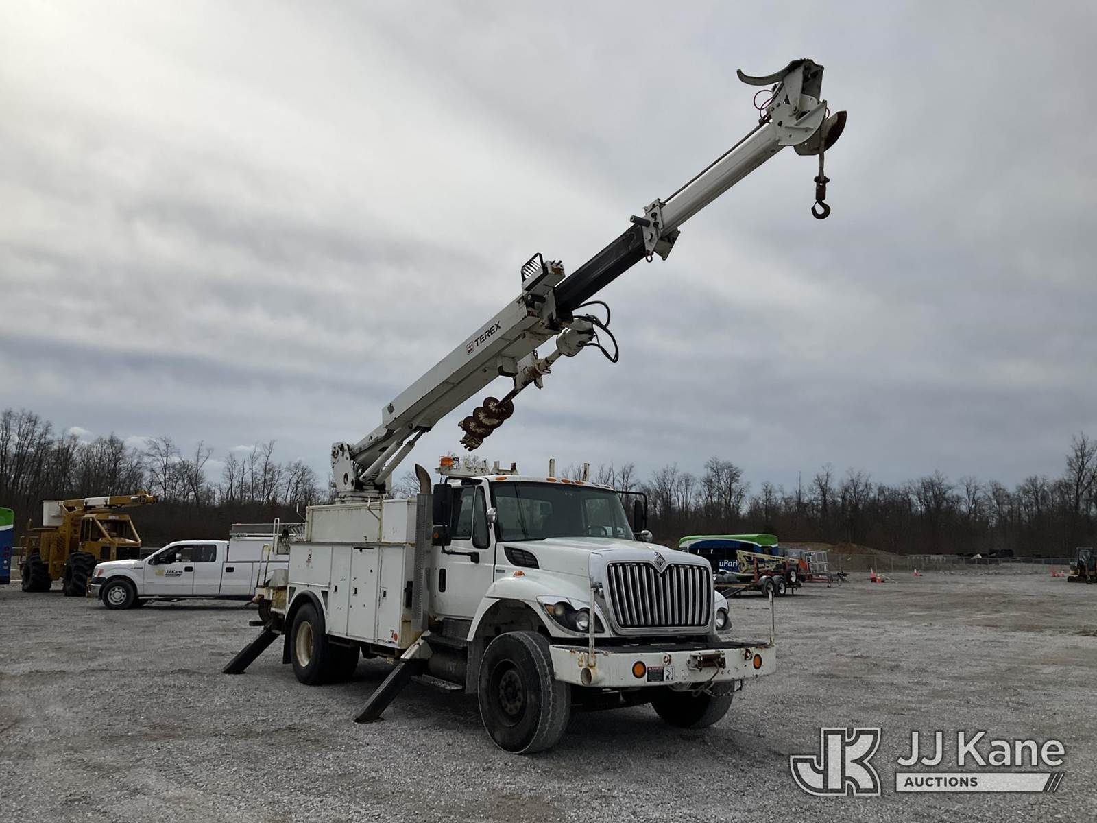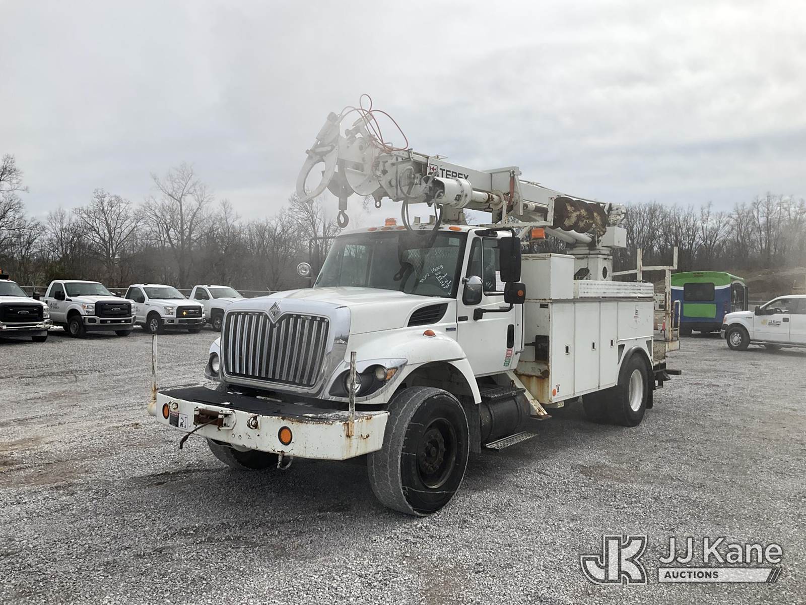 Terex/Telelect Commander 4047, 23,040 Lb Digger Derrick s/n 2080938038, with 47 ft sheave height, 2-spd digger, pole grabs, heel winch, upper controls, dual rear stand up controls & 4 hyd outriggers, rear mounted on 2009 International 7400 Utility Truck, Maxxforce DT diesel, Auto, A/C, with front winch, (107,717 miles) (Runs, Moves & Upper Operates) (Smokes, Burns Coolant, Rust Damage, Slow Hydraulics., Lower Controls Stick, No Power) This is a Titled Item NOTE: This unit is being sold AS IS/WHERE IS via Timed Auction and is located in Verona, KY. Inspection & preview days for this unit are the 2 business days prior to the first day of items closing for this auction, item is located at 2841 Verona-Mudlick Rd Ste B Verona, KY 41092 and hours of operations are 8a-4p. For pre-sale questions, please contact Office Staff @ (502) 612-5080. Auctioneer Michael Whitebread / License # 256617. (Missing manuals, See Auction Company for Manufacturers Information to obtain manuals) (Buyer is responsible for removal. Assistance by consignor or JJ Kane Auctions is not assured.)