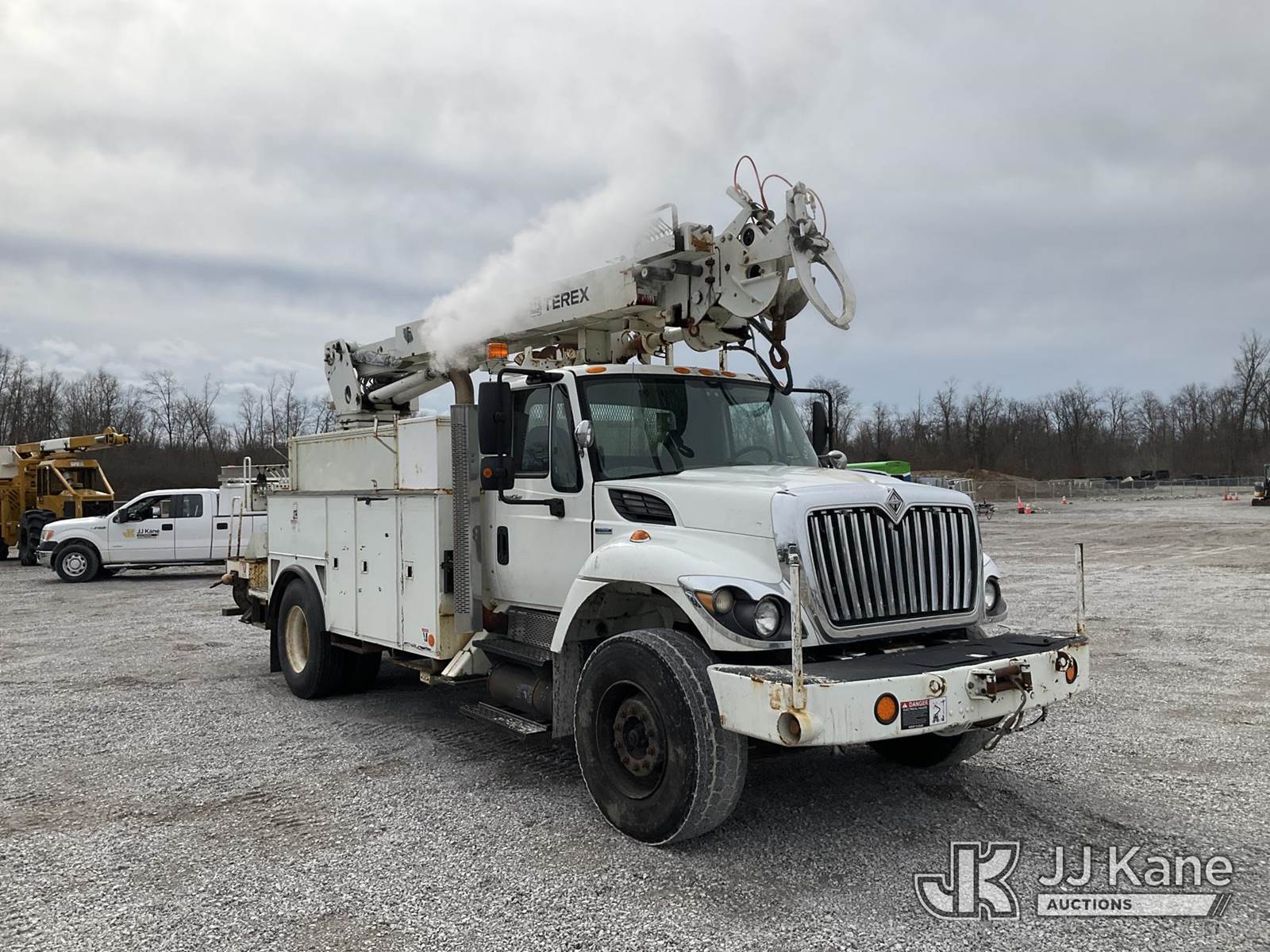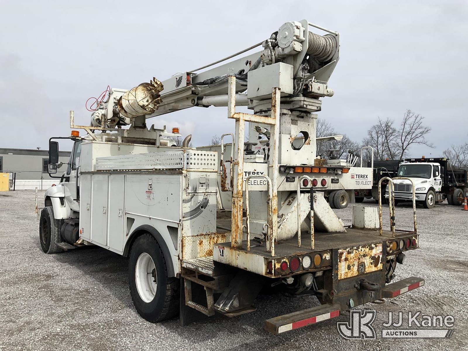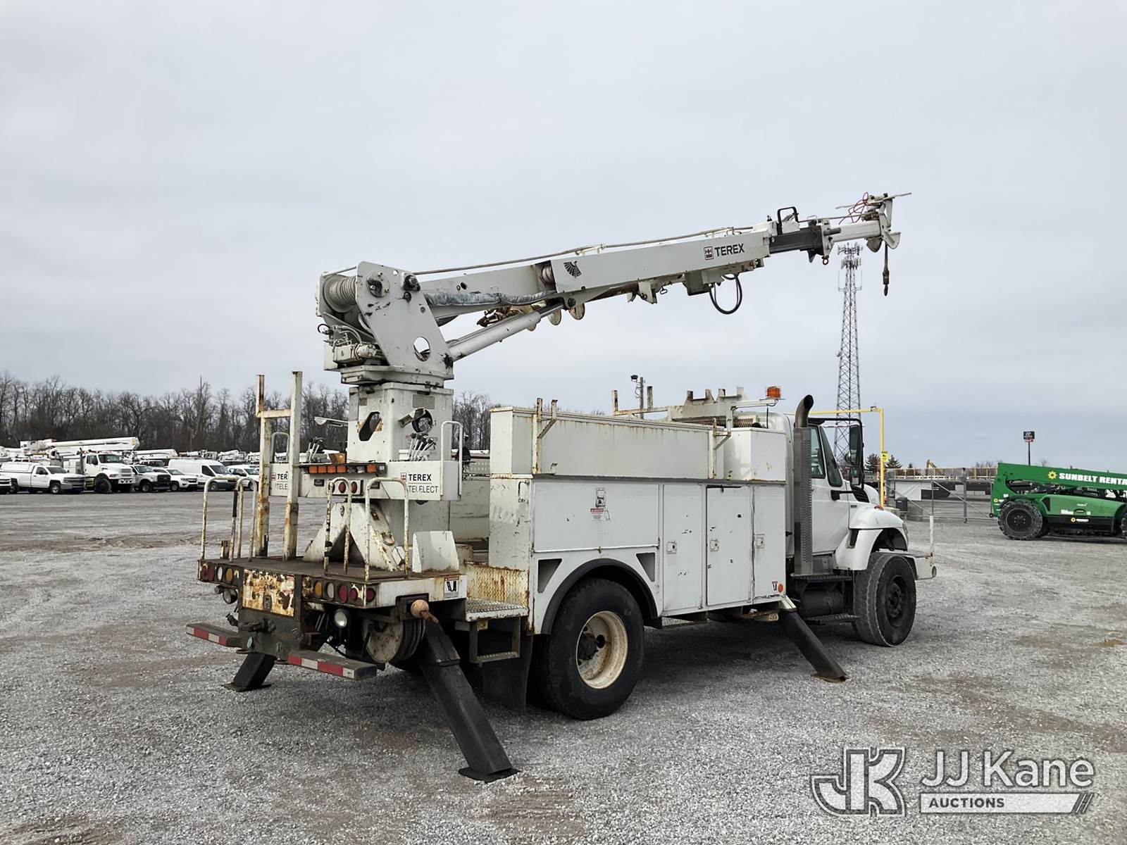 Terex/Telelect Commander 4047, 23,040 Lb Digger Derrick s/n 2080938038, with 47 ft sheave height, 2-spd digger, pole grabs, heel winch, upper controls, dual rear stand up controls & 4 hyd outriggers, rear mounted on 2009 International 7400 Utility Truck, Maxxforce DT diesel, Auto, A/C, with front winch, (107,717 miles) (Runs, Moves & Upper Operates) (Smokes, Burns Coolant, Rust Damage, Slow Hydraulics., Lower Controls Stick, No Power) This is a Titled Item NOTE: This unit is being sold AS IS/WHERE IS via Timed Auction and is located in Verona, KY. Inspection & preview days for this unit are the 2 business days prior to the first day of items closing for this auction, item is located at 2841 Verona-Mudlick Rd Ste B Verona, KY 41092 and hours of operations are 8a-4p. For pre-sale questions, please contact Office Staff @ (502) 612-5080. Auctioneer Michael Whitebread / License # 256617. (Missing manuals, See Auction Company for Manufacturers Information to obtain manuals) (Buyer is responsible for removal. Assistance by consignor or JJ Kane Auctions is not assured.)