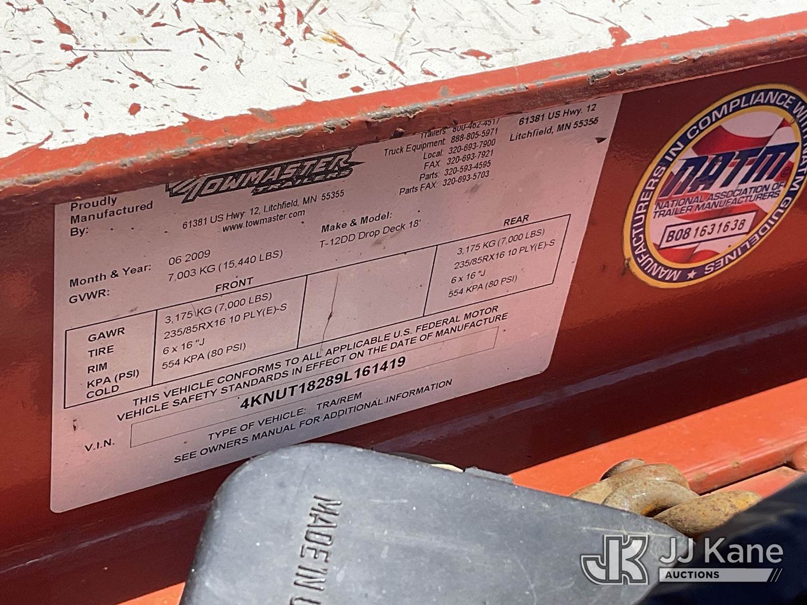 2009 TOWMASTER T/A Tagalong Equipment Trailer, with ? 18 x 6 between the wheels with ramps, This is a Titled Item NOTE: This unit is being sold AS IS/WHERE IS via Timed Auction and is located in Verona, KY. Inspection & preview days for this unit are the 2 business days prior to the first day of items closing for this auction, item is located at 2841 Verona-Mudlick Rd Ste B Verona, KY 41092 and hours of operations are 8a-4p. For pre-sale questions, please contact Office Staff @ (502) 612-5080. Auctioneer Michael Whitebread / License # 256617. (Buyer is responsible for removal. Assistance by consignor or JJ Kane Auctions is not assured.)