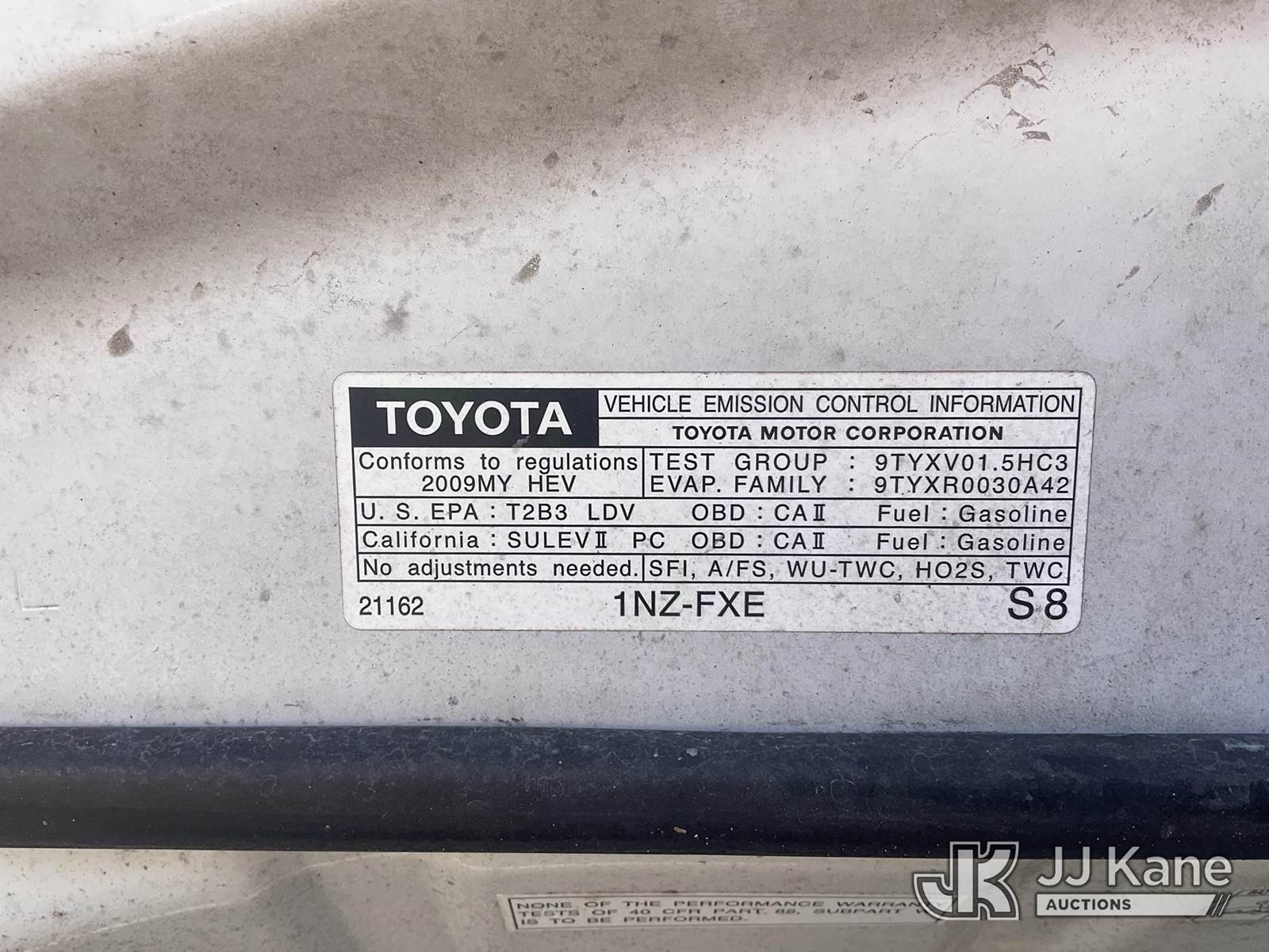 2009 Toyota Prius Hybrid 4-Door Sedan, s/n JTDKB20U493517492, 1.5L L4 DOHC 16V Gas/Electric Continuously Variable Transmission, FWD, A/C, (45,342 miles) (Runs & Moves) This is a Titled Item NOTE: This unit is being sold AS IS/WHERE IS via Timed Auction and is located in Jurupa Valley, CA. Inspection & preview days for this unit are the 2 business days prior to the first day of items closing for this auction, item is located at 4510 Muth Way Jurupa Valley, CA 92509 and hours of operations are 8a-4p. For pre-sale questions, please contact please contact Office Staff @ (310) 353-7140. Dealer License Number 45696. (Buyer is responsible for removal. Assistance by consignor or JJ Kane Auctions is not assured.)
