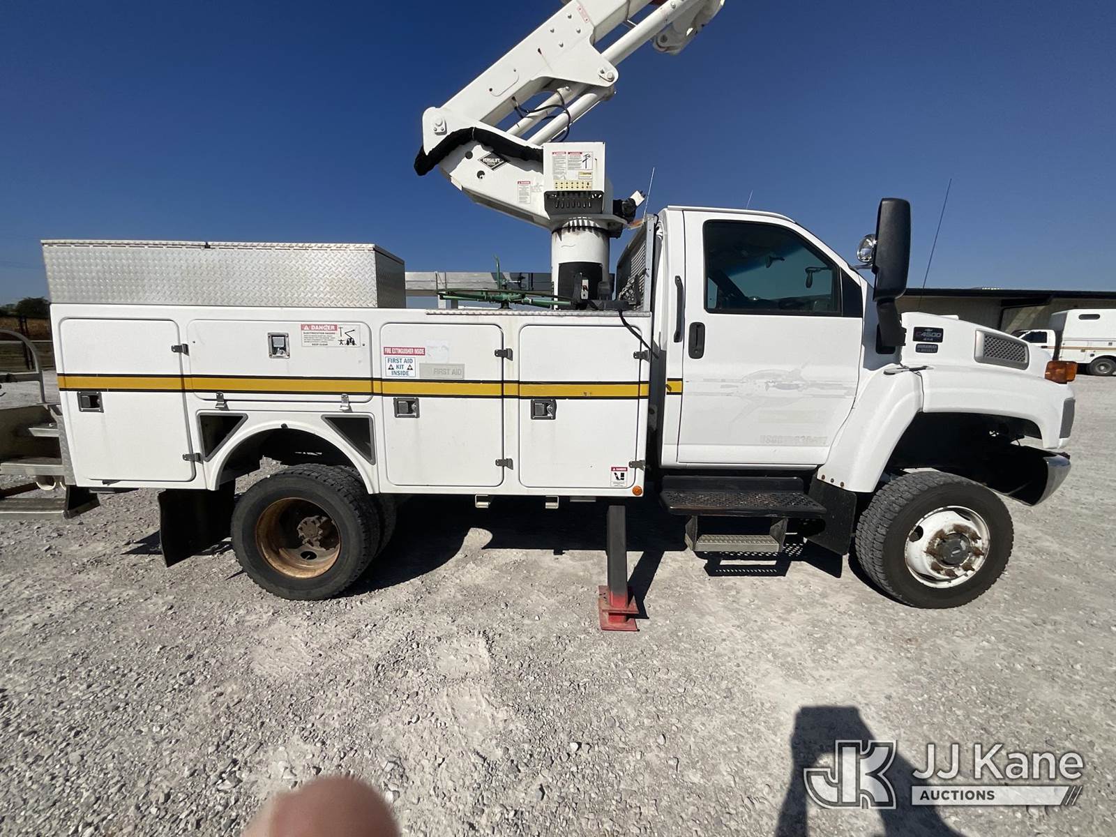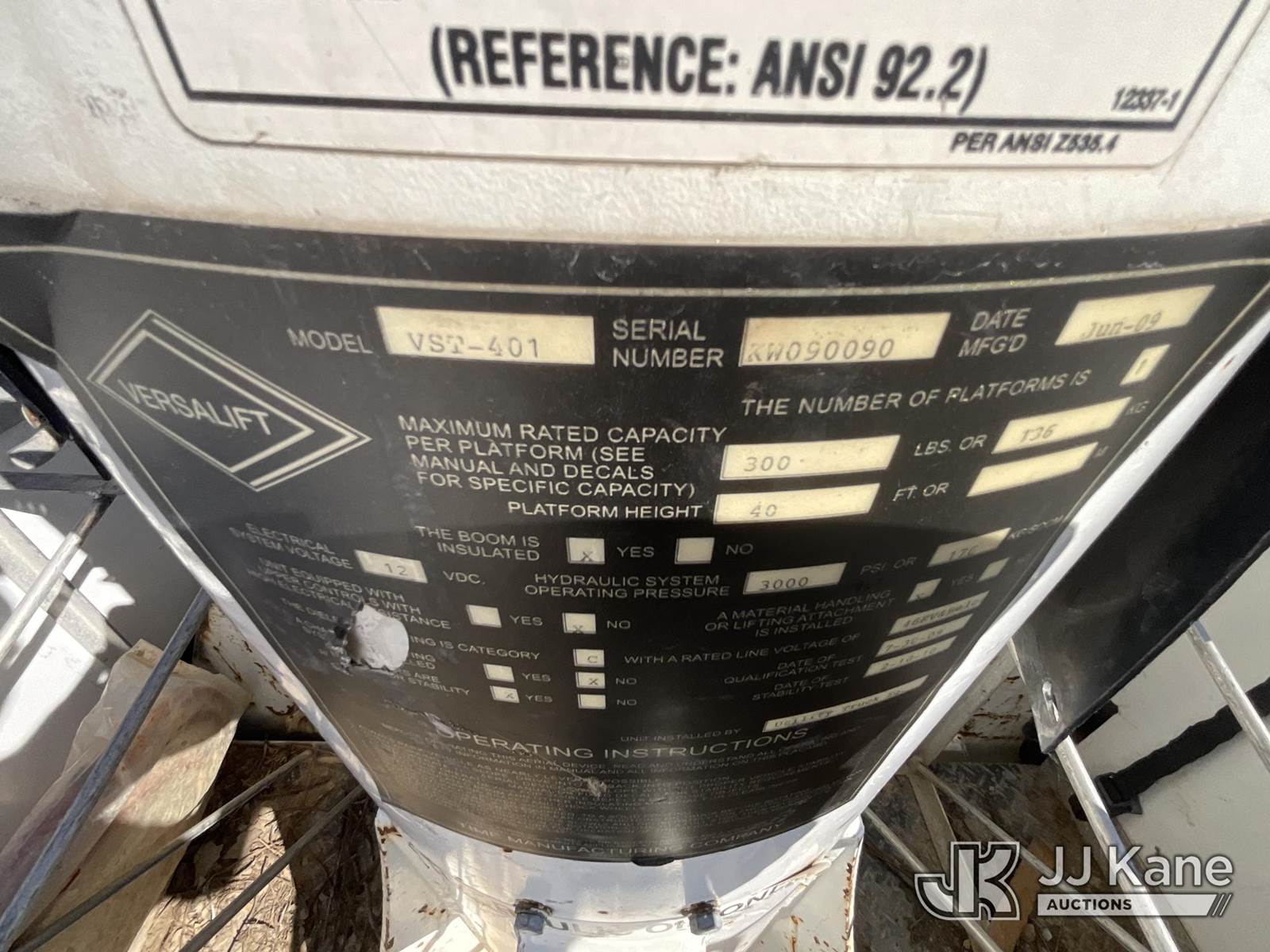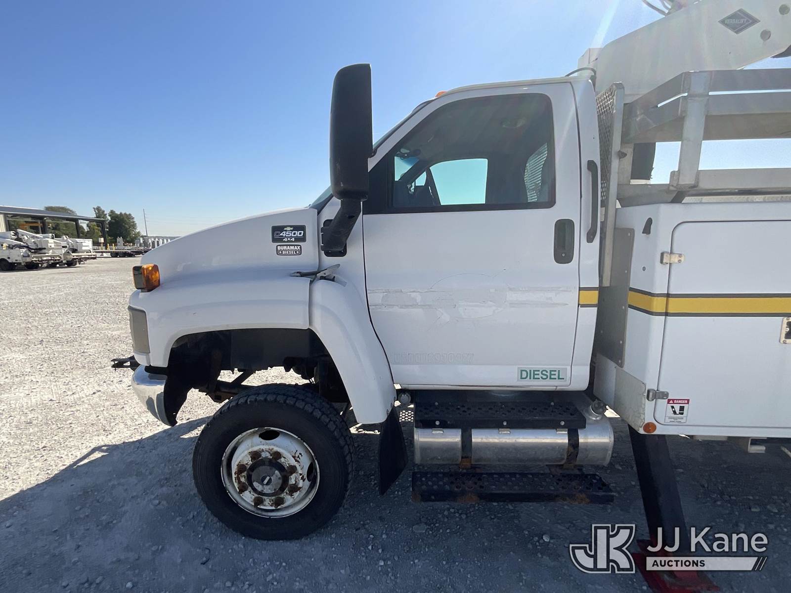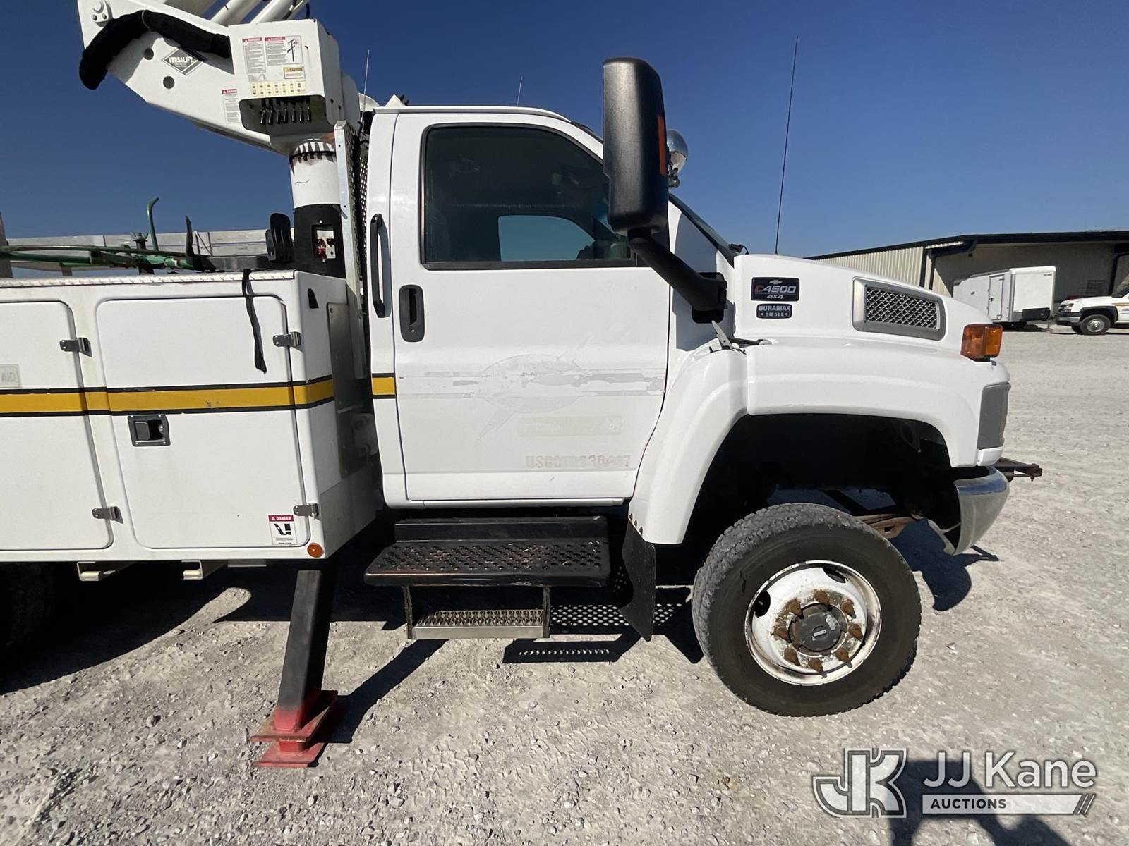 Versalift VST-40I, 45 ft, Articulating & Telescopic Material Handling Bucket Truck s/n KW090090, with single-man bucket & 2 hyd outriggers, mounted behind cab on 2009 Chevrolet C4500 Utility Truck, 6.6L V8 OHV 32V TURBO DIESEL Auto, 4X4, A/C, (239,567 miles) (Electric Cooperative Owned Unit) (Runs, Moves, Operates Per Video) This is a Titled Item NOTE: This unit is being sold AS IS/WHERE IS via Timed Auction and is located in Lancaster, OH. Call Ken at (419) 295-5233 with questions. (Missing manuals, See Auction Company for Manufacturers Information to obtain manuals) (Buyer is responsible for removal. Assistance by consignor or JJ Kane Auctioneers is not assured.)