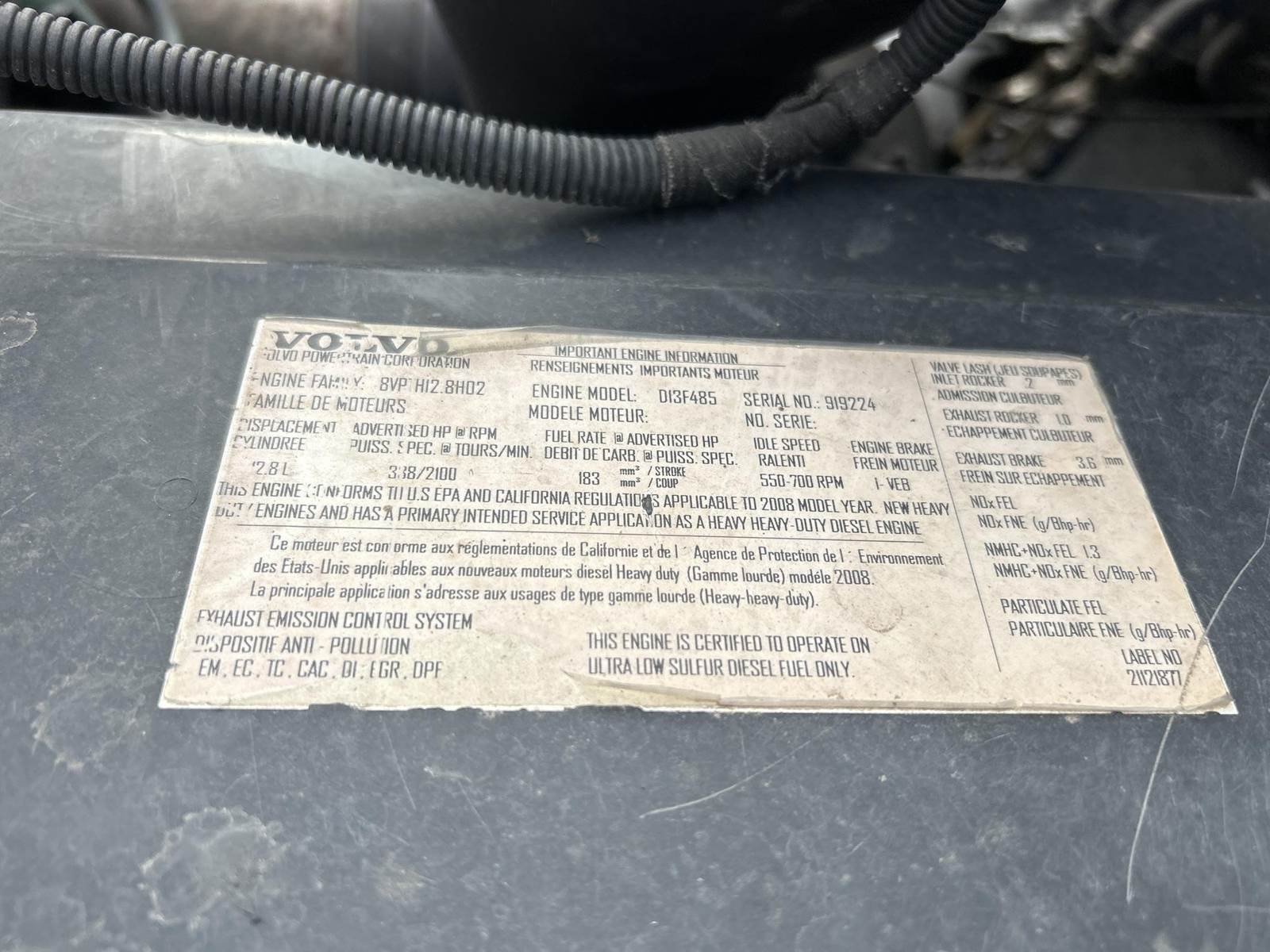 Volvo D13F485 Turbo Diesel Engine, Eaton Fuller 10 Speed Automatic Transmission, 51200LB GVWR, 13200LB Front Axle GAWR, Interaxle Lock, Air Ride Suspension, Single Frame, Approx. 36" Sliding Fifth Wheel Assembly, Sleeper Cab, Double Bunk, Rear Control Panel, Heat/AC, Bluetooth Radio, Omnitracs CV90 System, Heated Mirrors, Power Windows/Mirrors/Locks, Aluminum Outer Rims, 295/75R22.5 Tires
