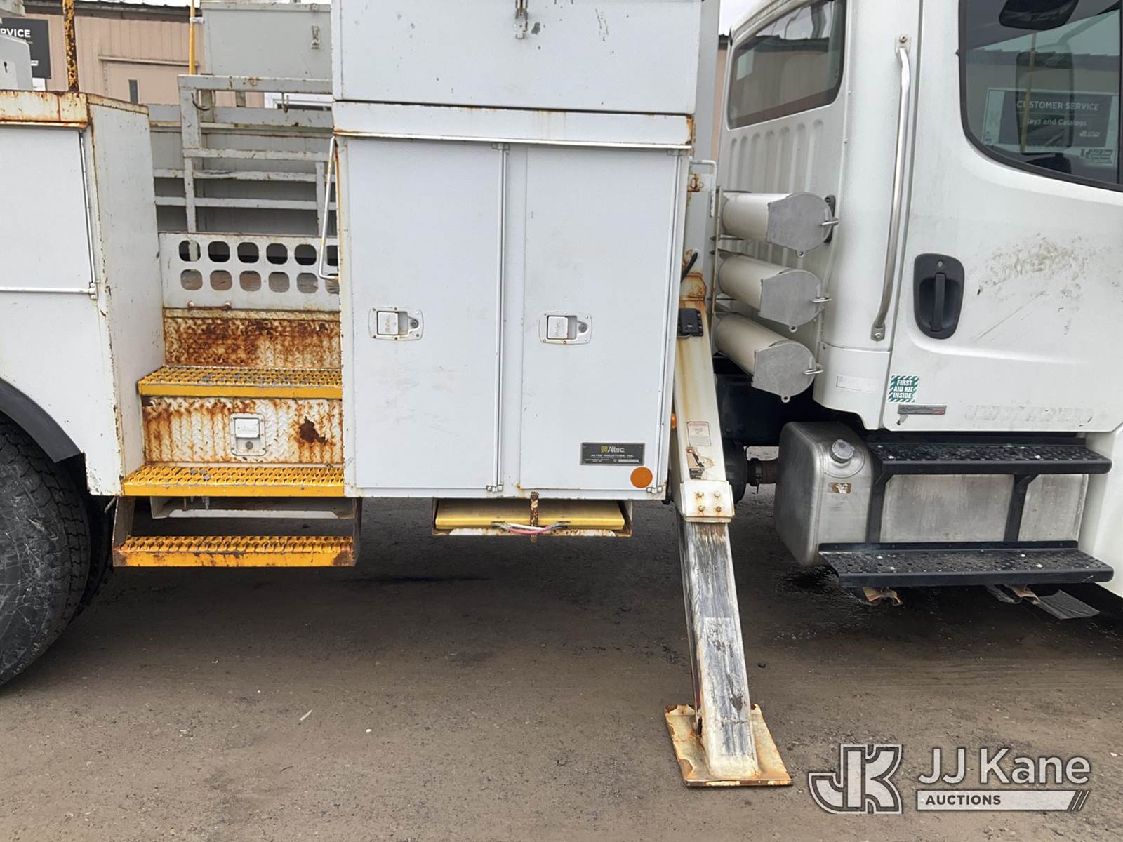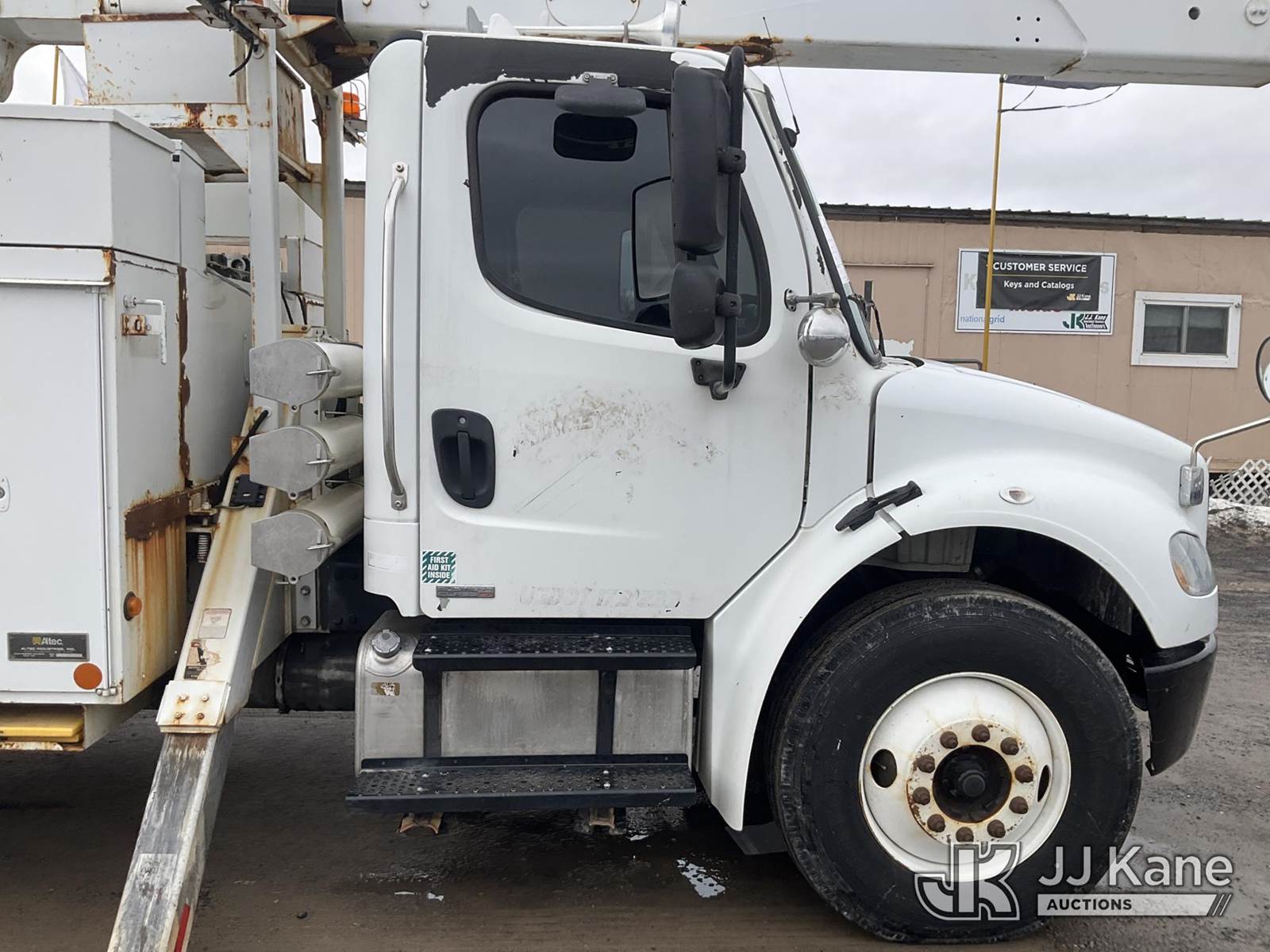 Altec AA55E, 60 ft, Material Handling Bucket Truck s/n 1108EM0488, with Two Man Bucket & 4 Outriggers , rear mounted on 2010 Freightliner M2 106 Utility Truck, 6.7L diesel, Auto, A/C, (130,116 miles) (Runs, Moves & Upper Operates, ABS Light On) This is a Titled Item NOTE: This unit is being sold AS IS/WHERE IS via Timed Auction and is located in Rome, NY. Inspection & preview days for this unit are the 2 business days prior to the first day of items closing for this auction, item is located at 5835 Success Dr Rome, NY 13440 and hours of operations are 8a-4p. For pre-sale questions, please contact Ryan Jackson @ (315) 749-3790 or Ryan.Jackson@jjkane.com. (Manuals provided in cab) (Buyer is responsible for removal. Assistance by consignor or JJ Kane Auctions is not assured.)