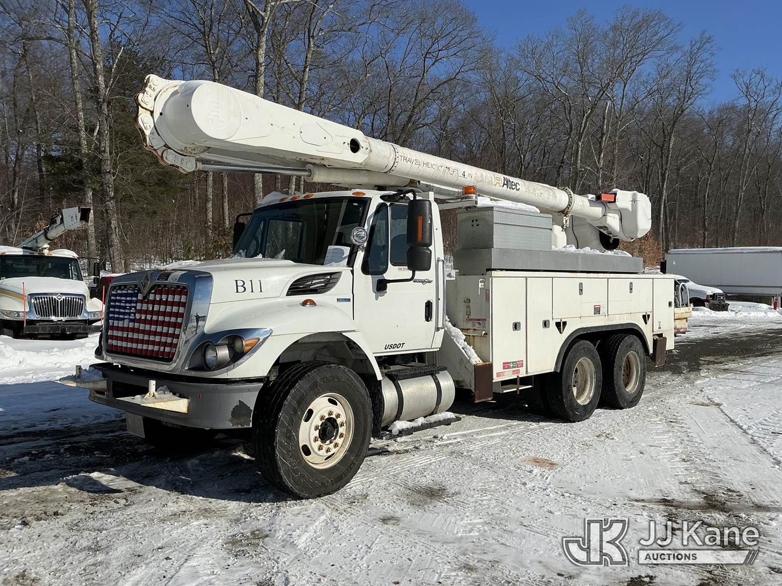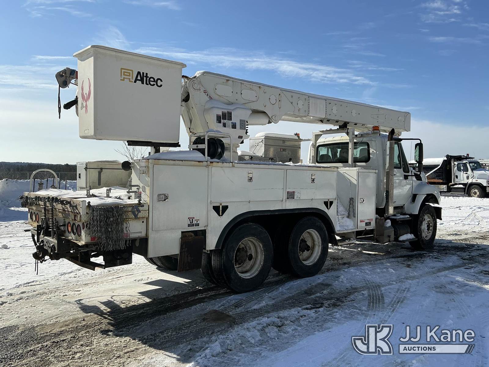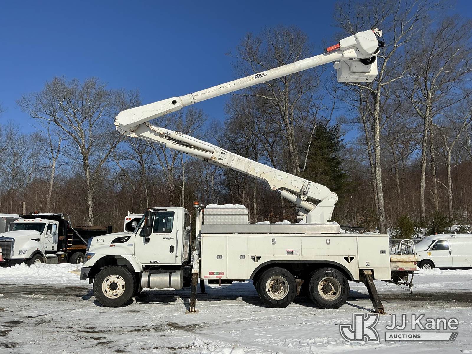 Altec AM55, 60 ft, Over-Center Material Handling Bucket Truck s/n 0709DM2585, with two man bucket & 4 hyd outriggers, rear mounted on 2010 International 7400 Utility Truck, MaxxForce 7.6L 6X4, diesel, Auto, A/C, (126,871 miles) (Runs, Moves & Upper Operates) (Cracked Windshield) (Reads 11,253 hours) This is a Titled Item NOTE: This unit is being sold AS IS/WHERE IS via Timed Auction and is located in Shrewsbury, MA. Inspection & preview days for this unit are the 2 business days prior to the first day of items closing for this auction, item is located at 11 Fortune Blvd Shrewsbury, MA 01545 and hours of operations are 8a-4p. For pre-sale questions, please contact Rob Gifford @ (508) 864-4126. (Manuals provided in cab) (Buyer is responsible for removal. Assistance by consignor or JJ Kane Auctions is not assured.)
