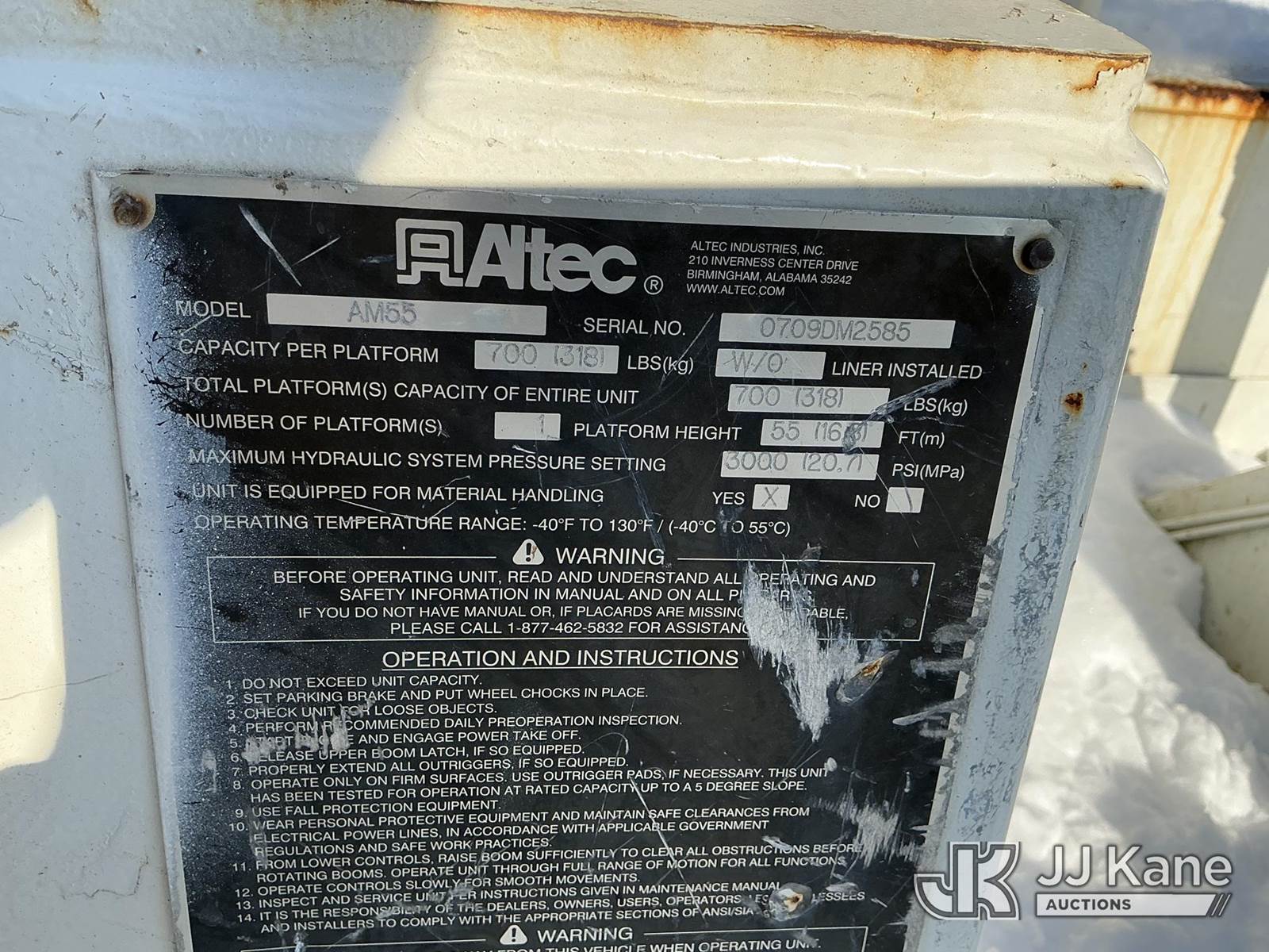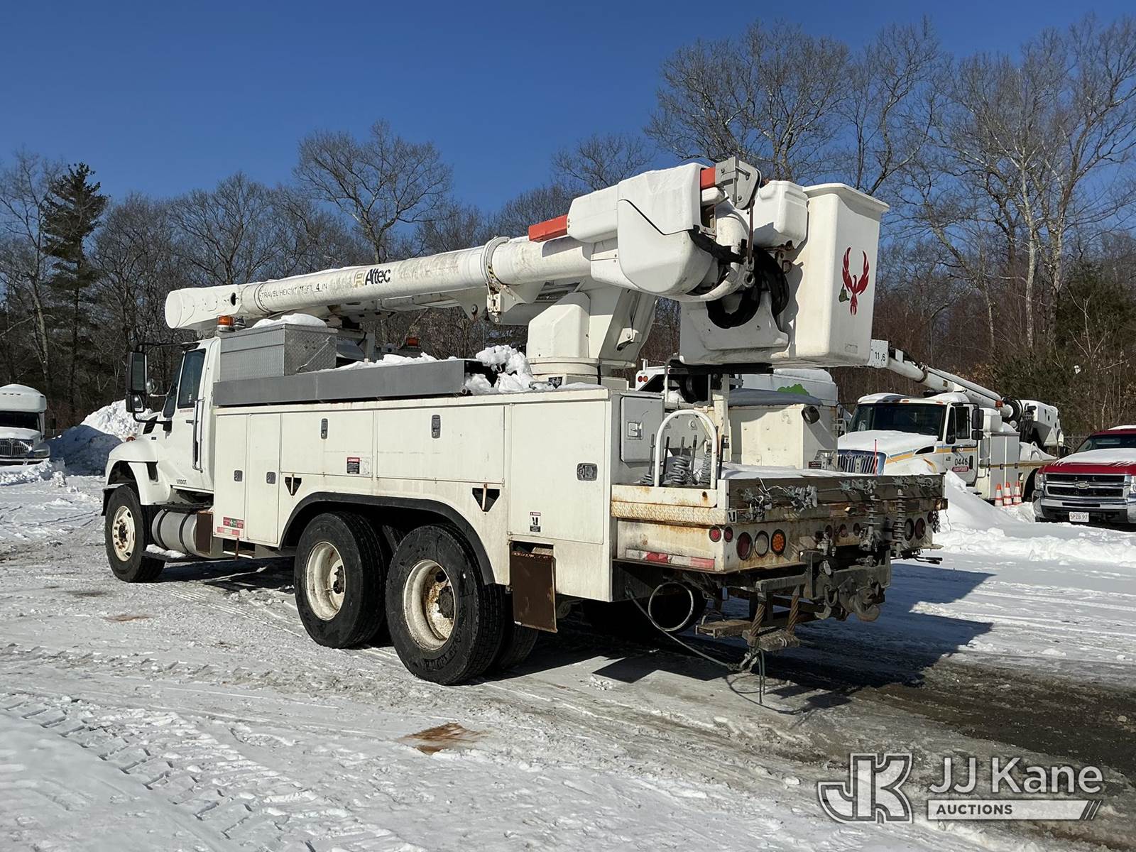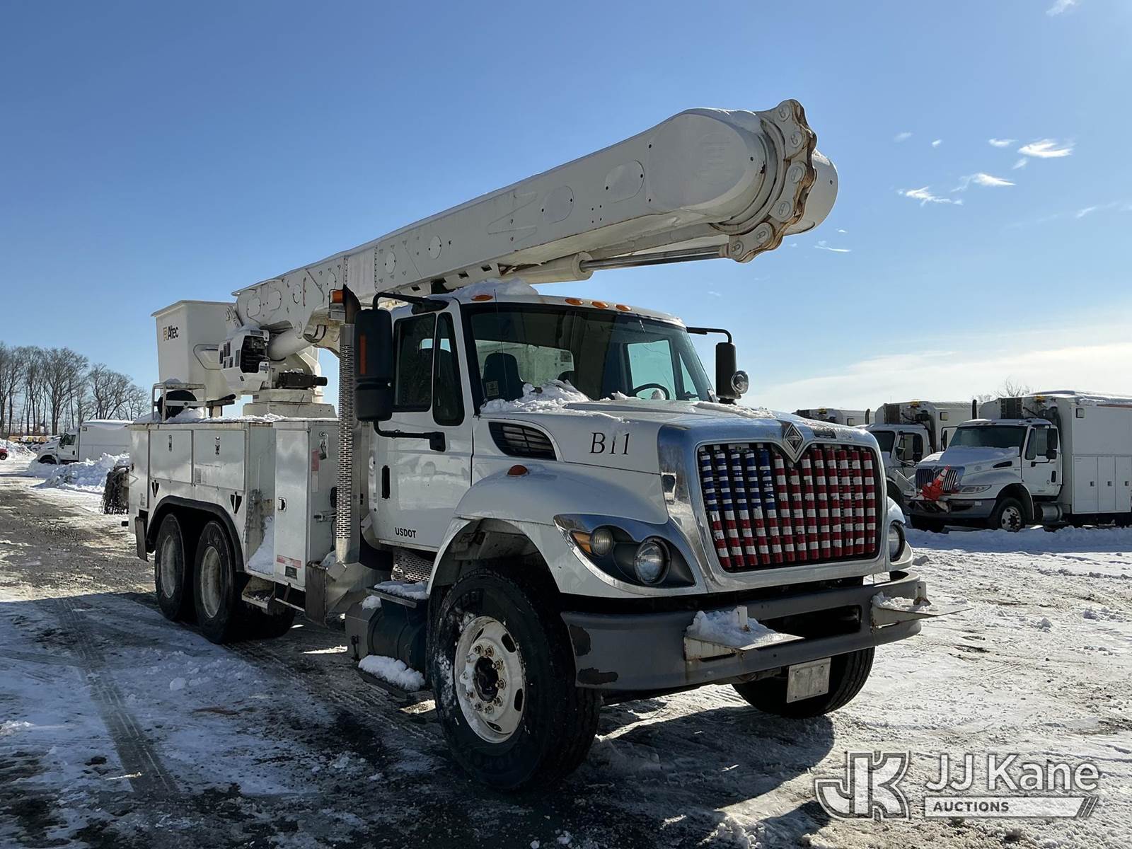 Altec AM55, 60 ft, Over-Center Material Handling Bucket Truck s/n 0709DM2585, with two man bucket & 4 hyd outriggers, rear mounted on 2010 International 7400 Utility Truck, MaxxForce 7.6L 6X4, diesel, Auto, A/C, (126,871 miles) (Runs, Moves & Upper Operates) (Cracked Windshield) (Reads 11,253 hours) This is a Titled Item NOTE: This unit is being sold AS IS/WHERE IS via Timed Auction and is located in Shrewsbury, MA. Inspection & preview days for this unit are the 2 business days prior to the first day of items closing for this auction, item is located at 11 Fortune Blvd Shrewsbury, MA 01545 and hours of operations are 8a-4p. For pre-sale questions, please contact Rob Gifford @ (508) 864-4126. (Manuals provided in cab) (Buyer is responsible for removal. Assistance by consignor or JJ Kane Auctions is not assured.)