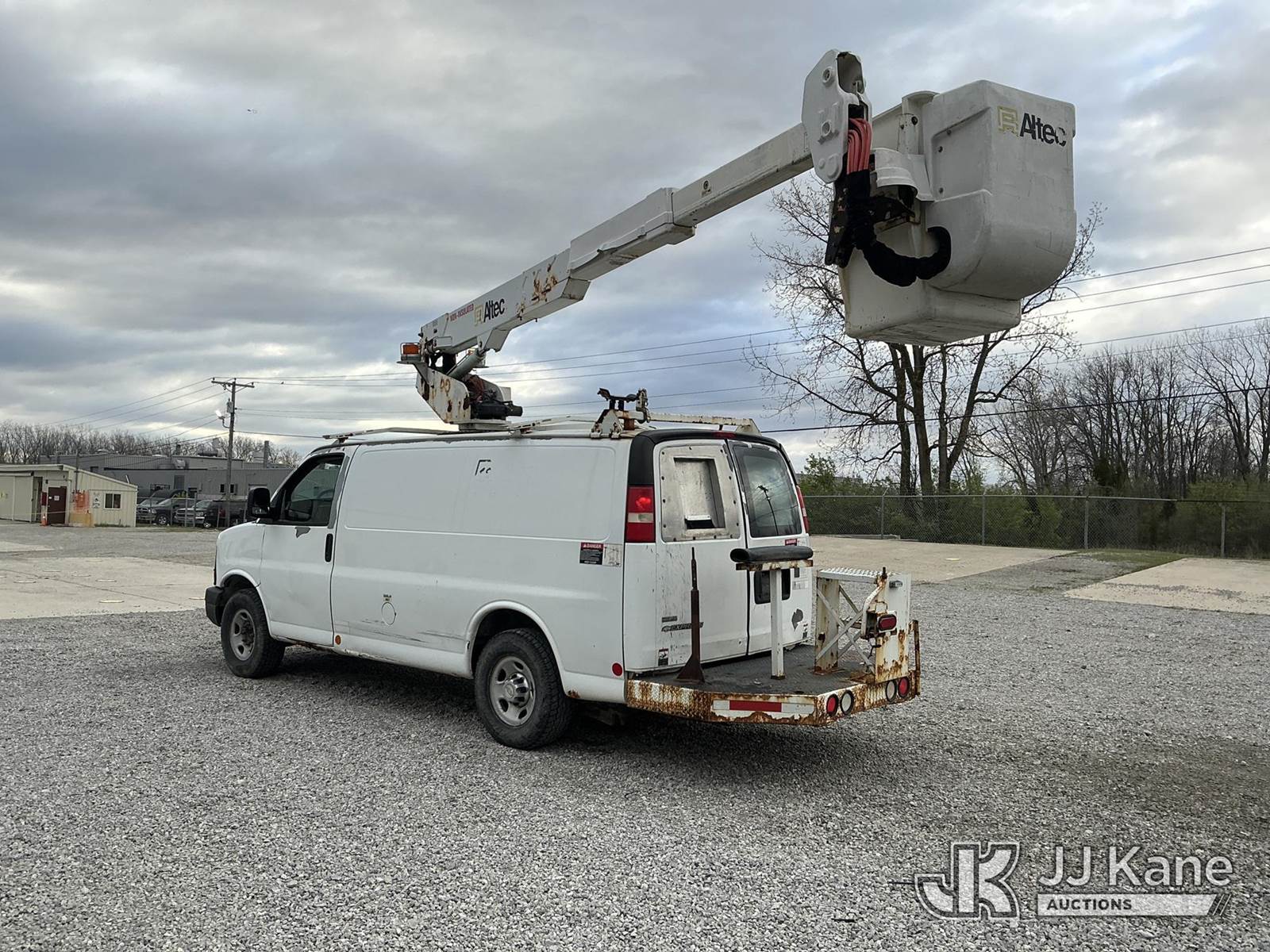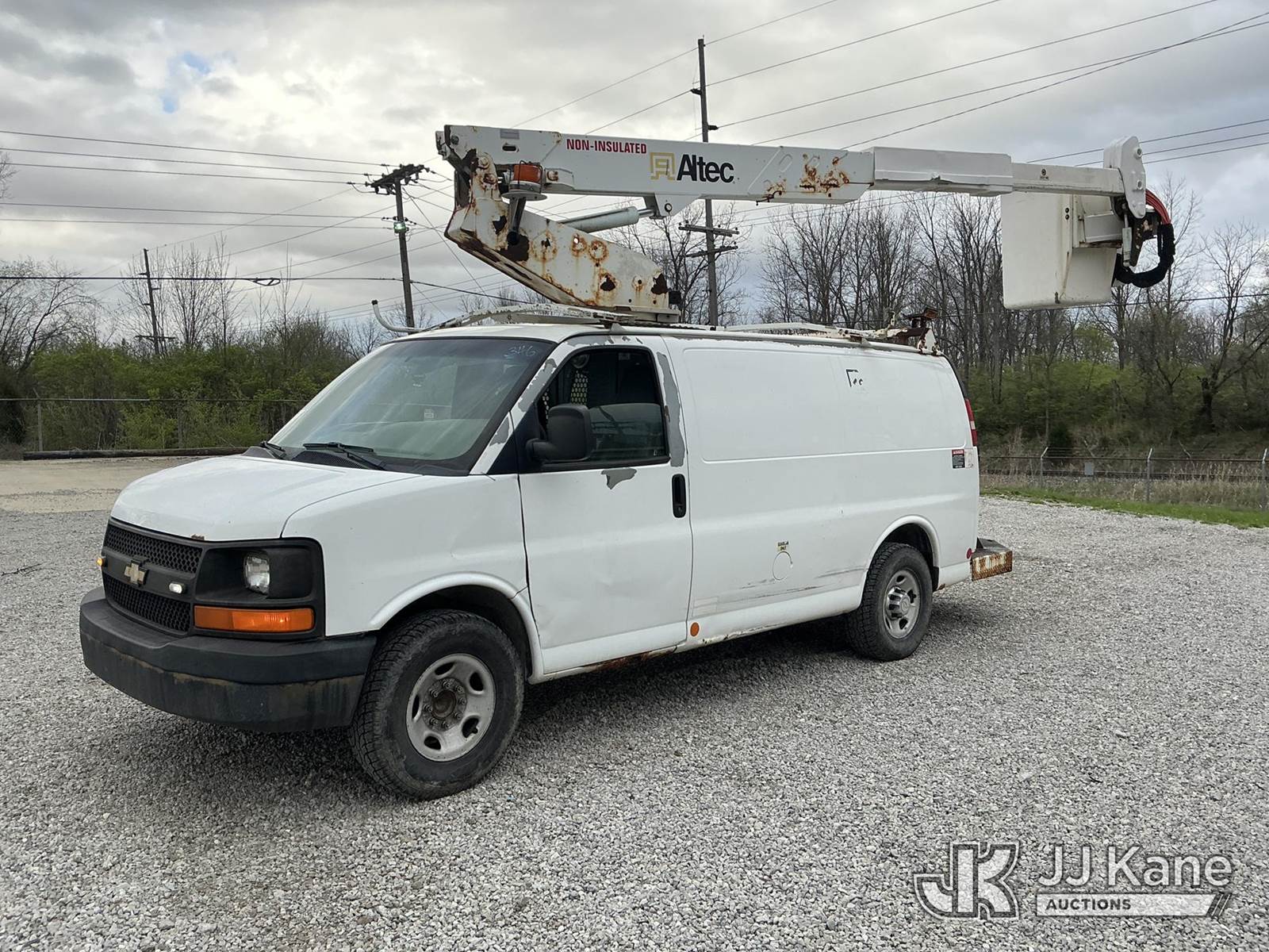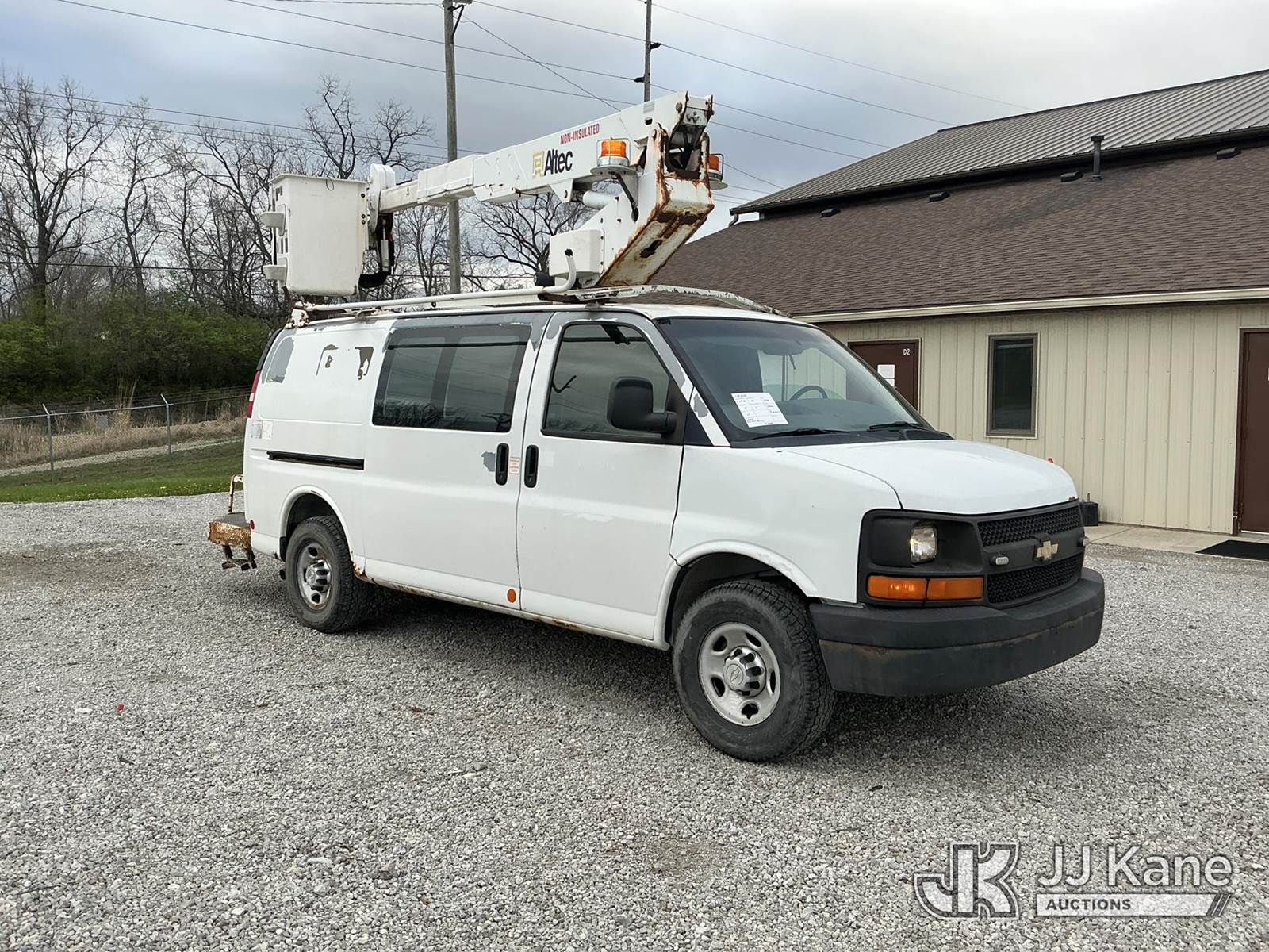 Altec AT-30GV, 35 ft, Telescopic Non-Insulated Bucket Van s/n 0510CR0114, with single-man bucket, mounted behind cab on 2010 Chevrolet Express G3500 Cargo Van, 8-cyl gas, RWD, Auto, A/C, with inverter, (233,157 miles) (Runs, Moves & Upper Operates) (Check Engine Light Flashing, Hours Unknown, Body/Rust & Paint Damage) This is a Titled Item NOTE: This unit is being sold AS IS/WHERE IS via Timed Auction and is located in Fort Wayne, IN. Inspection & preview days for this unit are the 2 business days prior to the first day of items closing for this auction, item is located at 3020 Commercial Rd Fort Wayne, IN 46809 and hours of operations are 8a-4p. For pre-sale questions, please contact Eric Mcintosh @ (260) 205-2483 (Manuals provided in cab) (Buyer is responsible for removal. Assistance by consignor or JJ Kane Auctions is not assured.)