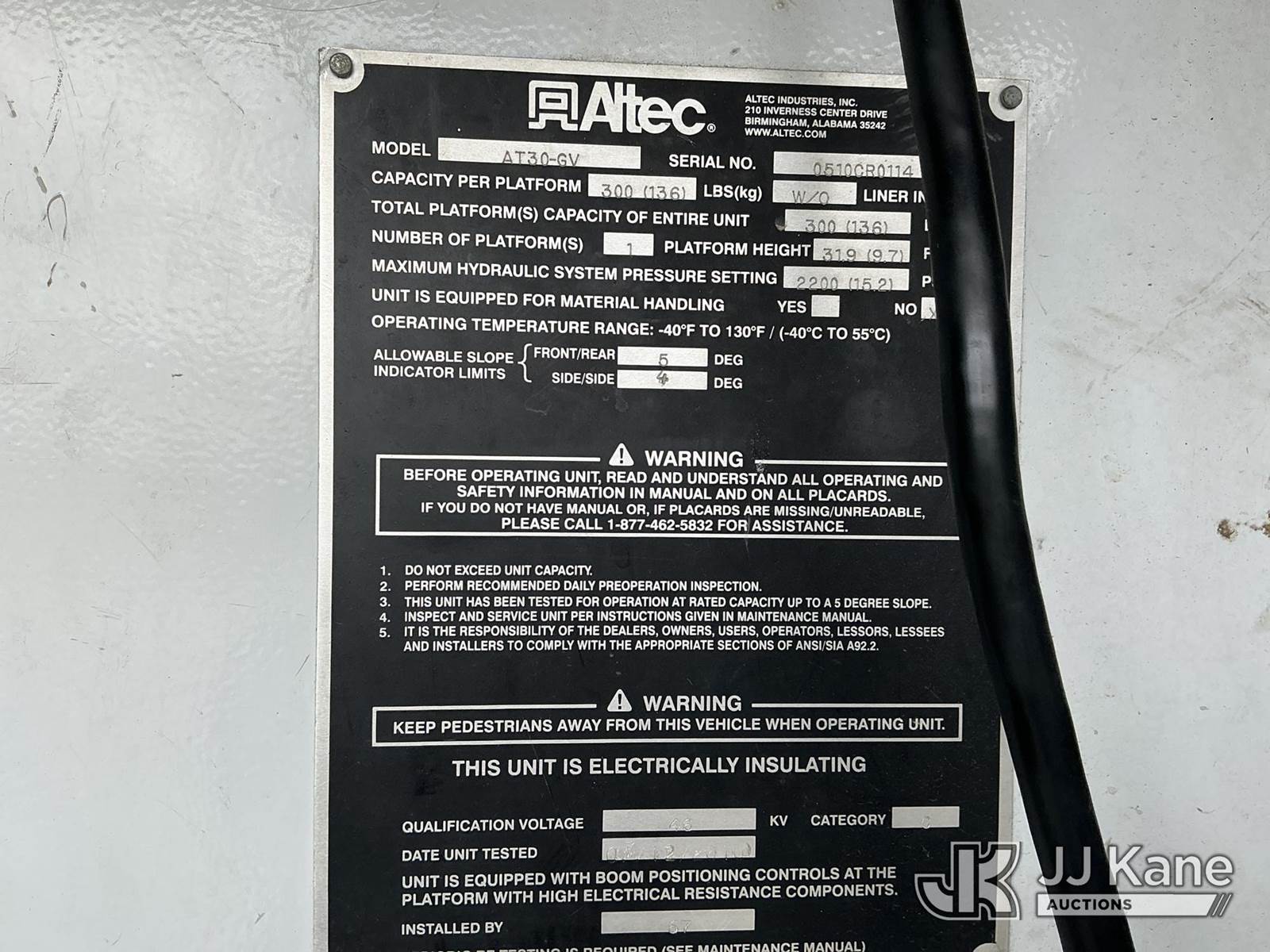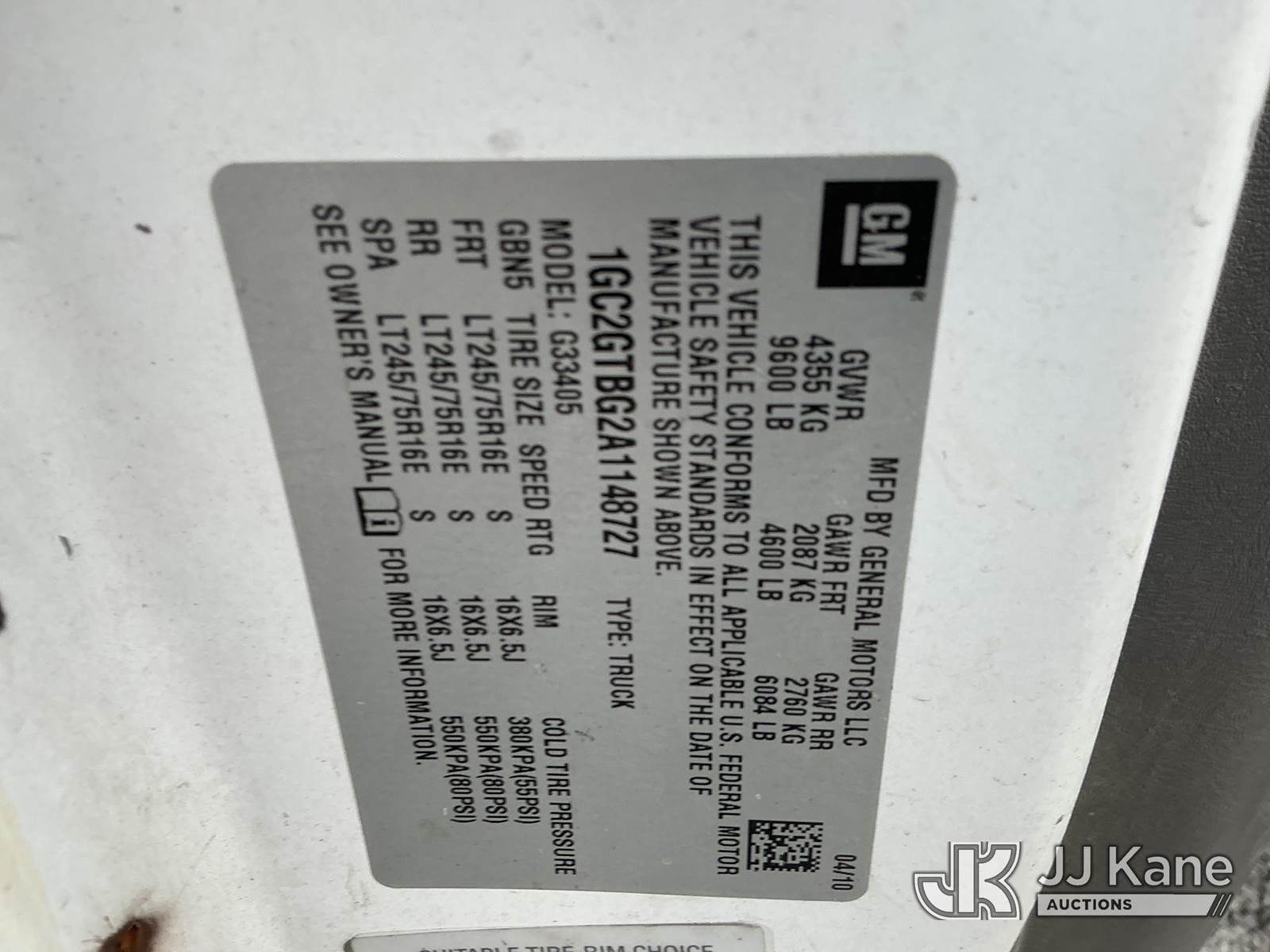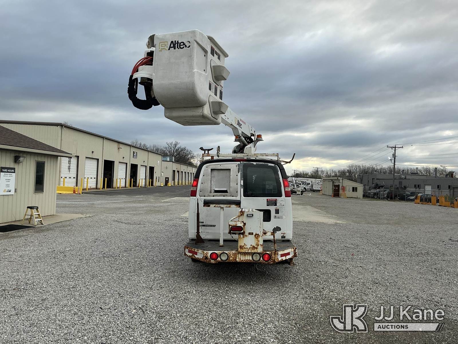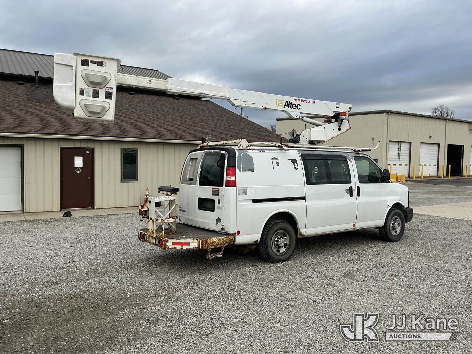 Altec AT-30GV, 35 ft, Telescopic Non-Insulated Bucket Van s/n 0510CR0114, with single-man bucket, mounted behind cab on 2010 Chevrolet Express G3500 Cargo Van, 8-cyl gas, RWD, Auto, A/C, with inverter, (233,157 miles) (Runs, Moves & Upper Operates) (Check Engine Light Flashing, Hours Unknown, Body/Rust & Paint Damage) This is a Titled Item NOTE: This unit is being sold AS IS/WHERE IS via Timed Auction and is located in Fort Wayne, IN. Inspection & preview days for this unit are the 2 business days prior to the first day of items closing for this auction, item is located at 3020 Commercial Rd Fort Wayne, IN 46809 and hours of operations are 8a-4p. For pre-sale questions, please contact Eric Mcintosh @ (260) 205-2483 (Manuals provided in cab) (Buyer is responsible for removal. Assistance by consignor or JJ Kane Auctions is not assured.)