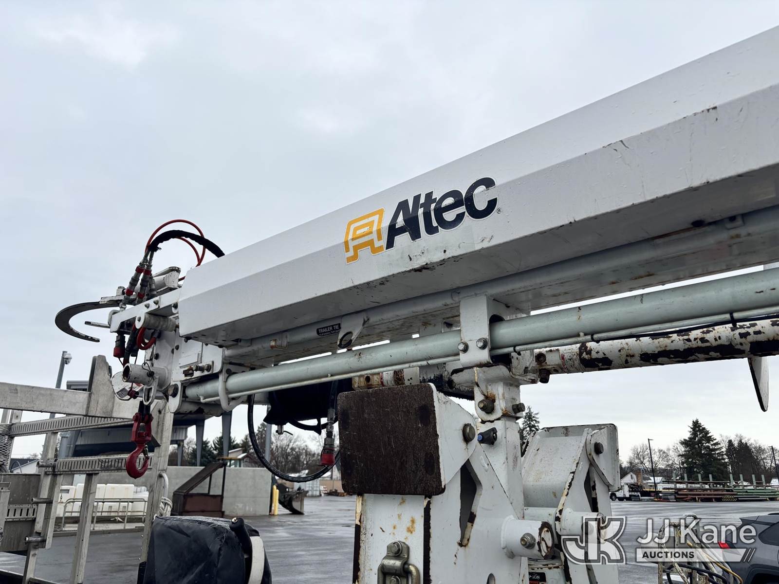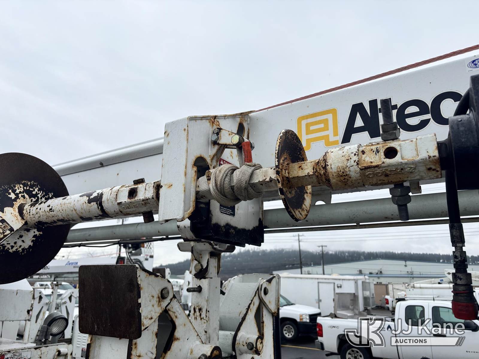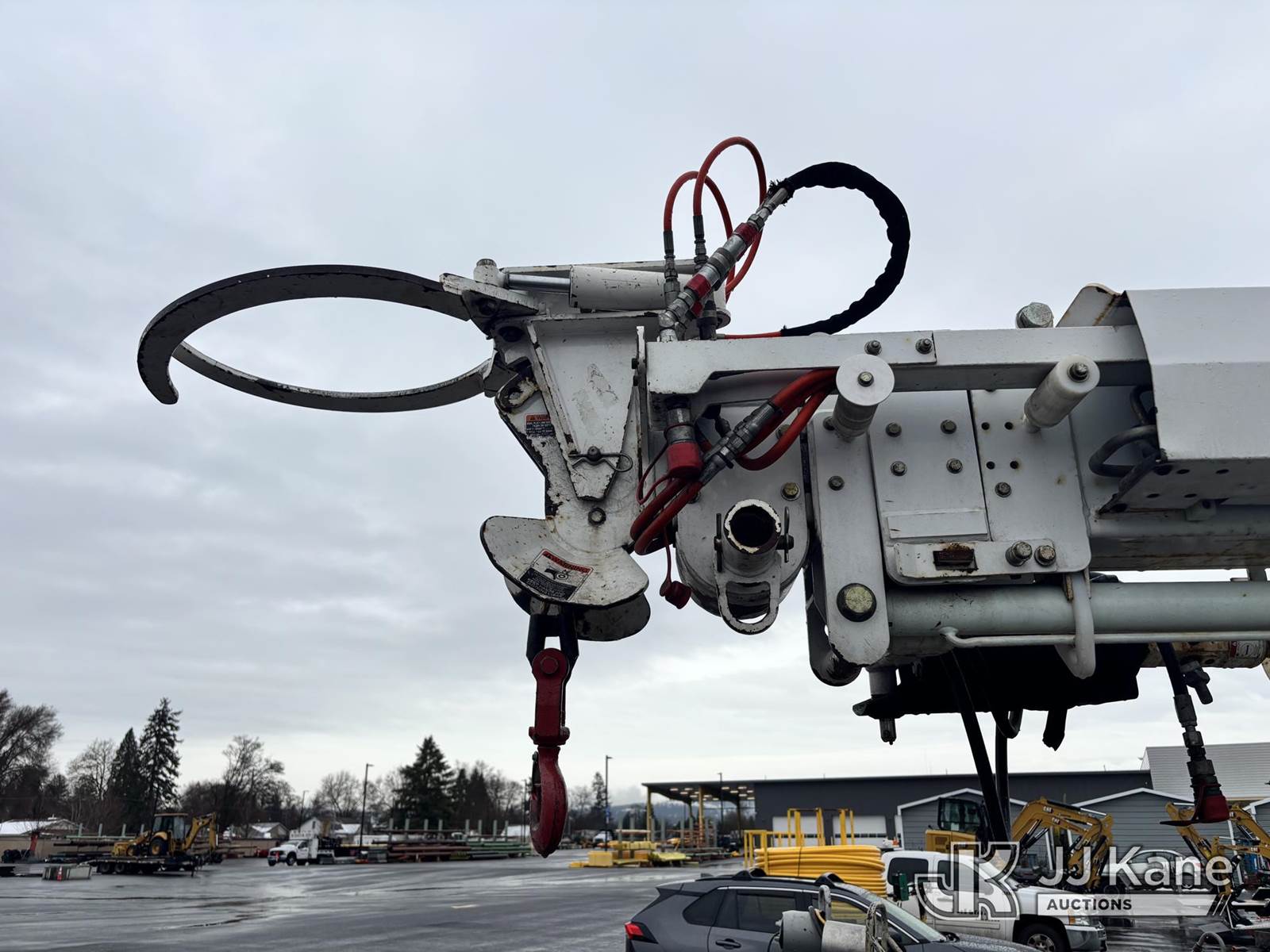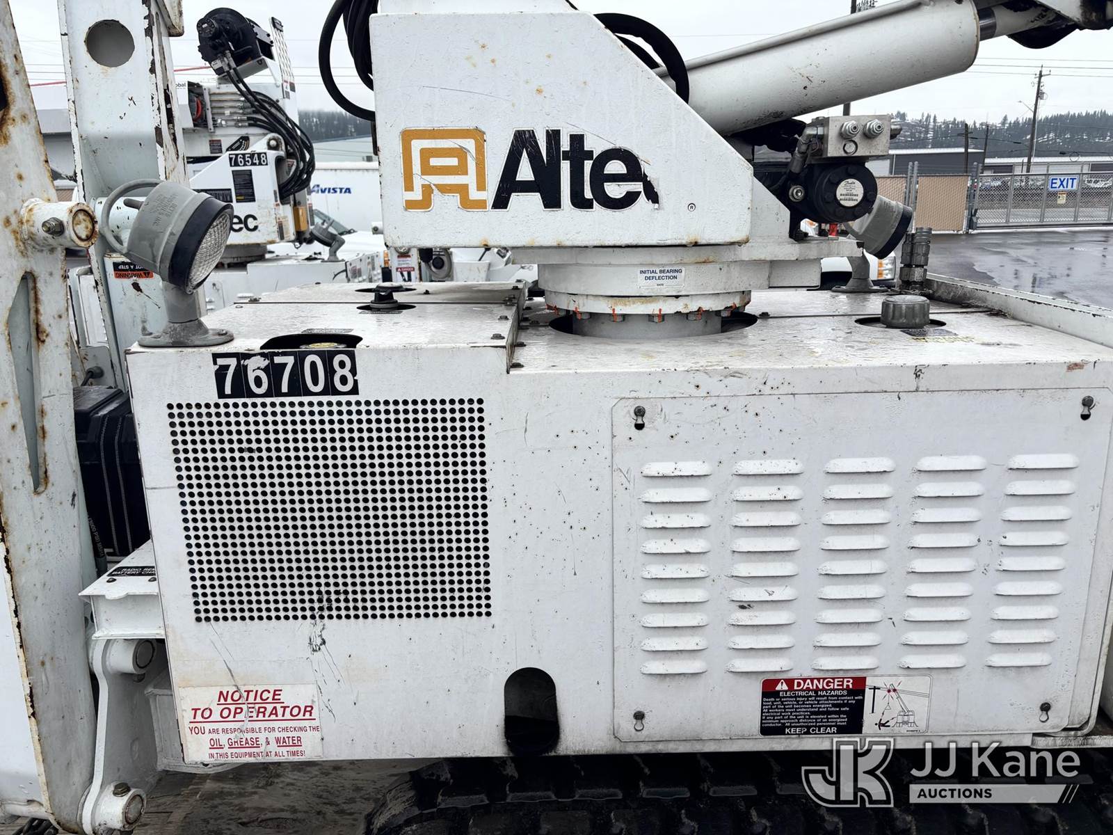 Altec DB37, 3,800 Lb Back Yard Digger Derrick s/n 0510ET0171, with 37ft sheave height, heel winch, pole guides, wireless remote, pin-on bucket, mounted on 2010 Tracked Backyard Carrier, Kubota diesel, Hydrostatic, with rubber tracks, four hydraulic outriggers, hydraulic tool lines, Sells With Support Trailer, ID 1595557.(Equipment & Trailer Price Will Be Split Out On Invoice To Reflect 80/20, Equipment To Trailer Price Ratio For Tax Purposes.) (Runs, Moves & Operates) (Reads 923 hours) NOTE: This unit is being sold AS IS/WHERE IS via Timed Auction and is located in Post Falls, ID. Inspection & preview days for this unit are by appointment only; please contact us at contact@jjkane.com or 84-Go-JJKane for more details. (Missing manuals, See Auction Company for Manufacturers Information to obtain manuals) (Buyer is responsible for removal. Assistance by consignor or JJ Kane Auctions is not assured.)