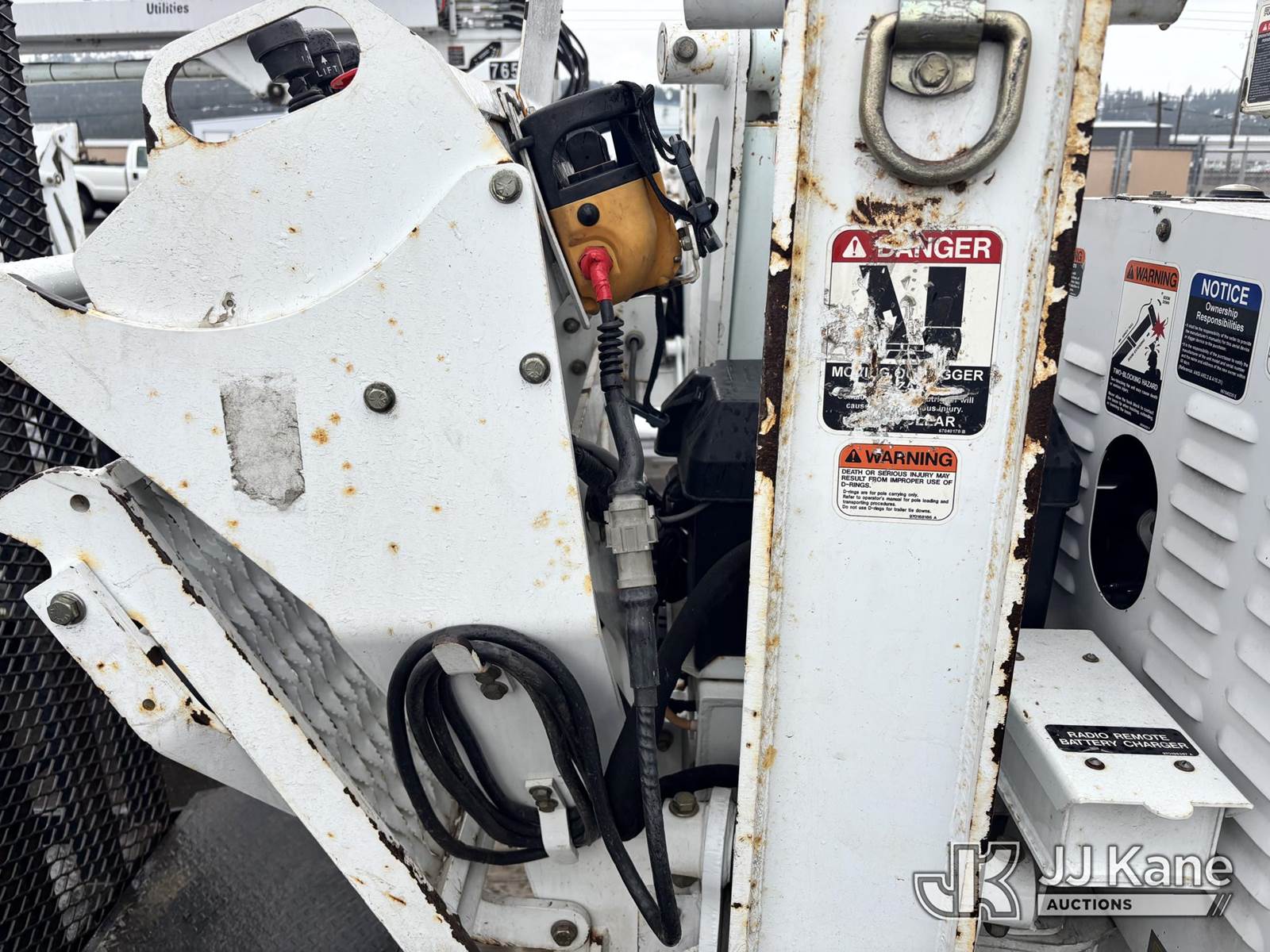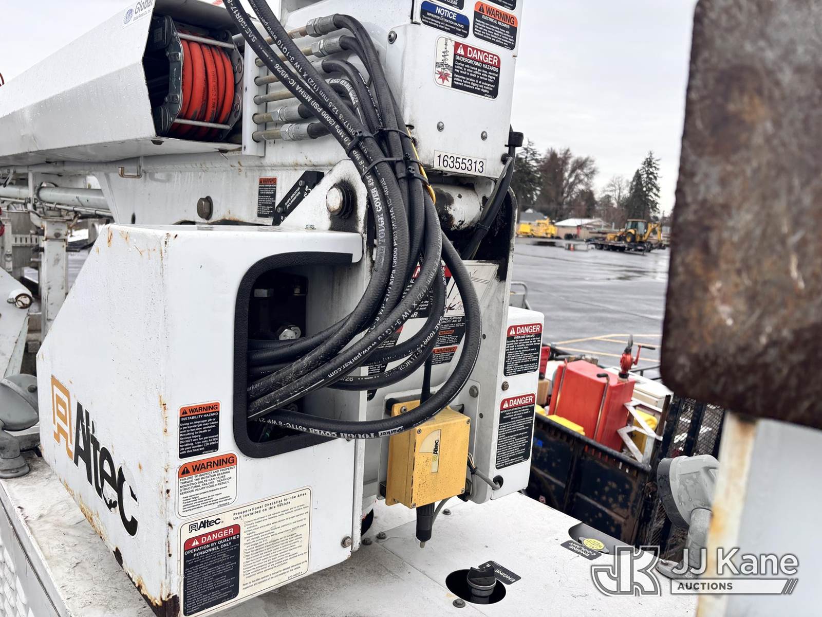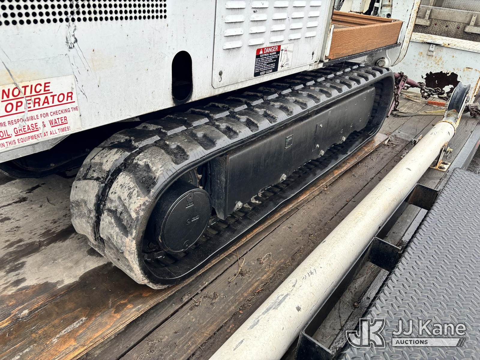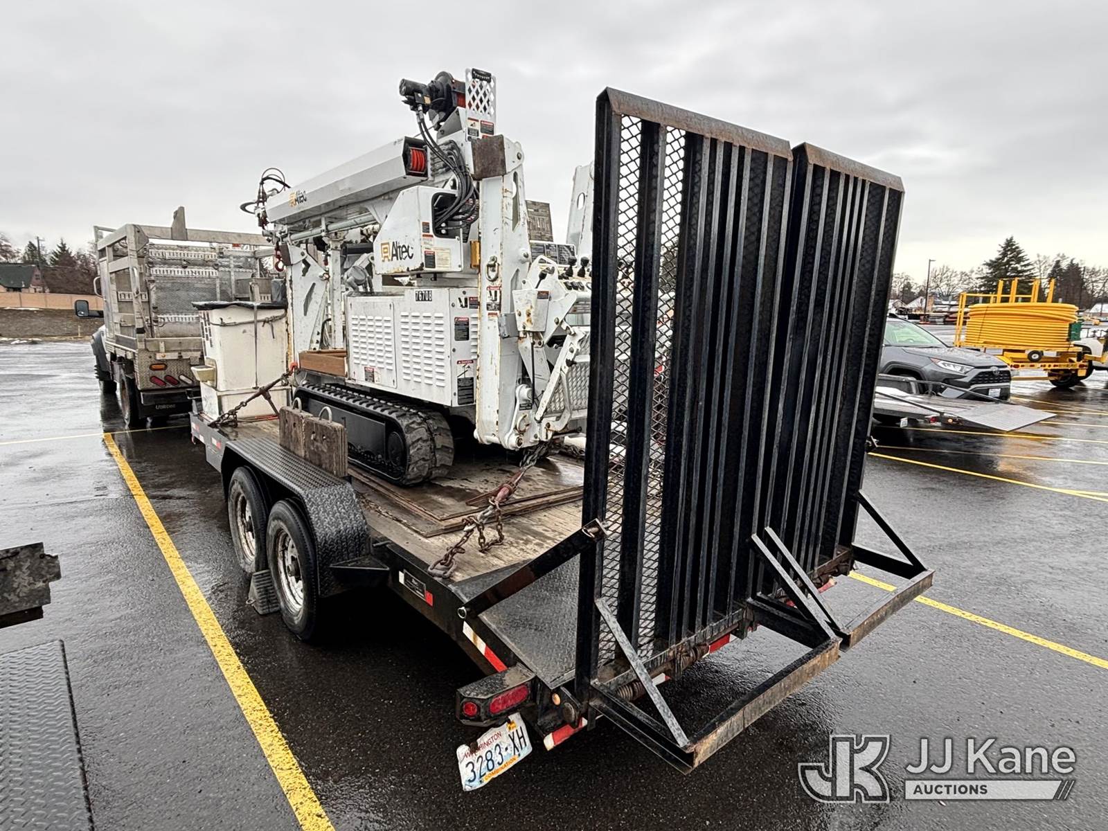 Altec DB37, 3,800 Lb Back Yard Digger Derrick s/n 0510ET0171, with 37ft sheave height, heel winch, pole guides, wireless remote, pin-on bucket, mounted on 2010 Tracked Backyard Carrier, Kubota diesel, Hydrostatic, with rubber tracks, four hydraulic outriggers, hydraulic tool lines, Sells With Support Trailer, ID 1595557.(Equipment & Trailer Price Will Be Split Out On Invoice To Reflect 80/20, Equipment To Trailer Price Ratio For Tax Purposes.) (Runs, Moves & Operates) (Reads 923 hours) NOTE: This unit is being sold AS IS/WHERE IS via Timed Auction and is located in Post Falls, ID. Inspection & preview days for this unit are by appointment only; please contact us at contact@jjkane.com or 84-Go-JJKane for more details. (Missing manuals, See Auction Company for Manufacturers Information to obtain manuals) (Buyer is responsible for removal. Assistance by consignor or JJ Kane Auctions is not assured.)