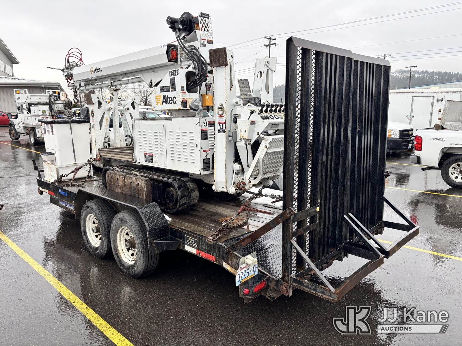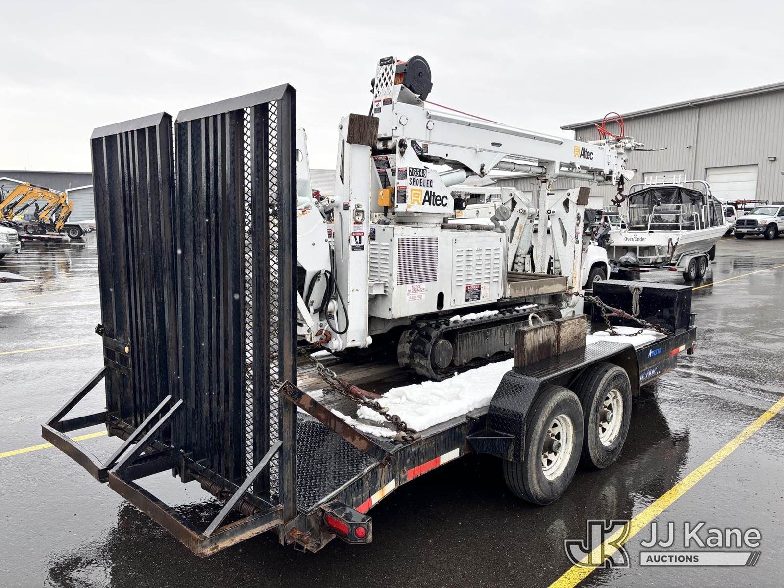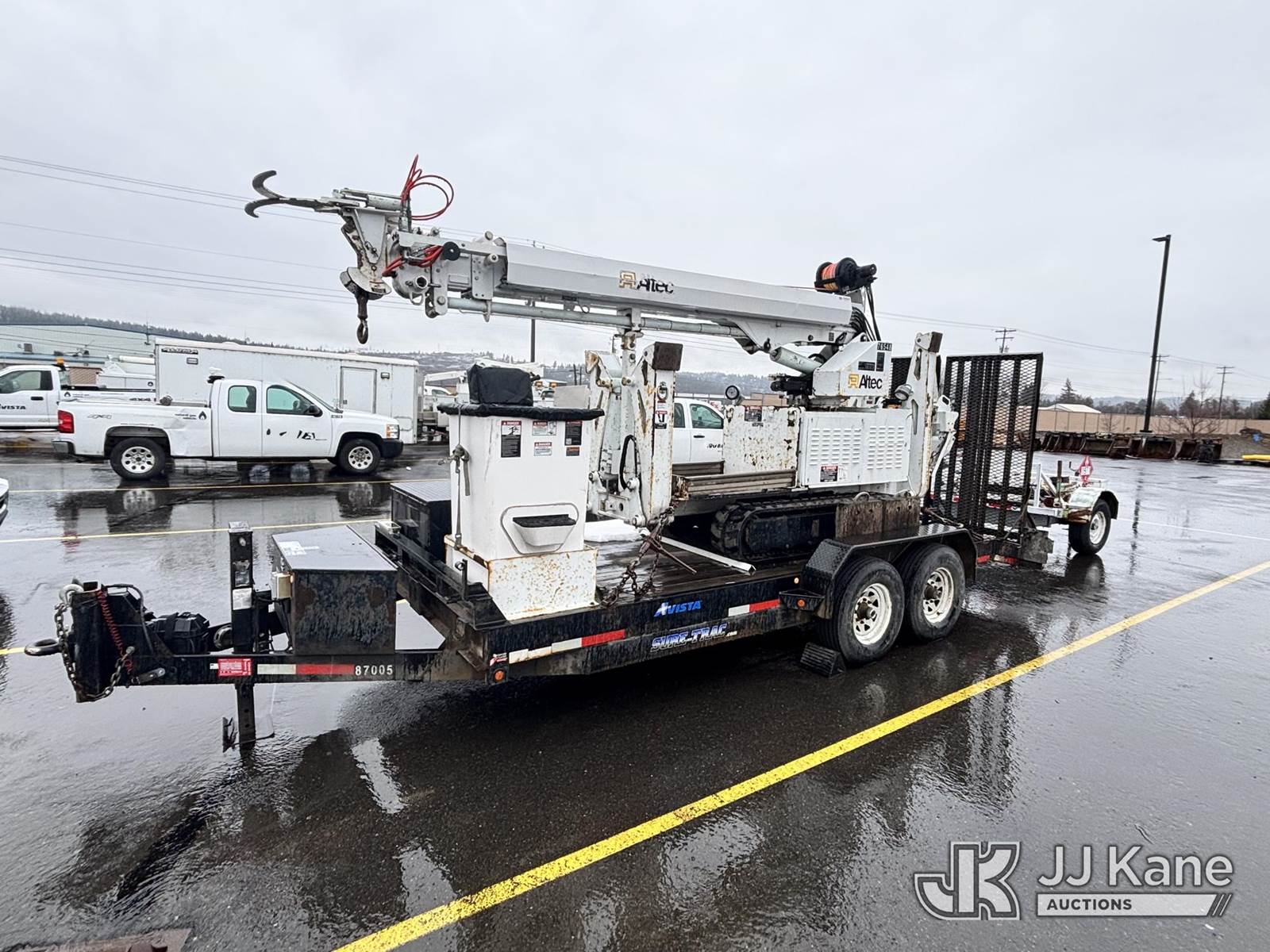 Altec DB37, 3,800 Lb Digger Derrick s/n 1209ET0137, with 37 ft. sheave height, heel winch, pole guides, wireless remote, pin-on bucket, mounted on 2010 Backyard Digger Derrick, Kubota diesel, Hydrostatic, with rubber tracks, four hydraulic outriggers, hydraulic tool lines, Sells With Support Trailer, ID 1595498.(Equipment & Trailer Price Will Be Split Out On Invoice To Reflect 80/20, Equipment To Trailer Price Ratio For Tax Purposes.) (Runs, Moves & Operates) (Reads 878 hours) NOTE: This unit is being sold AS IS/WHERE IS via Timed Auction and is located in Post Falls, ID. Inspection & preview days for this unit are by appointment only; please contact us at contact@jjkane.com or 84-Go-JJKane for more details. (Missing manuals, See Auction Company for Manufacturers Information to obtain manuals) (Buyer is responsible for removal. Assistance by consignor or JJ Kane Auctions is not assured.)