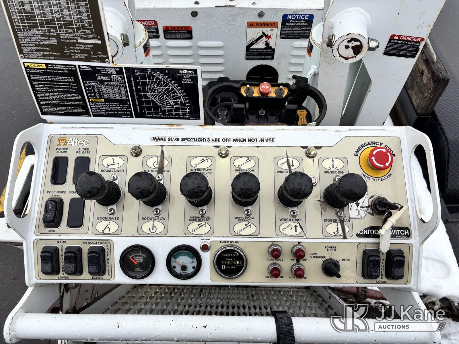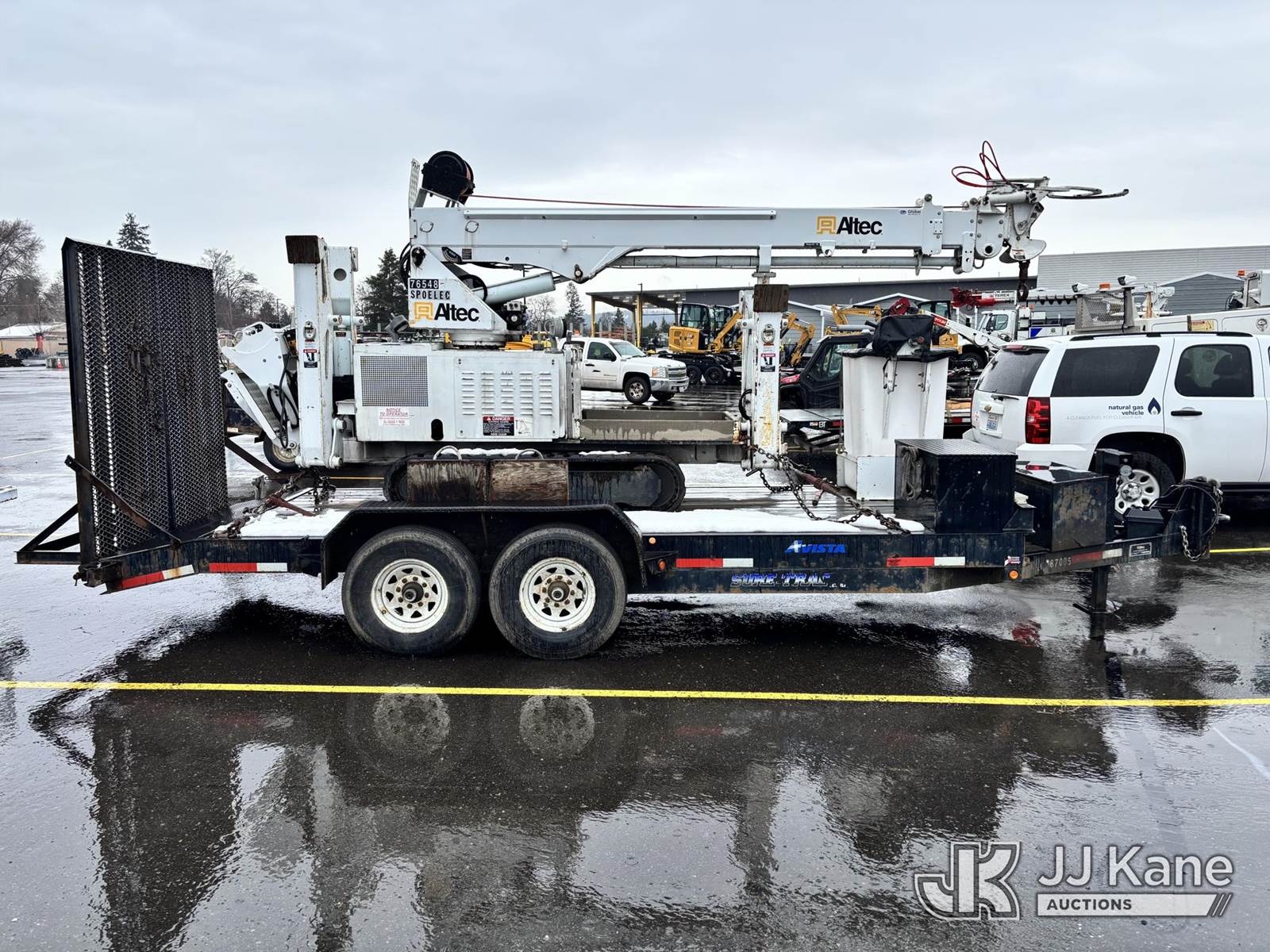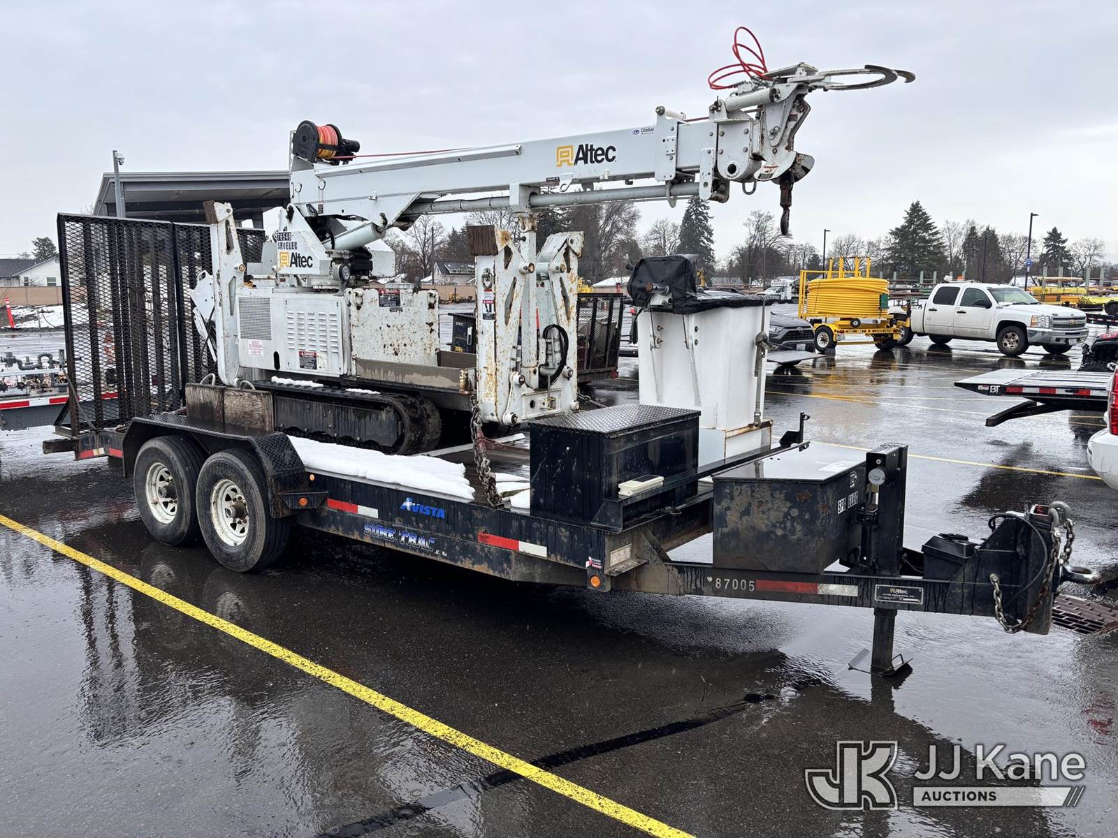 Altec DB37, 3,800 Lb Digger Derrick s/n 1209ET0137, with 37 ft. sheave height, heel winch, pole guides, wireless remote, pin-on bucket, mounted on 2010 Backyard Digger Derrick, Kubota diesel, Hydrostatic, with rubber tracks, four hydraulic outriggers, hydraulic tool lines, Sells With Support Trailer, ID 1595498.(Equipment & Trailer Price Will Be Split Out On Invoice To Reflect 80/20, Equipment To Trailer Price Ratio For Tax Purposes.) (Runs, Moves & Operates) (Reads 878 hours) NOTE: This unit is being sold AS IS/WHERE IS via Timed Auction and is located in Post Falls, ID. Inspection & preview days for this unit are by appointment only; please contact us at contact@jjkane.com or 84-Go-JJKane for more details. (Missing manuals, See Auction Company for Manufacturers Information to obtain manuals) (Buyer is responsible for removal. Assistance by consignor or JJ Kane Auctions is not assured.)