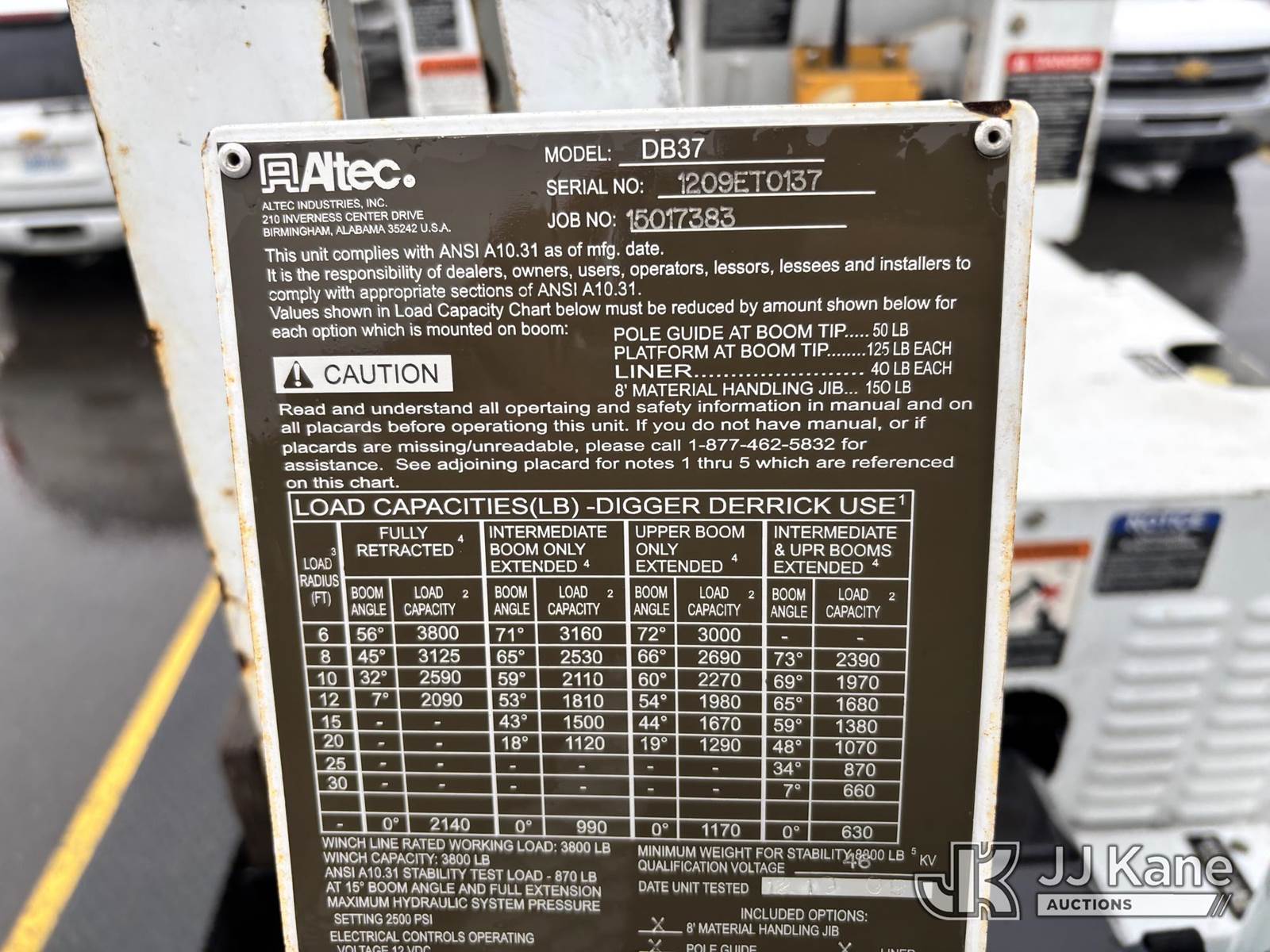 2010 Altec DB37, 3,800 Lb Digger Derrick