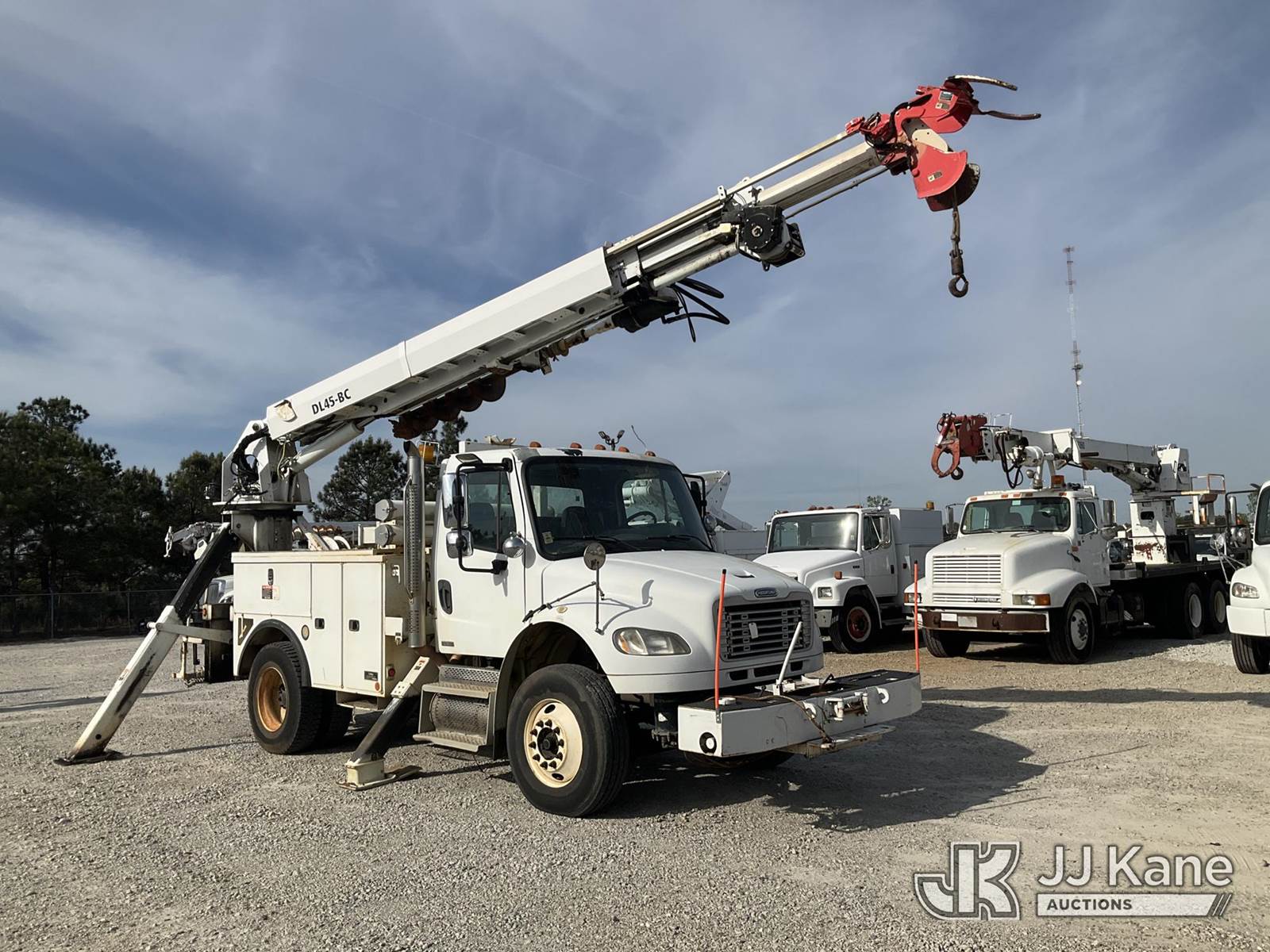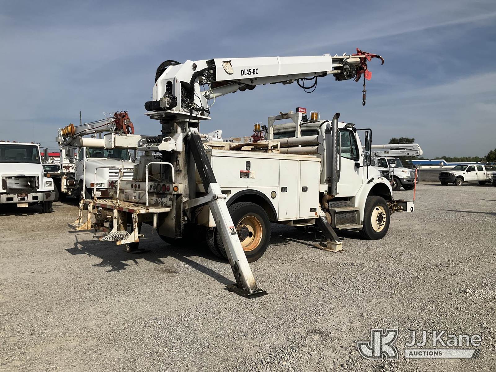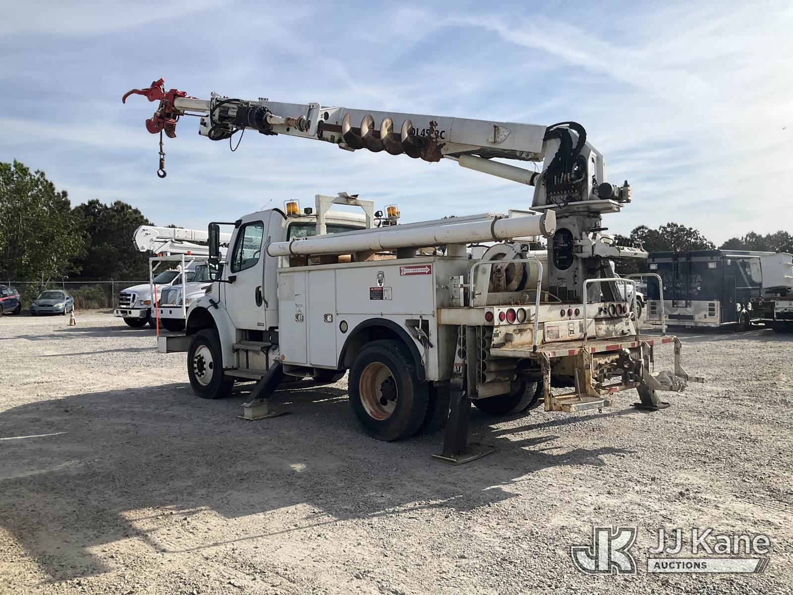 Altec DL45-BC, 19,820 Lb Digger Derrick s/n 0310DU0894, with 45ft sheave height, 2spd digger, pole guides, tip winch, corner mounted on 2010 Freightliner M2 106 Utility Truck, 8.3L 4X2, DIESEL, Auto, A/C, with front winch, (122,442 miles) (Runs, Moves & Upper Operates) This is a Titled Item NOTE: This unit is being sold AS IS/WHERE IS via Timed Auction and is located in Villa Rica, GA. Inspection & preview days for this unit are the 2 business days prior to the first day of items closing for this auction, item is located at 100 Liberty Rd Villa Rica, GA 30180 and hours of operations are 8a-4p. For pre-sale questions, please contact Office Staff @ (470) 590-8453. (Manuals provided in cab) (Buyer is responsible for removal. Assistance by consignor or JJ Kane Auctions is not assured.)
