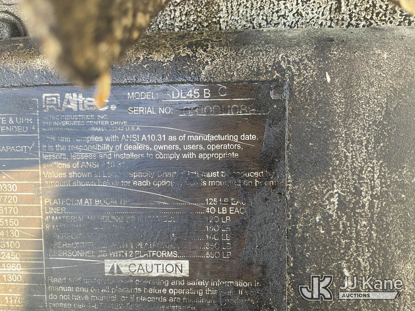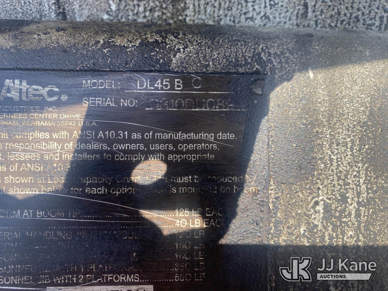 2010 Altec DL45-BC, 19,820 Lb Digger Derrick