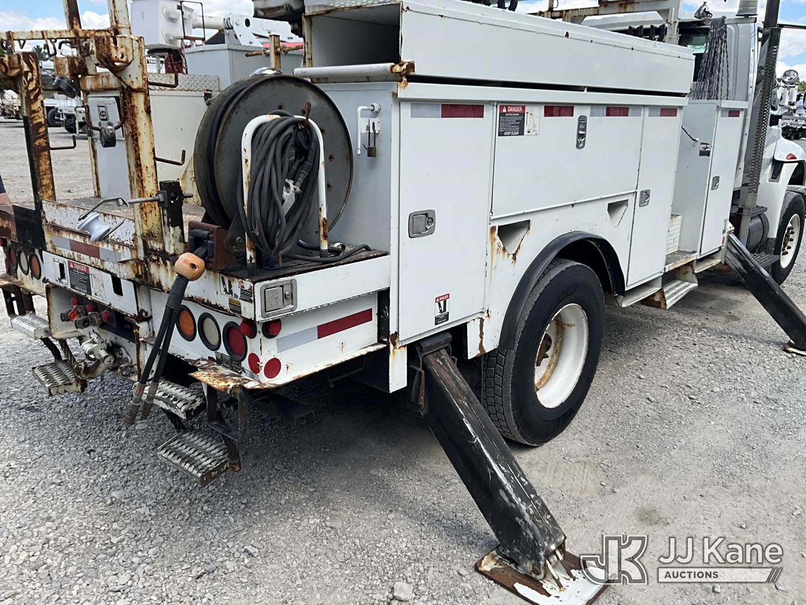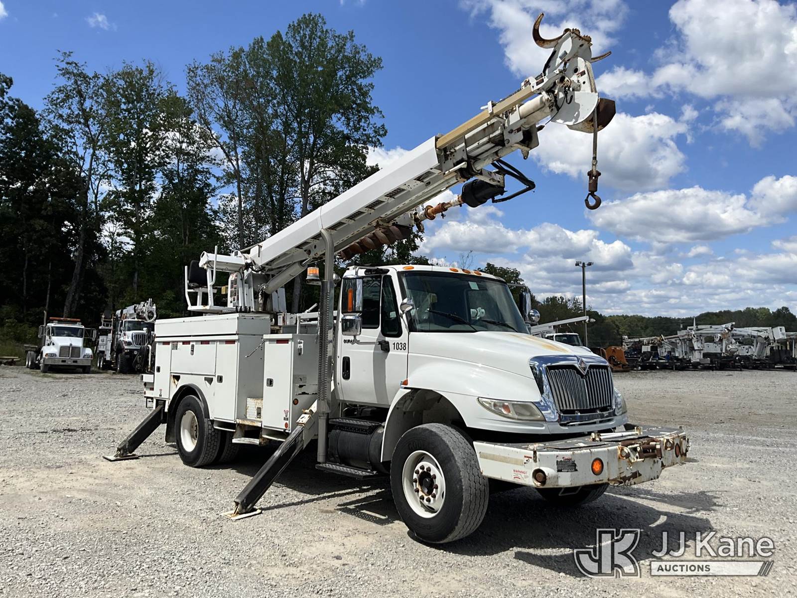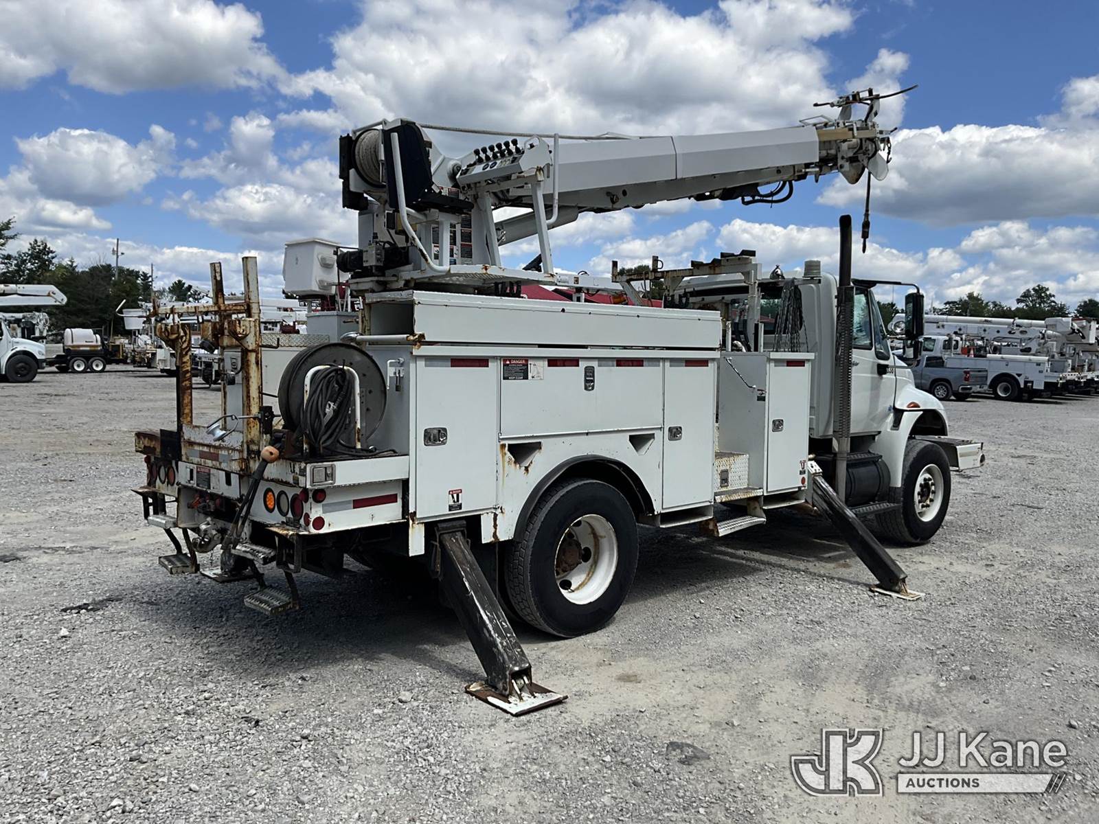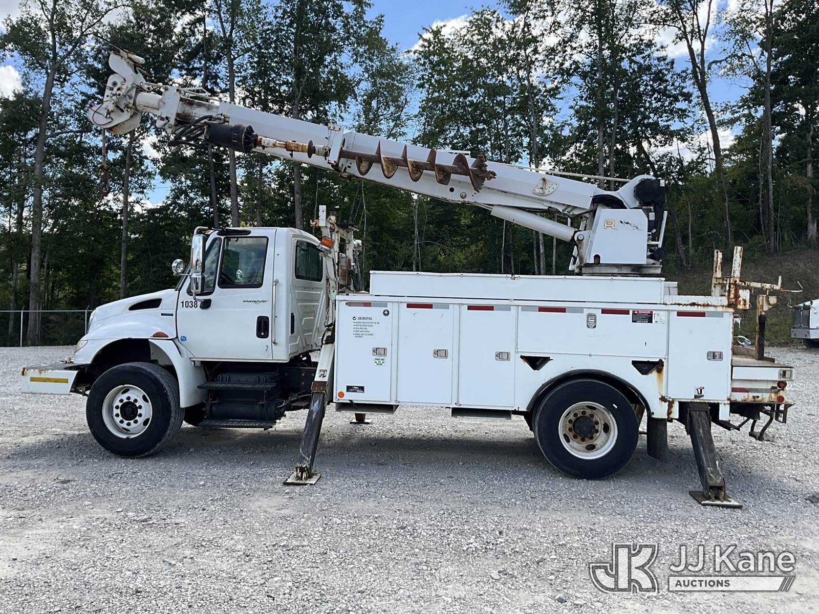 Altec DM45-TR, 26,790 Lb Digger Derrick s/n 0110DV4396, with 45 ft. sheave height, 3 stage hyd. boom, pole grabs, 2 speed digger, heel winch, remote, riding console & 4 hyd. outriggers, rear mounted on 2010 International 4400 Utility Truck, Maxxforce DT diesel, Auto, 4X2, A/C, with front winch, (136,091 miles) (Runs, Moves & Upper Operates) (Reads 10,249 hours) This is a Titled Item NOTE: This unit is being sold AS IS/WHERE IS via Timed Auction and is located in London, KY. For more information & removal arrangements please contact Spencer Owen @ 502-232-2541. Load Out will be by appointment only M-F; must call 24 HRS. in advance. Buyer/Hauler must present copy of paid invoice upon arrival. Purchaser acknowledges ALL lots must be removed within 5 business days of Auction, or a storage fee may be incurred. This item is used and may contain defects that are not immediately detectable. Text description and photos given are meant to be used as a guide only. The conditions are provided by the consignor; you are responsible for inspecting item before bidding. All information provided is believed to be correct but no warranty as such is either intended or implied. All items are sold AS IS - WHERE IS AND WITH ALL FAULTS AND DEFECTS THEREIN. Auctioneer Michael Whitebread / License # 256617 (Missing manuals, See Auction Company for Manufacturers Information to obtain manuals) (Buyer is responsible for removal. Assistance by consignor or JJ Kane Auctioneers is not assured.)