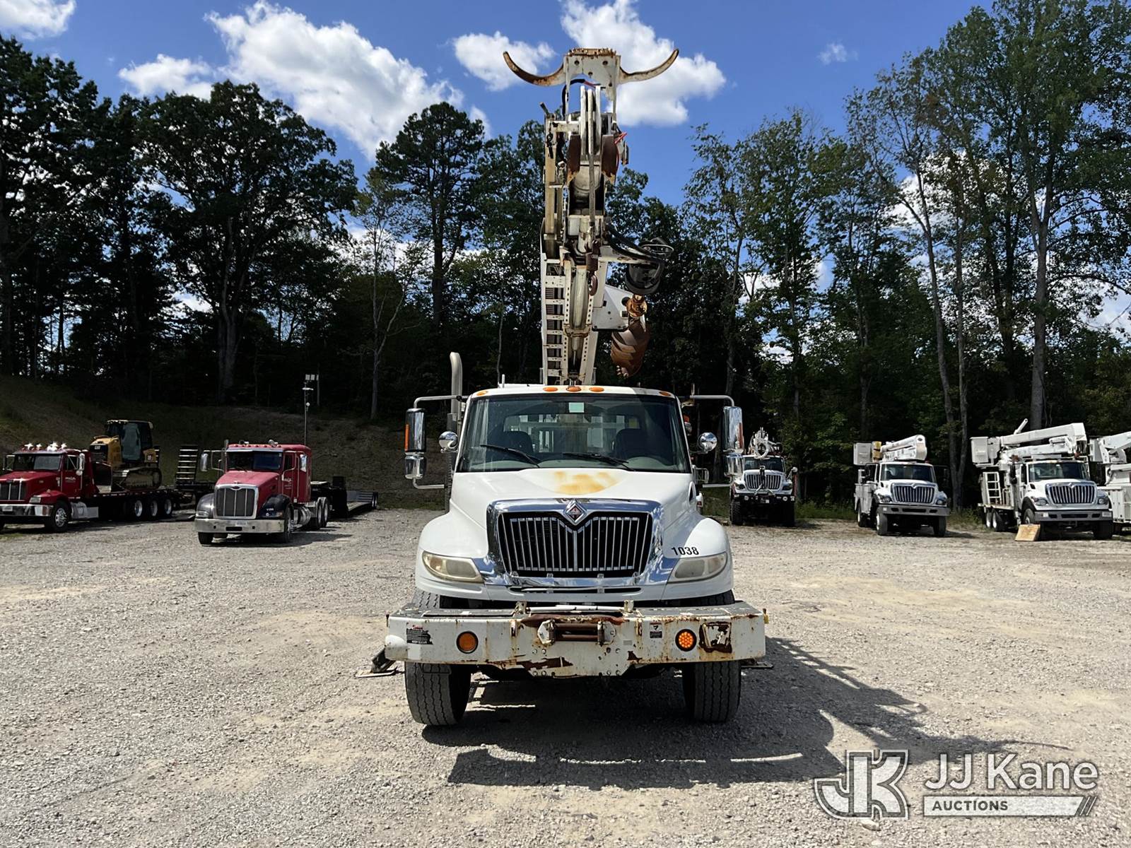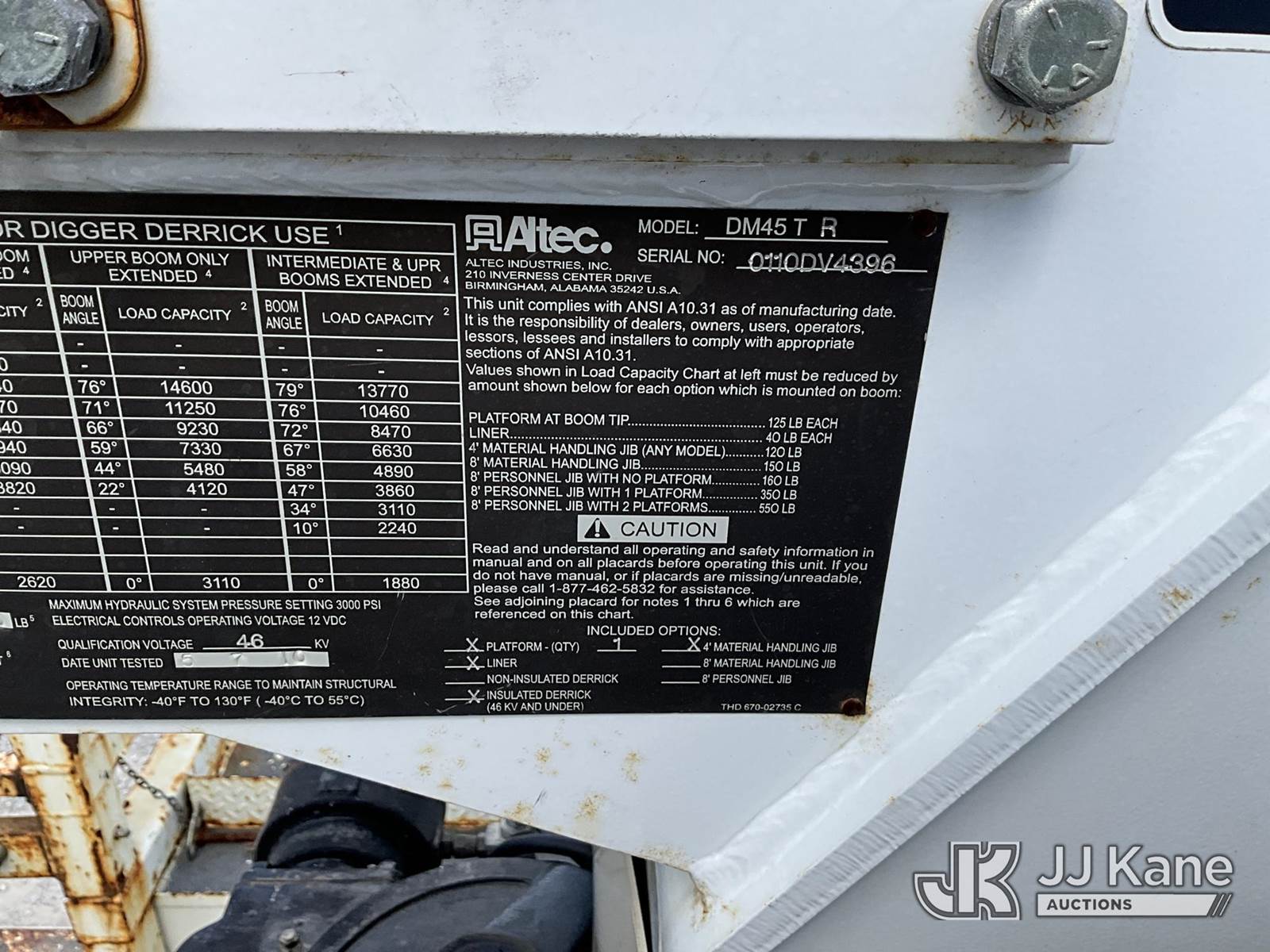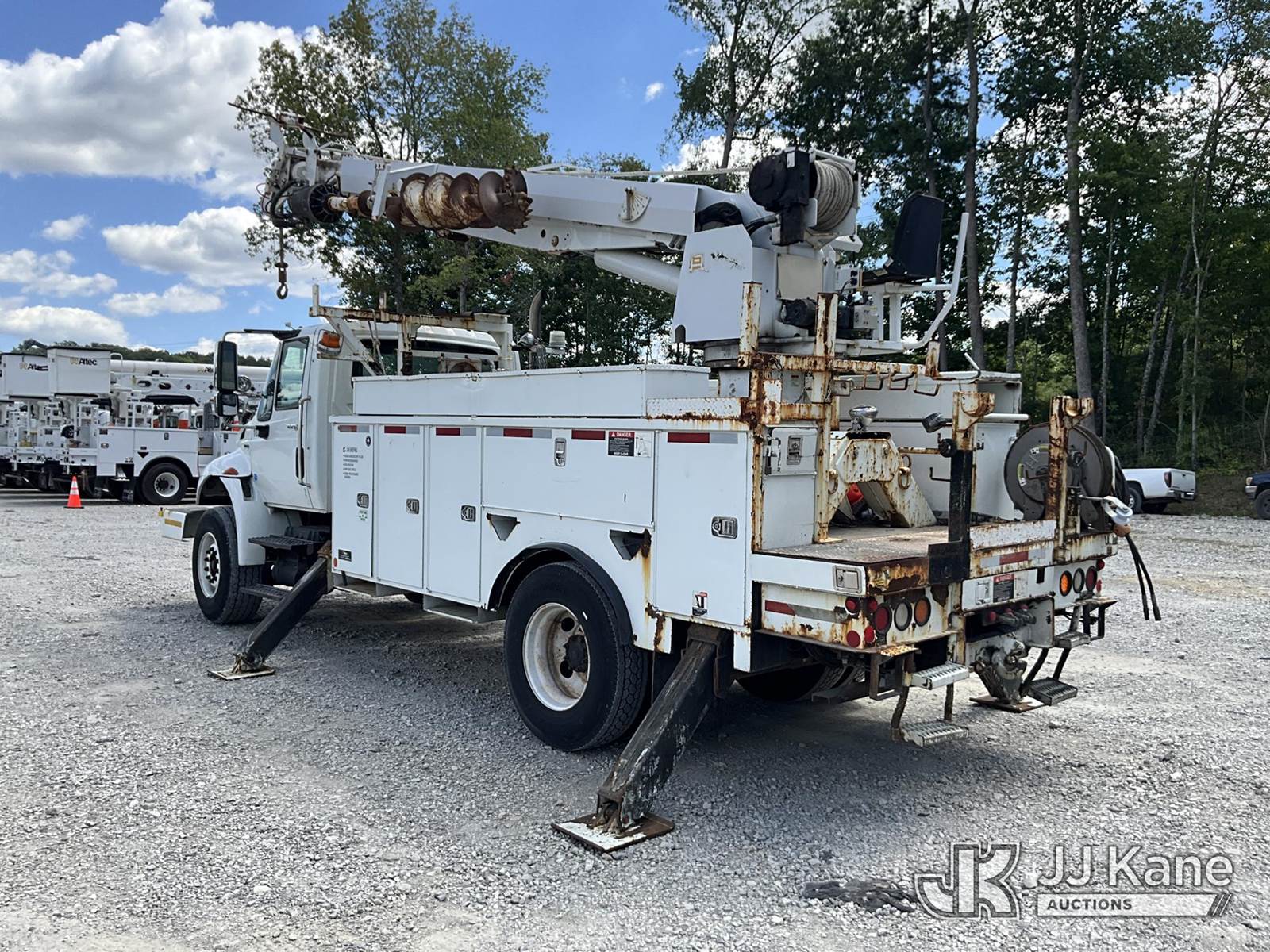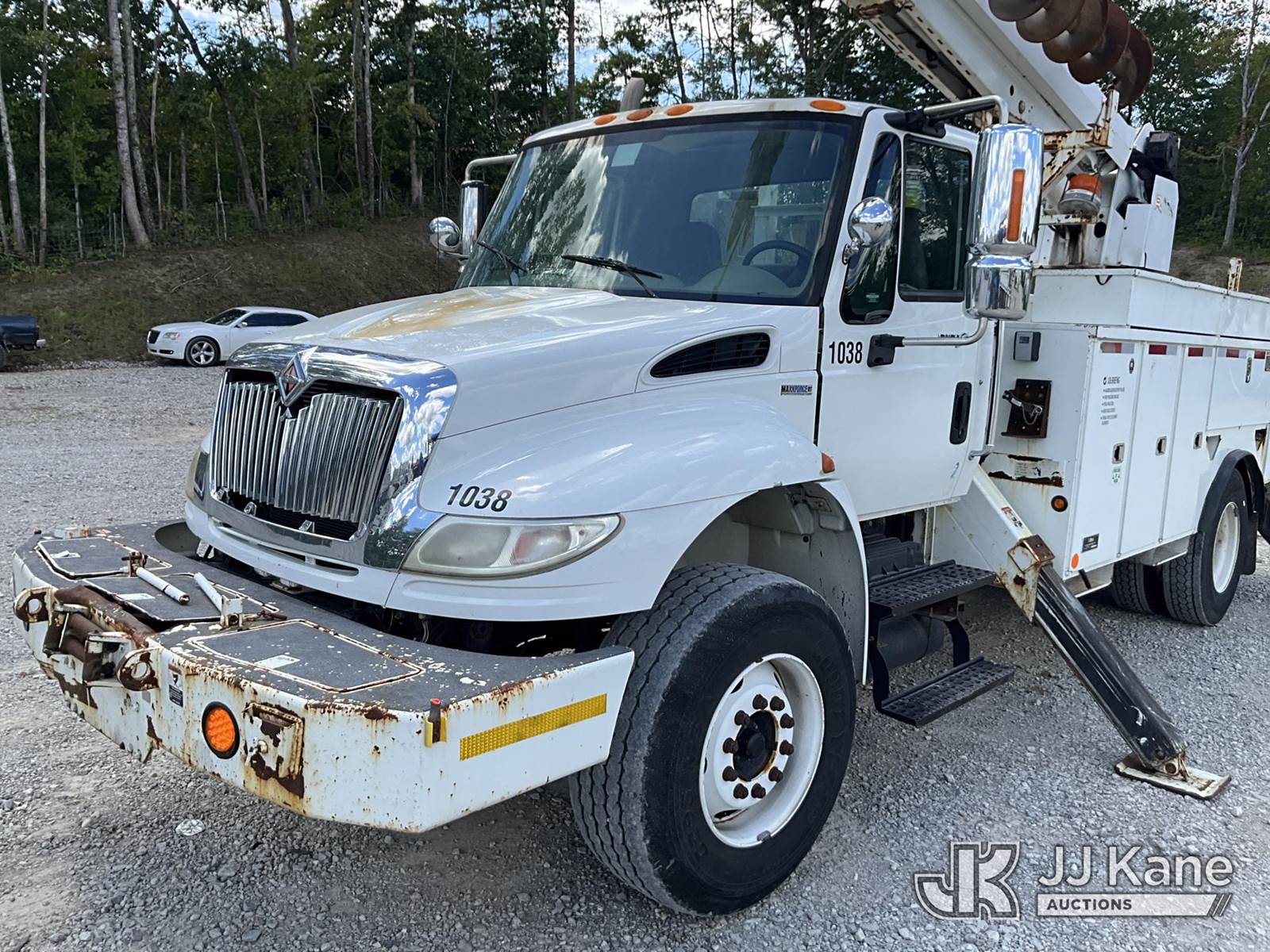 Altec DM45-TR, 26,790 Lb Digger Derrick s/n 0110DV4396, with 45 ft. sheave height, 3 stage hyd. boom, pole grabs, 2 speed digger, heel winch, remote, riding console & 4 hyd. outriggers, rear mounted on 2010 International 4400 Utility Truck, Maxxforce DT diesel, Auto, 4X2, A/C, with front winch, (136,091 miles) (Runs, Moves & Upper Operates) (Reads 10,249 hours) This is a Titled Item NOTE: This unit is being sold AS IS/WHERE IS via Timed Auction and is located in London, KY. For more information & removal arrangements please contact Spencer Owen @ 502-232-2541. Load Out will be by appointment only M-F; must call 24 HRS. in advance. Buyer/Hauler must present copy of paid invoice upon arrival. Purchaser acknowledges ALL lots must be removed within 5 business days of Auction, or a storage fee may be incurred. This item is used and may contain defects that are not immediately detectable. Text description and photos given are meant to be used as a guide only. The conditions are provided by the consignor; you are responsible for inspecting item before bidding. All information provided is believed to be correct but no warranty as such is either intended or implied. All items are sold AS IS - WHERE IS AND WITH ALL FAULTS AND DEFECTS THEREIN. Auctioneer Michael Whitebread / License # 256617 (Missing manuals, See Auction Company for Manufacturers Information to obtain manuals) (Buyer is responsible for removal. Assistance by consignor or JJ Kane Auctioneers is not assured.)