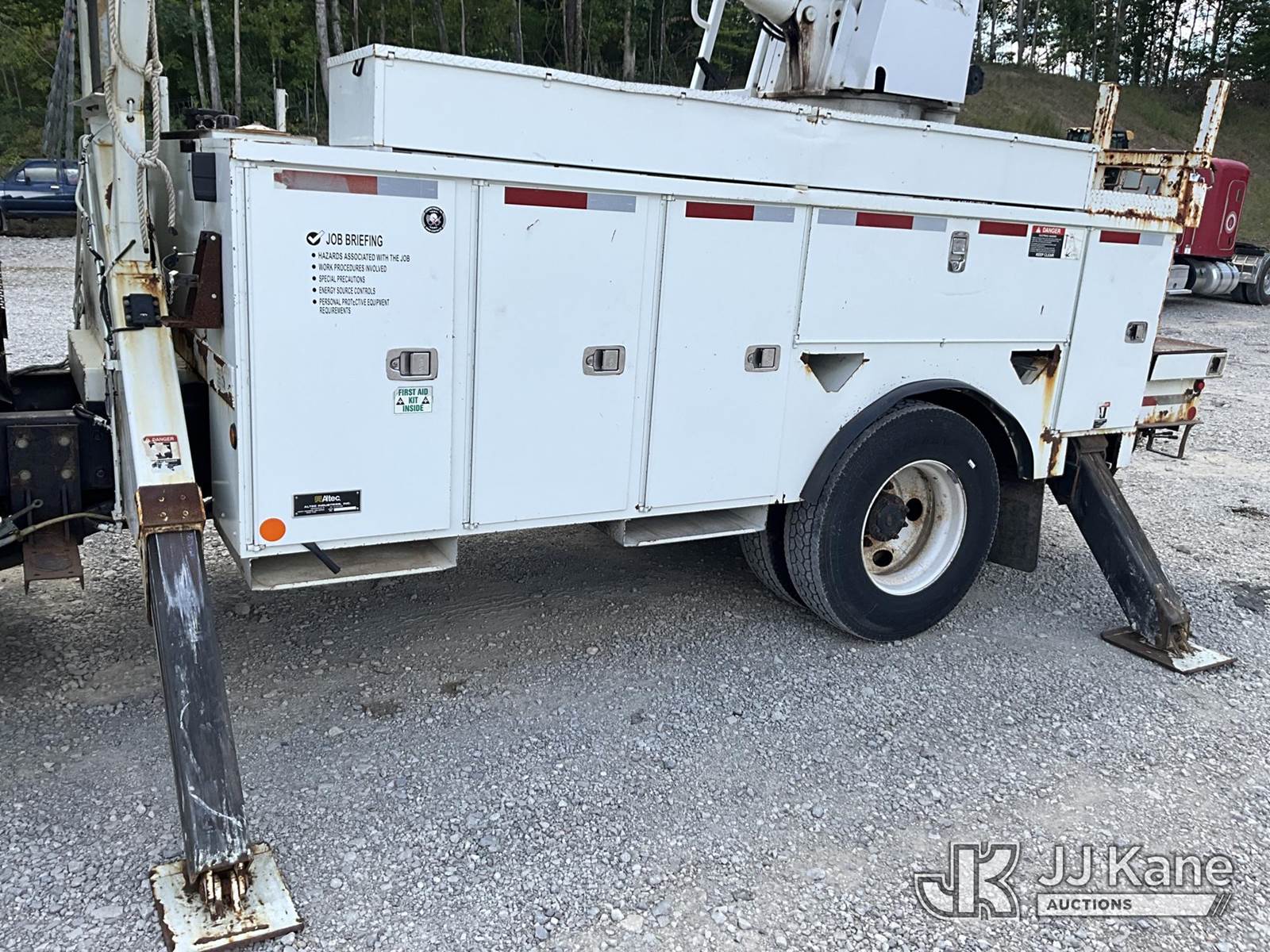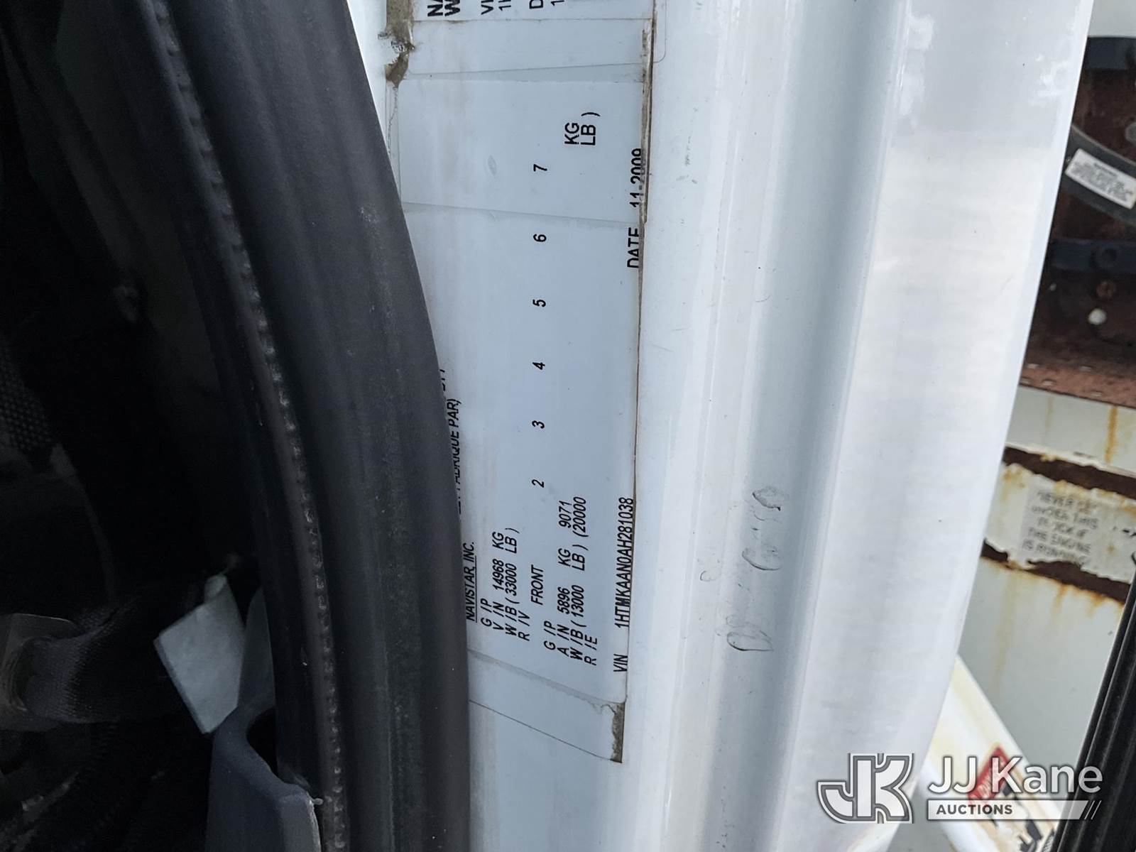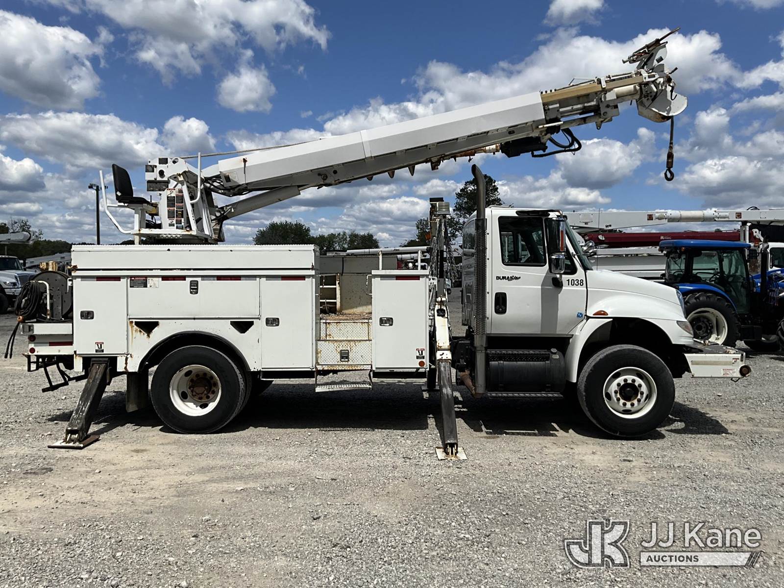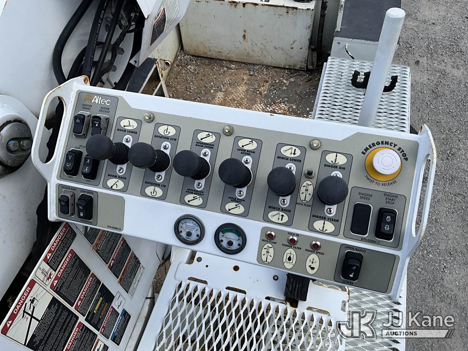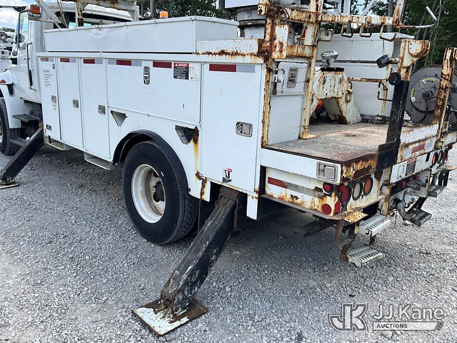 Altec DM45-TR, 26,790 Lb Digger Derrick s/n 0110DV4396, with 45 ft. sheave height, 3 stage hyd. boom, pole grabs, 2 speed digger, heel winch, remote, riding console & 4 hyd. outriggers, rear mounted on 2010 International 4400 Utility Truck, Maxxforce DT diesel, Auto, 4X2, A/C, with front winch, (136,091 miles) (Runs, Moves & Upper Operates) (Reads 10,249 hours) This is a Titled Item NOTE: This unit is being sold AS IS/WHERE IS via Timed Auction and is located in London, KY. For more information & removal arrangements please contact Spencer Owen @ 502-232-2541. Load Out will be by appointment only M-F; must call 24 HRS. in advance. Buyer/Hauler must present copy of paid invoice upon arrival. Purchaser acknowledges ALL lots must be removed within 5 business days of Auction, or a storage fee may be incurred. This item is used and may contain defects that are not immediately detectable. Text description and photos given are meant to be used as a guide only. The conditions are provided by the consignor; you are responsible for inspecting item before bidding. All information provided is believed to be correct but no warranty as such is either intended or implied. All items are sold AS IS - WHERE IS AND WITH ALL FAULTS AND DEFECTS THEREIN. Auctioneer Michael Whitebread / License # 256617 (Missing manuals, See Auction Company for Manufacturers Information to obtain manuals) (Buyer is responsible for removal. Assistance by consignor or JJ Kane Auctioneers is not assured.)