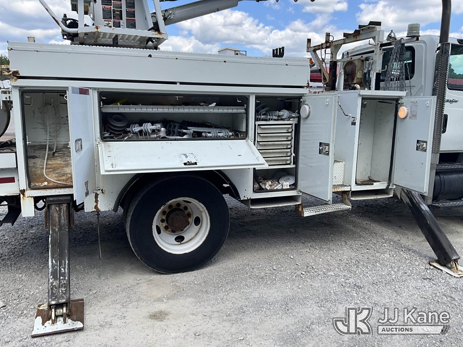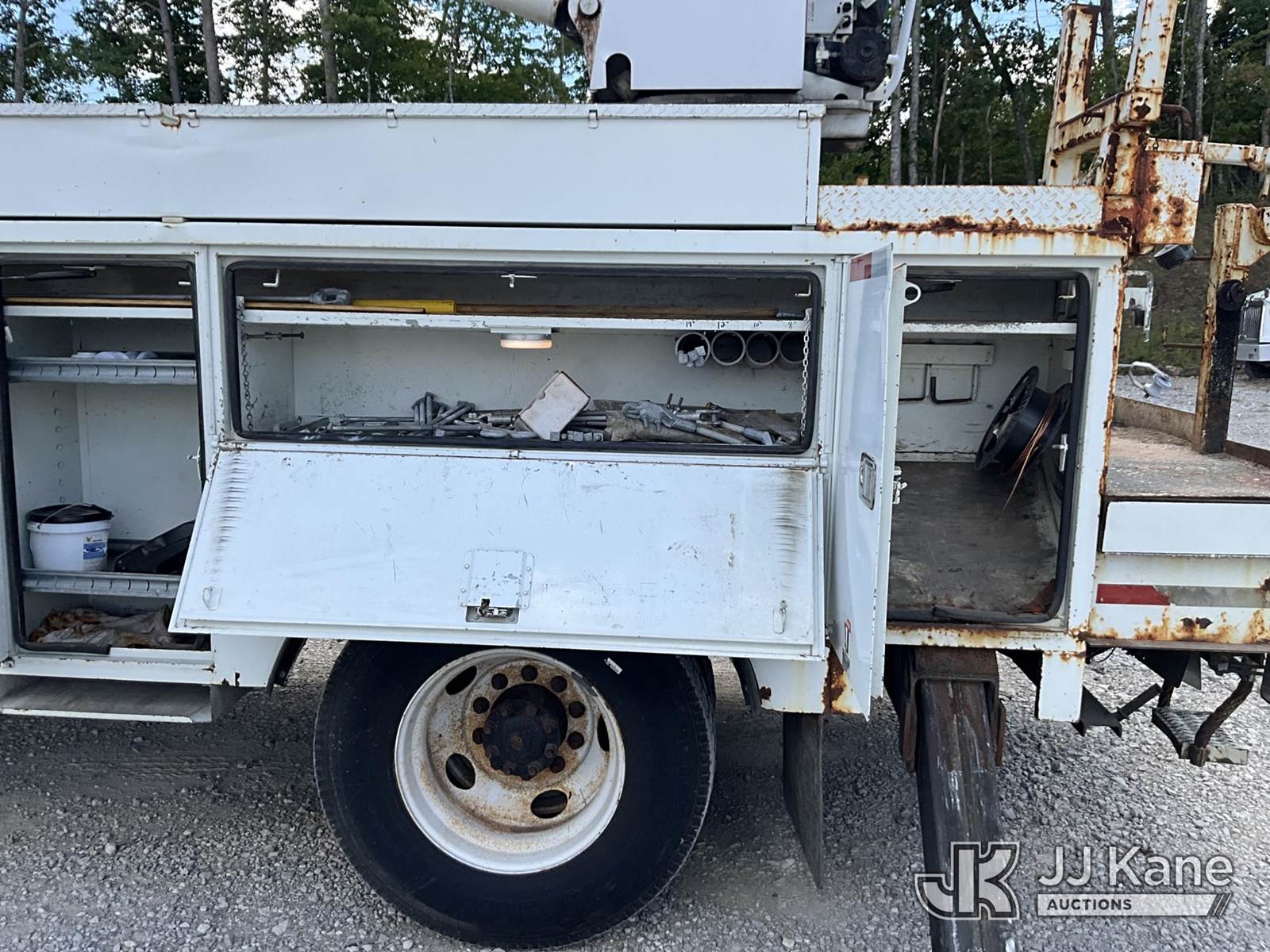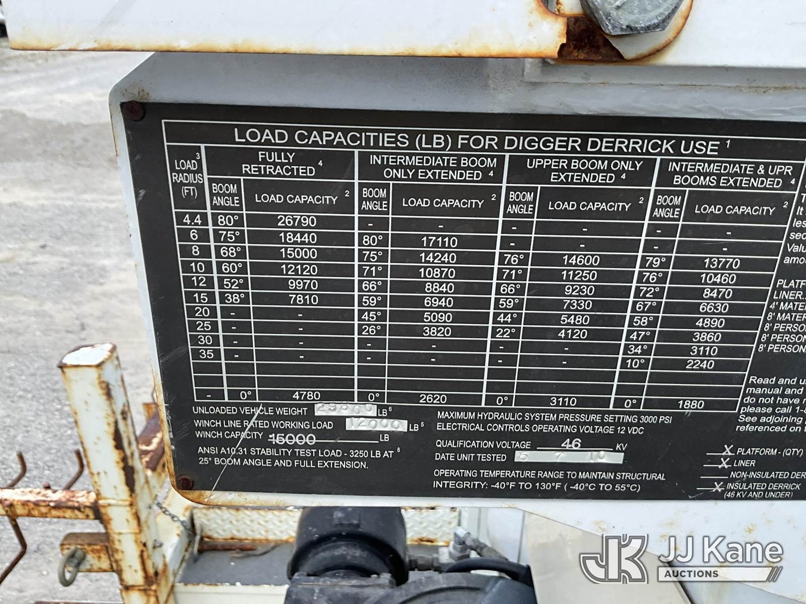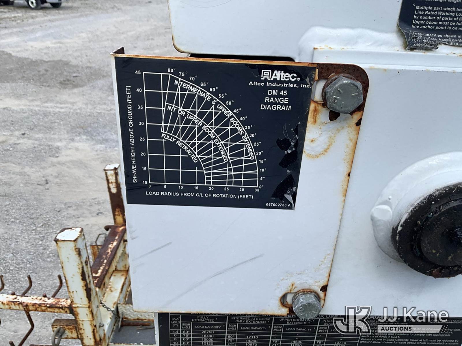 Altec DM45-TR, 26,790 Lb Digger Derrick s/n 0110DV4396, with 45 ft. sheave height, 3 stage hyd. boom, pole grabs, 2 speed digger, heel winch, remote, riding console & 4 hyd. outriggers, rear mounted on 2010 International 4400 Utility Truck, Maxxforce DT diesel, Auto, 4X2, A/C, with front winch, (136,091 miles) (Runs, Moves & Upper Operates) (Reads 10,249 hours) This is a Titled Item NOTE: This unit is being sold AS IS/WHERE IS via Timed Auction and is located in London, KY. For more information & removal arrangements please contact Spencer Owen @ 502-232-2541. Load Out will be by appointment only M-F; must call 24 HRS. in advance. Buyer/Hauler must present copy of paid invoice upon arrival. Purchaser acknowledges ALL lots must be removed within 5 business days of Auction, or a storage fee may be incurred. This item is used and may contain defects that are not immediately detectable. Text description and photos given are meant to be used as a guide only. The conditions are provided by the consignor; you are responsible for inspecting item before bidding. All information provided is believed to be correct but no warranty as such is either intended or implied. All items are sold AS IS - WHERE IS AND WITH ALL FAULTS AND DEFECTS THEREIN. Auctioneer Michael Whitebread / License # 256617 (Missing manuals, See Auction Company for Manufacturers Information to obtain manuals) (Buyer is responsible for removal. Assistance by consignor or JJ Kane Auctioneers is not assured.)