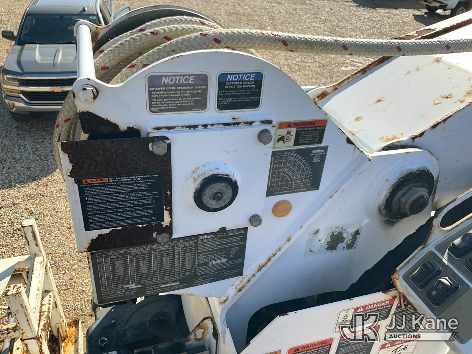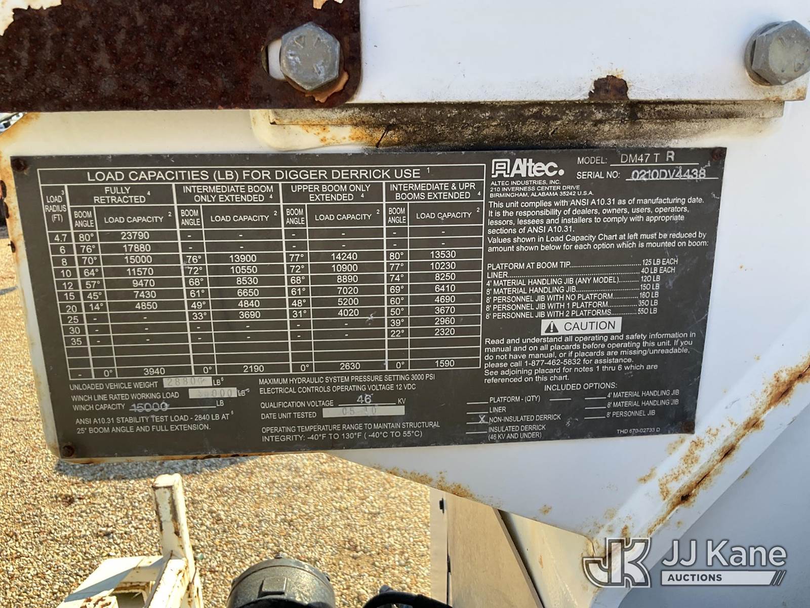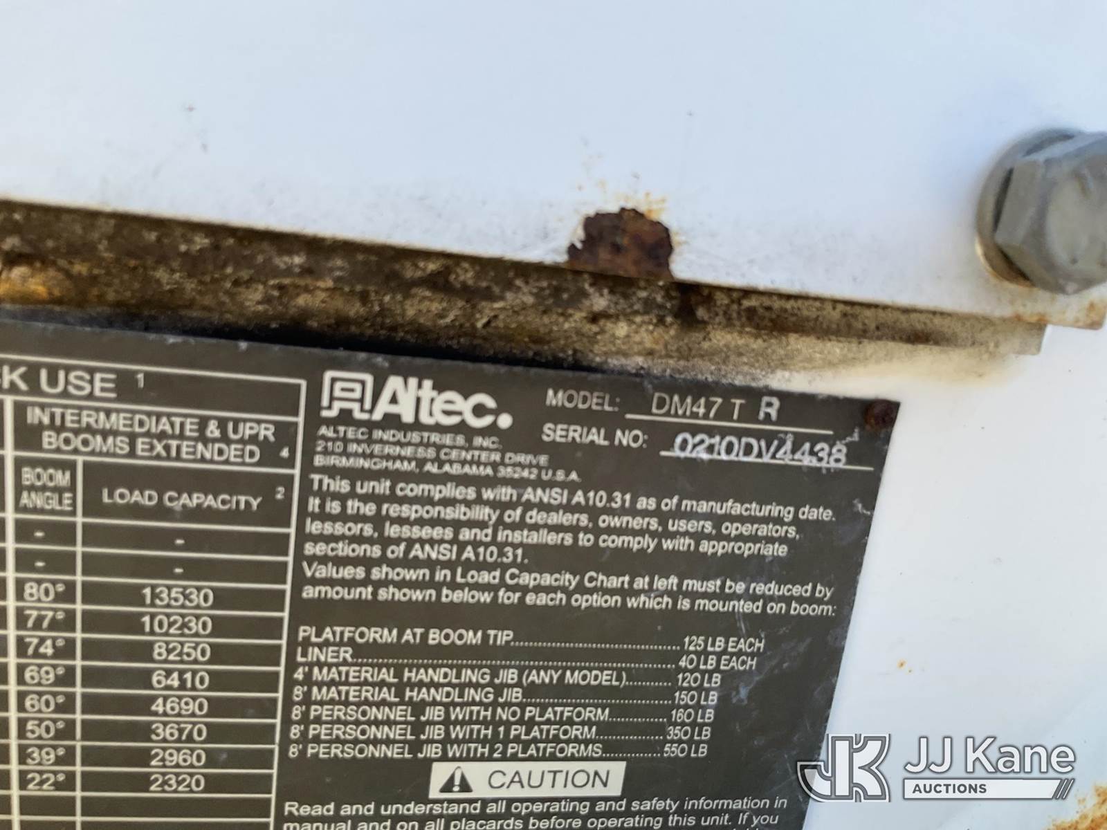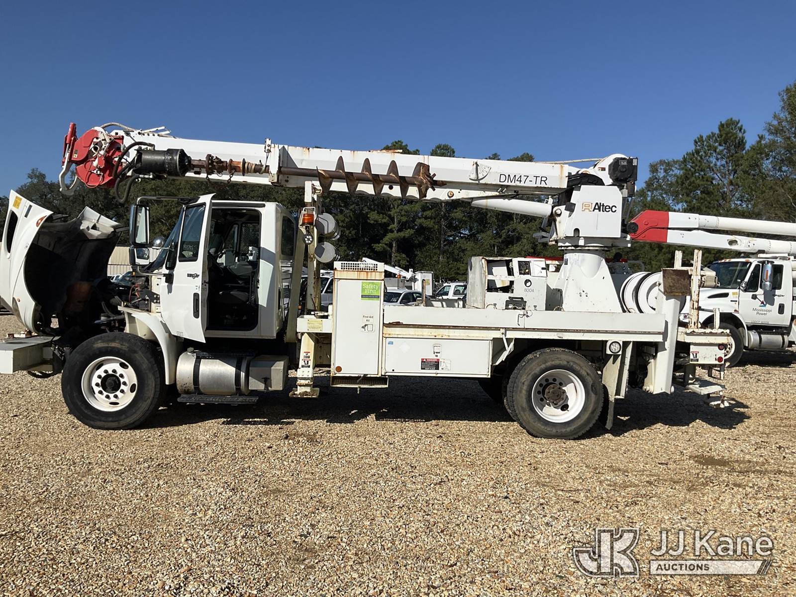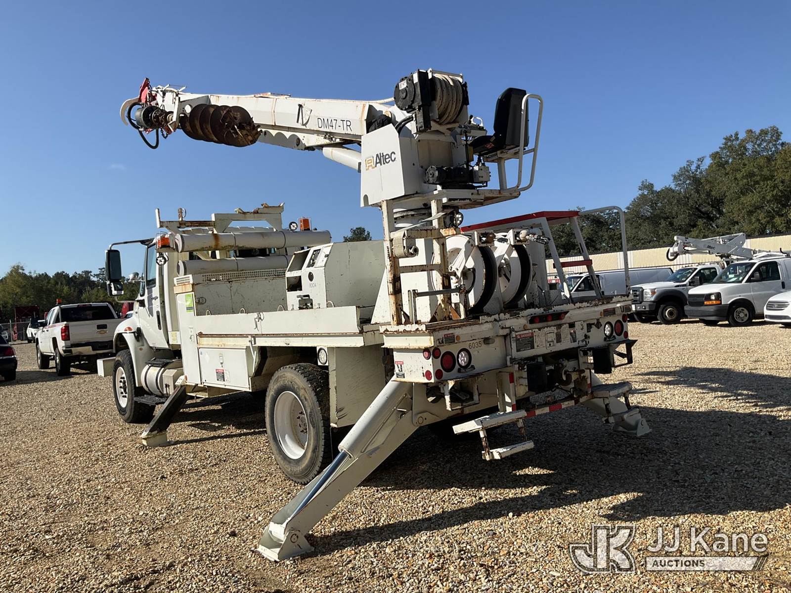 Altec DM47-TR, 23,790 Lb Digger Derrick s/n 0210DV4438, with 47ft sheave height, 2spd digger, pole guides, heel winch, pole claws, 4 hydraulic outriggers & riding console, rear mounted on 2010 International 4400 Flatbed/Utility Truck, 7.6L Auto, diesel, A/C, with front bumper winch and capstan winch, (40,210 miles) (Mississippi Power Unit) (Runs, Moves & Upper Operates) (Boom Raises But Does Not Extend, Check Engine Light On) (Reads 4,131 hours) This is a Titled Item NOTE: This unit is being sold AS IS/WHERE IS via Timed Auction and is located in Robert, LA. Inspection & preview days for this unit are by appointment only; please contact us at contact@jjkane.com or 84-Go-JJKane for more details. License # LA AB-154 (Missing manuals, See Auction Company for Manufacturers Information to obtain manuals) (Buyer is responsible for removal. Assistance by consignor or JJ Kane Auctioneers is not assured.)
