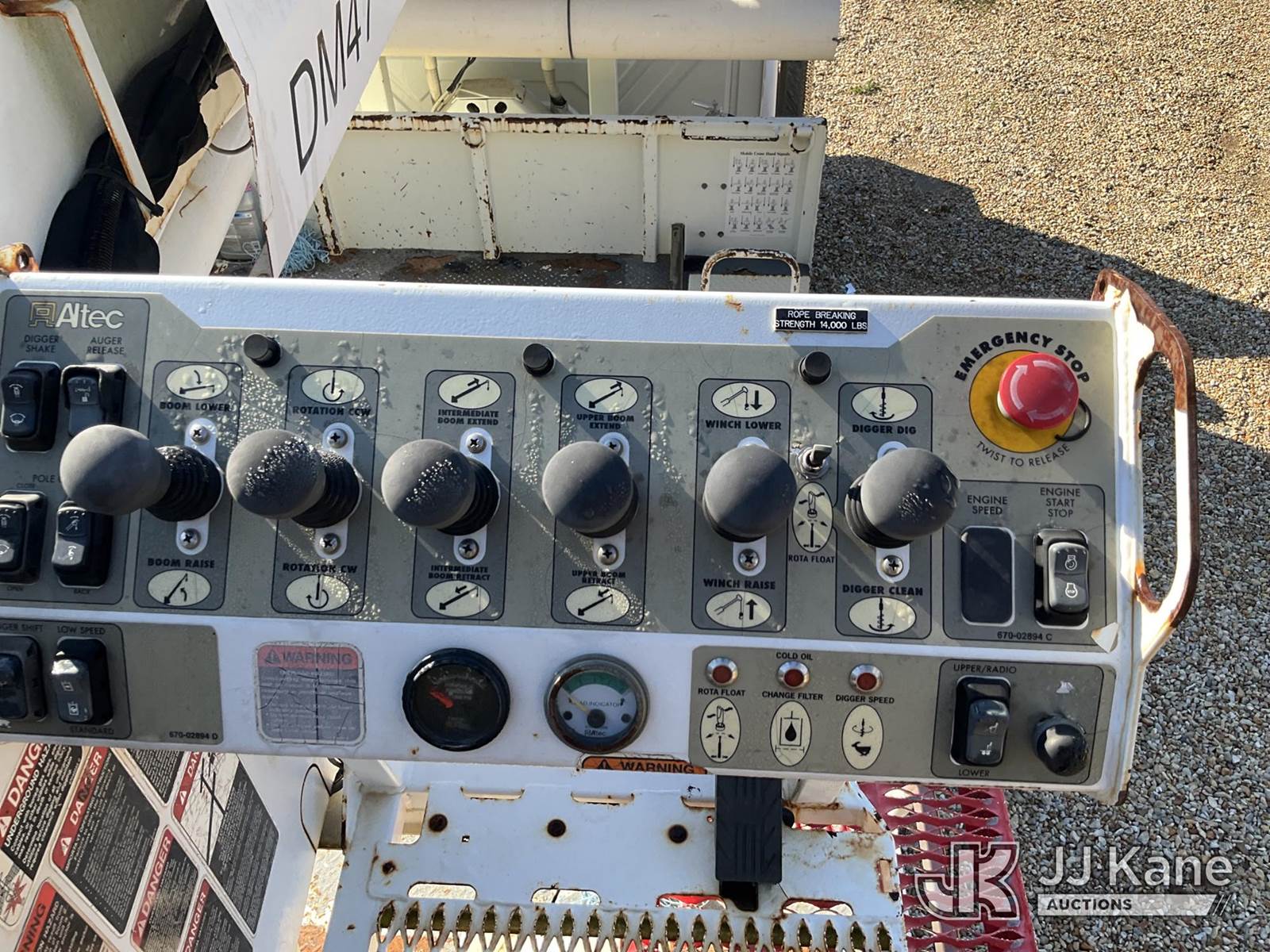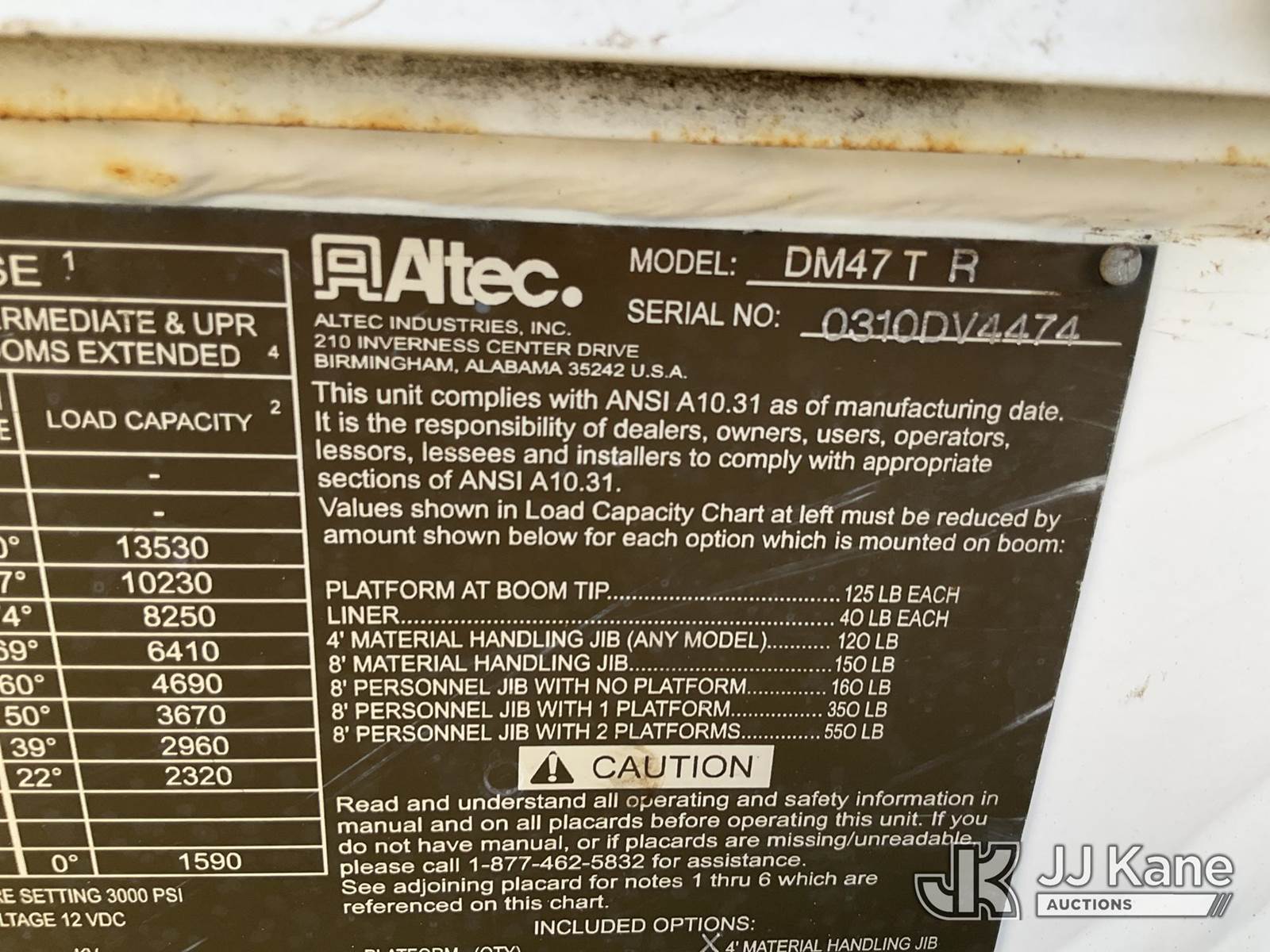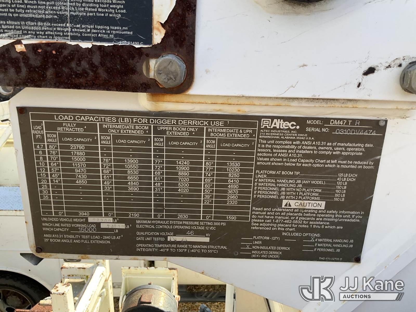 Altec DM47-TR, 23,790 Lb Digger Derrick s/n 0310DV4474, with 47ft sheave height, 2spd digger, pole guides, heel winch & riding console, rear mounted on 2010 International 4400 Flatbed/Utility Truck, 7.6L Auto, 4X2, diesel, A/C, with front winch, (71,835 miles) (Mississippi Power Unit) (Runs & Moves) (Outriggers Do Not Deploy, Upper Condition Unknown) (Reads 5,600 hours) This is a Titled Item NOTE: This unit is being sold AS IS/WHERE IS via Timed Auction and is located in Robert, LA. Inspection & preview days for this unit are by appointment only; please contact us at contact@jjkane.com or 84-Go-JJKane for more details. License # LA AB-154 (Manuals provided in cab) (Buyer is responsible for removal. Assistance by consignor or JJ Kane Auctioneers is not assured.)