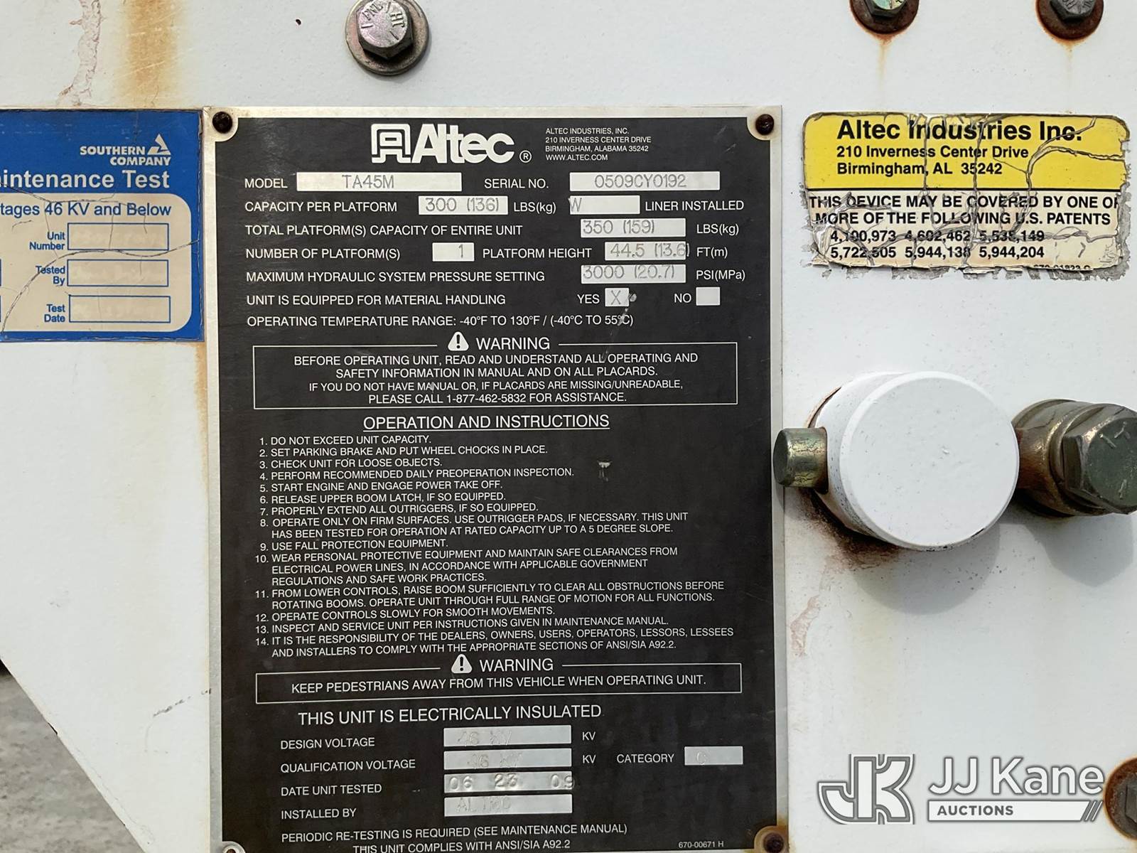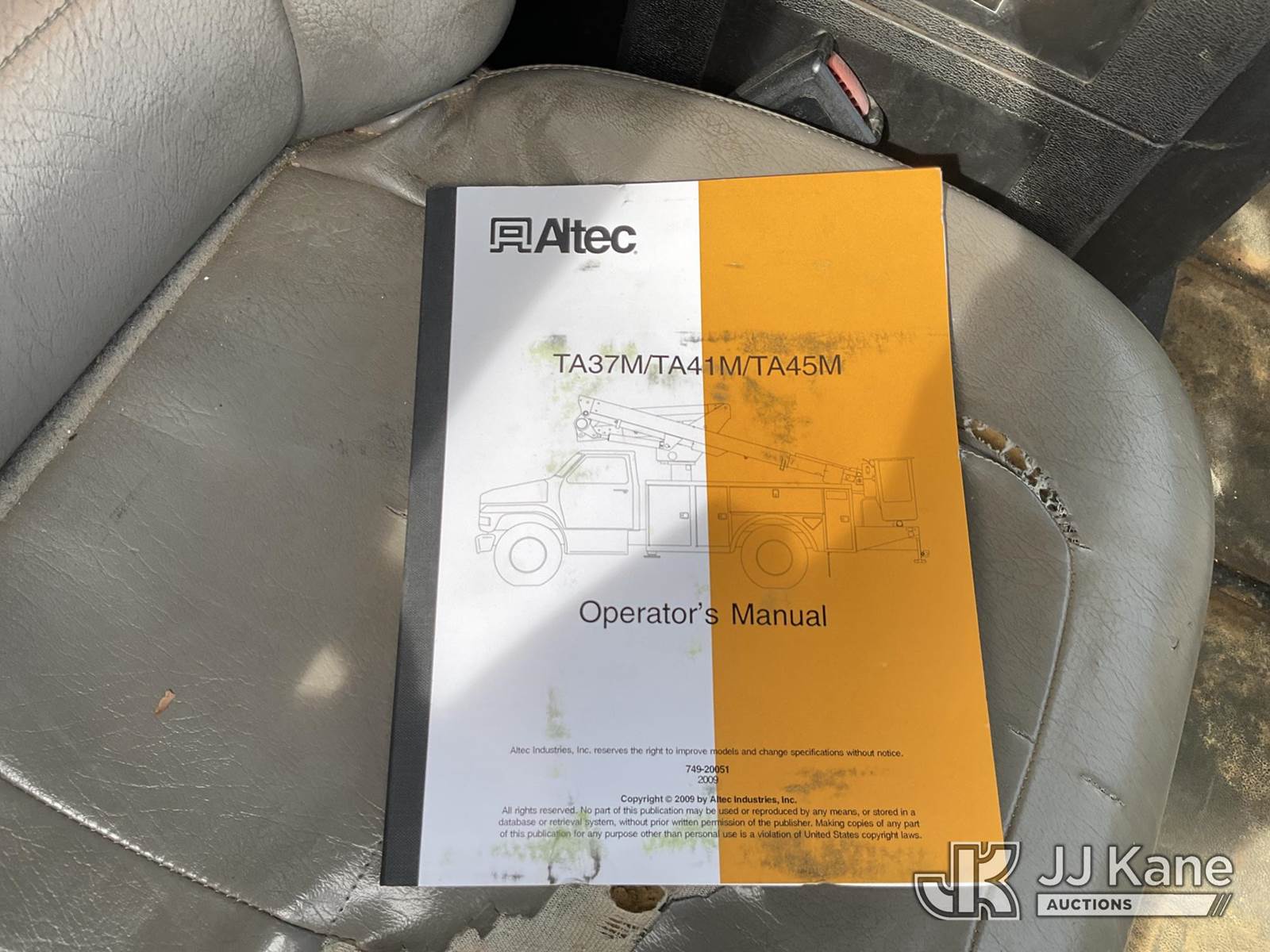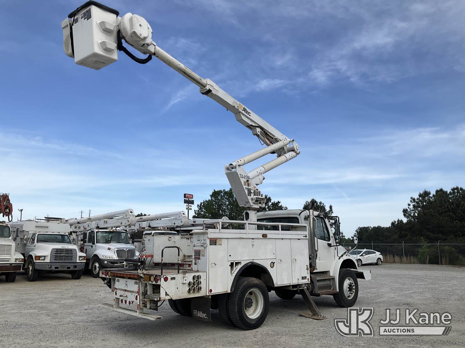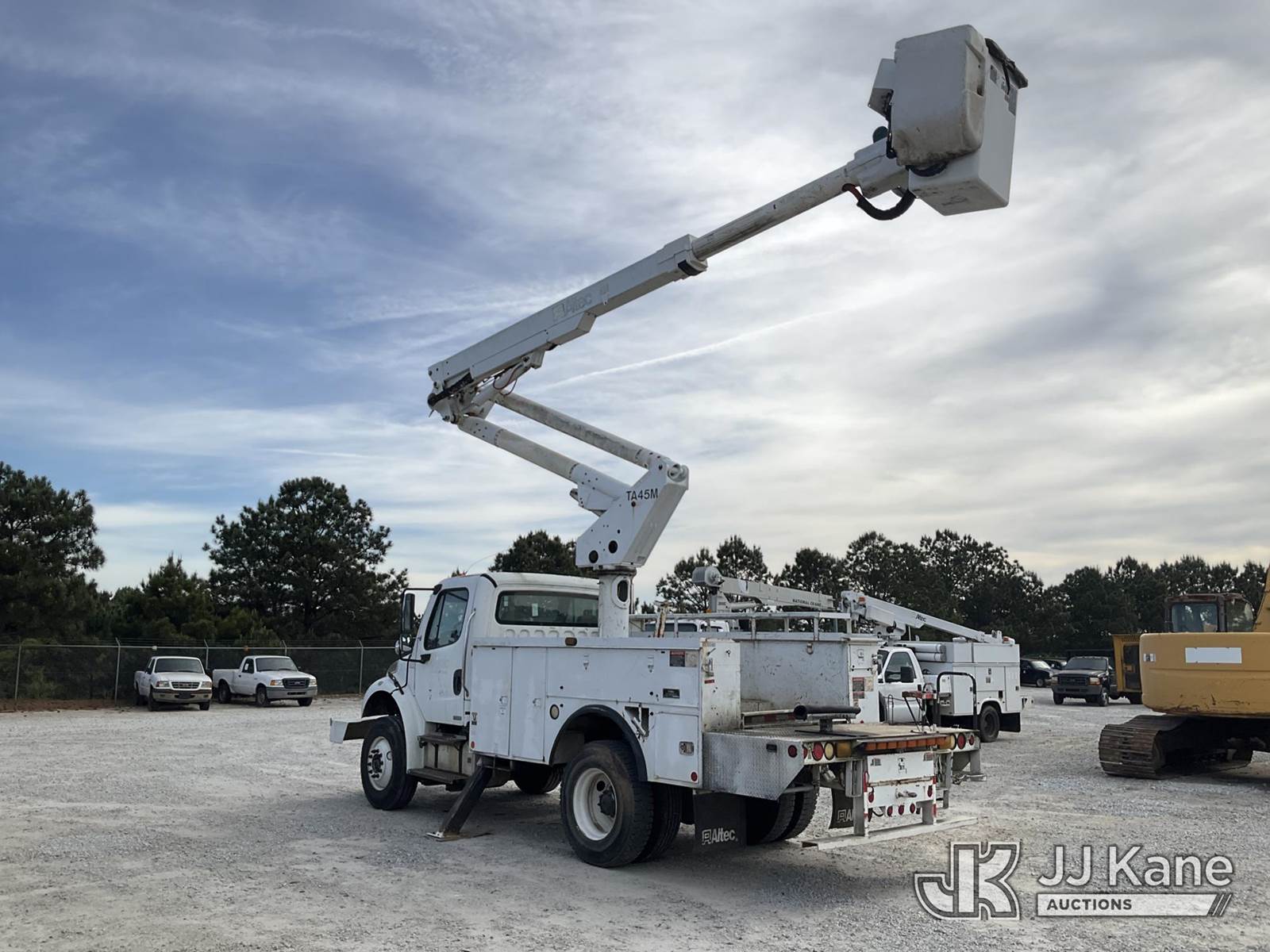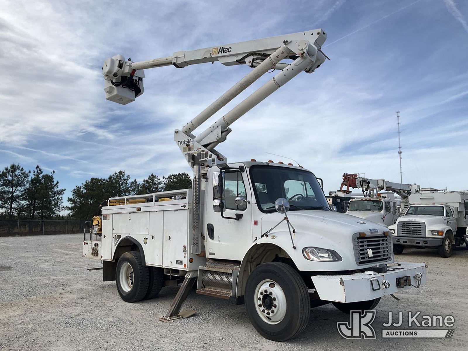 Altec TA45M, 50 ft, Articulating & Telescopic Bucket s/n 0509CY0192, with single-man bucket, mounted behind cab on 2010 Freightliner M2 106 Utility Truck, 6.7L 4X2, DIESEL, Auto, A/C, with front winch, (291,728 miles) (Runs, Moves & Upper Operates) (Air Brake Issues, Transmission Issues The manufacturer has notified JJ Kane that this equipment is subject to an open recall. CSN 643 TA Winch Brake Inspection The equipment should not be operated until this is addressed. Buyer is responsible for reviewing the recall notice and contacting the manufacturer to schedule the recommended corrective actions. Associated costs may be covered by the manufacturer in some cases.) (Reads 1,822 hours) This is a Titled Item NOTE: This unit is being sold AS IS/WHERE IS via Timed Auction and is located in Villa Rica, GA. Inspection & preview days for this unit are the 2 business days prior to the first day of items closing for this auction, item is located at 100 Liberty Rd Villa Rica, GA 30180 and hours of operations are 8a-4p. For pre-sale questions, please contact Office Staff @ (470) 590-8453. (Manuals provided in cab) (Buyer is responsible for removal. Assistance by consignor or JJ Kane Auctions is not assured.)