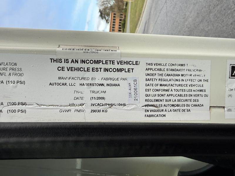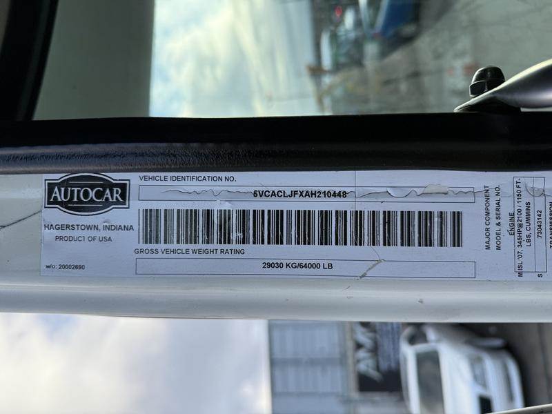 This 2010 Autocar Xpeditor tandem compactor garbage truck is powered by a Cummins ISL 8.9L diesel rated at 345 horsepower and 1,150 lb-ft of torque, paired with an Allison 4500 automatic transmission and 6x4 drivetrain. It is equipped with a Meritor 20,000 lb front axle and 44,000 lb rear axles with a 5.29 ratio, and has a GVWR of approximately 29,030 kg. Additional features include a Telma retarder, hydraulic cab tilt, and backup camera to support daily municipal or fleet operations. Finished in white with a black cloth interior, this truck offers a purpose-built setup suitable for waste management or commercial collection applications. This item is currently OFFSITE. You must register an appointment with our office to schedule an offsite viewing. Appointments must be made a minimum of one business day in advance (and as defined by the days that Repo.com is open for business) before your appointment can be scheduled and confirmed. We may, at our own discretion, instead opt to transport smaller items to Repo.com's main yard for viewing purposes. $78,880.00 plus $375 processing fee, $79,255.00 total payment obligation before taxes. Listing report, warranty, contract commitment cancellation fee, financing available on approved credit (some limitations and exceptions may apply). All above specifications and information is considered to be accurate but is not guaranteed and no opinion or advice is given as to whether this item should be purchased. We do not allow test drives due to theft, fraud, acts of vandalism and undetectable impaired driving. Instead we provide the following benefits: Complimentary Warranty (with options to extend), Limited Money Back Satisfaction Guarantee on Fully Completed Contracts, Contract Commitment Cancellation, and an Open-Ended Sell-Back Option. Ask seller for details or call to confirm listing availability.