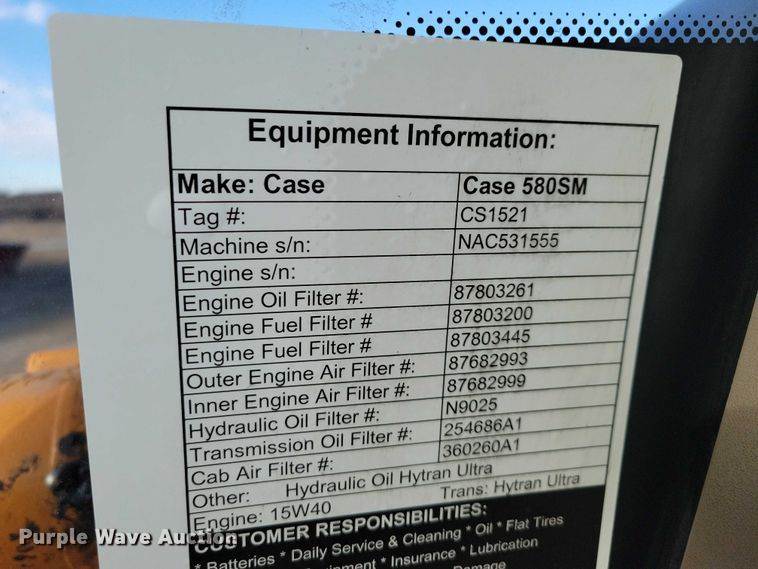 2005 Case 580M Series 2 backhoe, Hours: 5,142 on meter, Serial: N5C387916, Unit #: 53.84L, Engine, Cylinders: 4, Fuel type: Diesel,...
