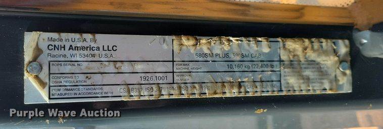2014 Case 580 Super N backhoe, Hours: 3,721 on meter, Serial: JJGN58SNPEC705443, Engine, FPT, Cylinders: 4, Fuel type: Diesel,...