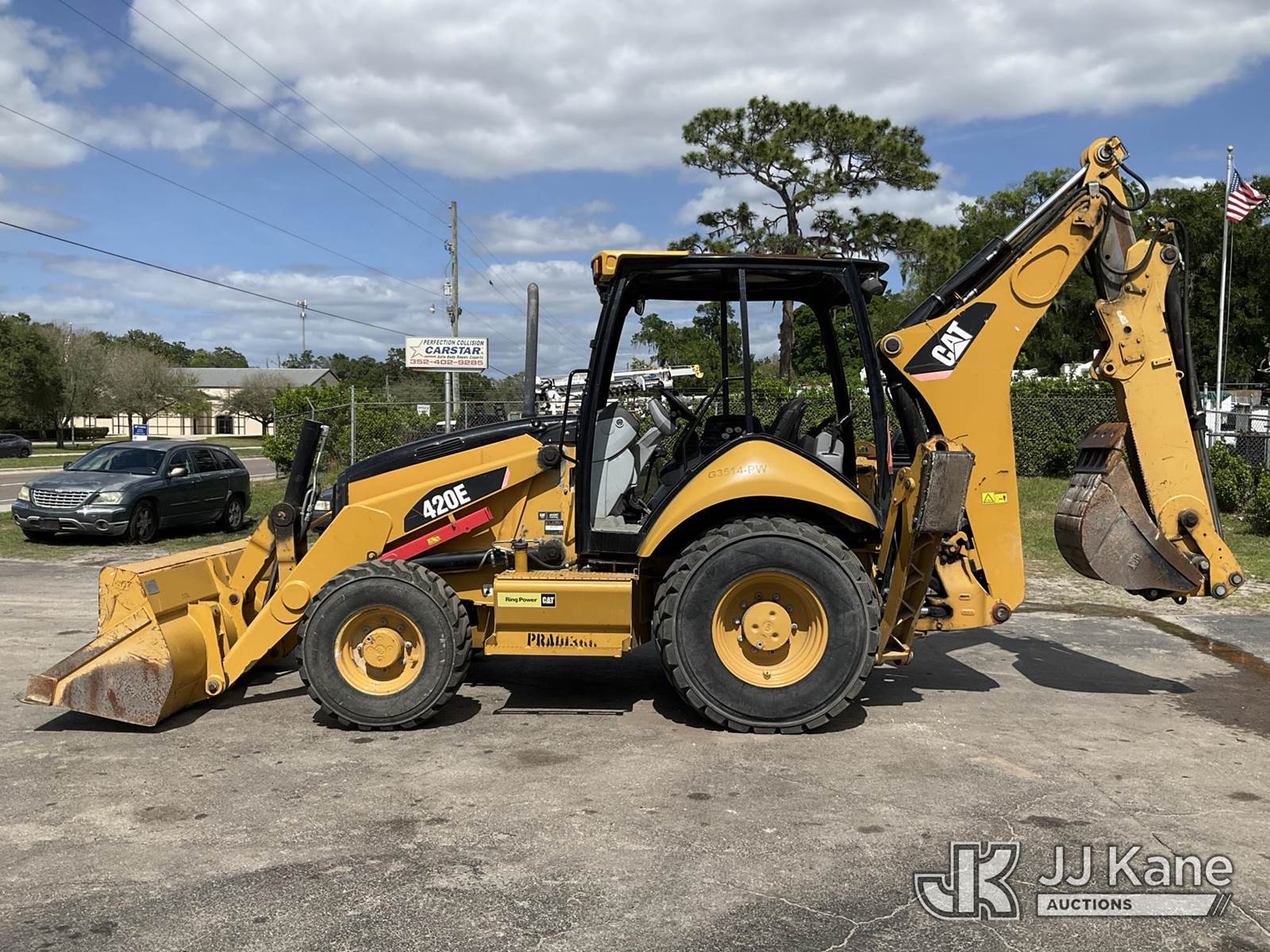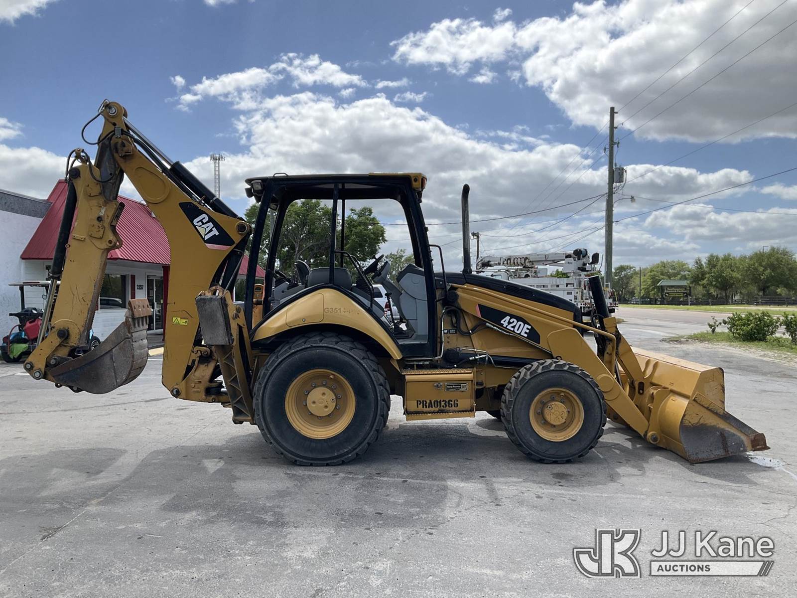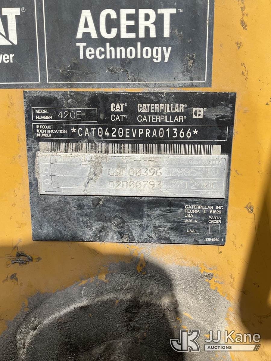 2010 Caterpillar 420E Tractor Loader Backhoe, s/n 0420EVPRA01366, diesel, powershift, A/C, with GP loader bucket, extendahoe, ROPS, (Runs, Moves, Operates) (Reads 3,747 hours) NOTE: This unit is being sold AS IS/WHERE IS via Timed Auction and is located in Ocala, FL. Inspection & preview days for this unit are by appointment only; please contact us at contact@jjkane.com or 84-Go-JJKane for more details. For more information & removal arrangements please contact Mike Lessard @ (352) 629-6677. (Buyer is responsible for removal. Assistance by consignor or JJ Kane Auctions is not assured.)