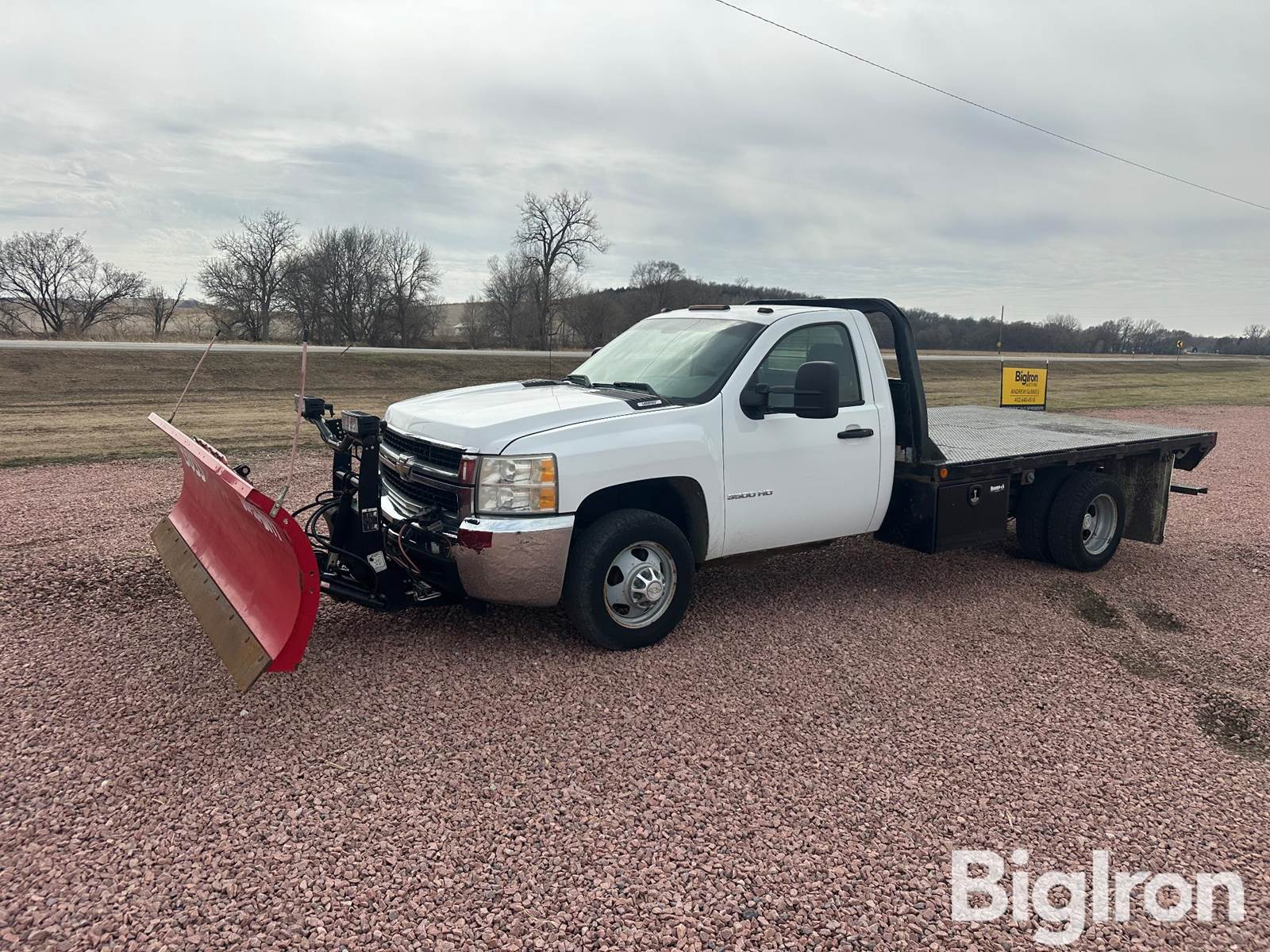 2010 Chevrolet 3500 HD 4x4 Pickup w/Boss Dozer Blade, 30,919 miles showing, Title Will Be Marked Miles Exempt, V-8 Chevrolet Vortec, Gas, Water Cooled Engine, Automatic Transmission, 4WD, Spring Suspension, Hydraulic Brakes, 225/75R17 Front Tires, 225/75R17 Rear Tires, Steel Rims, Heater, AC, Radio, Clearance Lighting & Additional Lighting W/ Dozer Blade, 12' Long x 8' Wide Flatbed W/ Hideaway 5th Wheel Ball, Receiver Hitch Bumper, Stake Pockets, Boss Quick Attach Dozer Blade, 9' Blade Width, Bolt On Cutting Edge, In Cab Remote Control (See Photos), VIN: 1GB6CZBK9AF105918