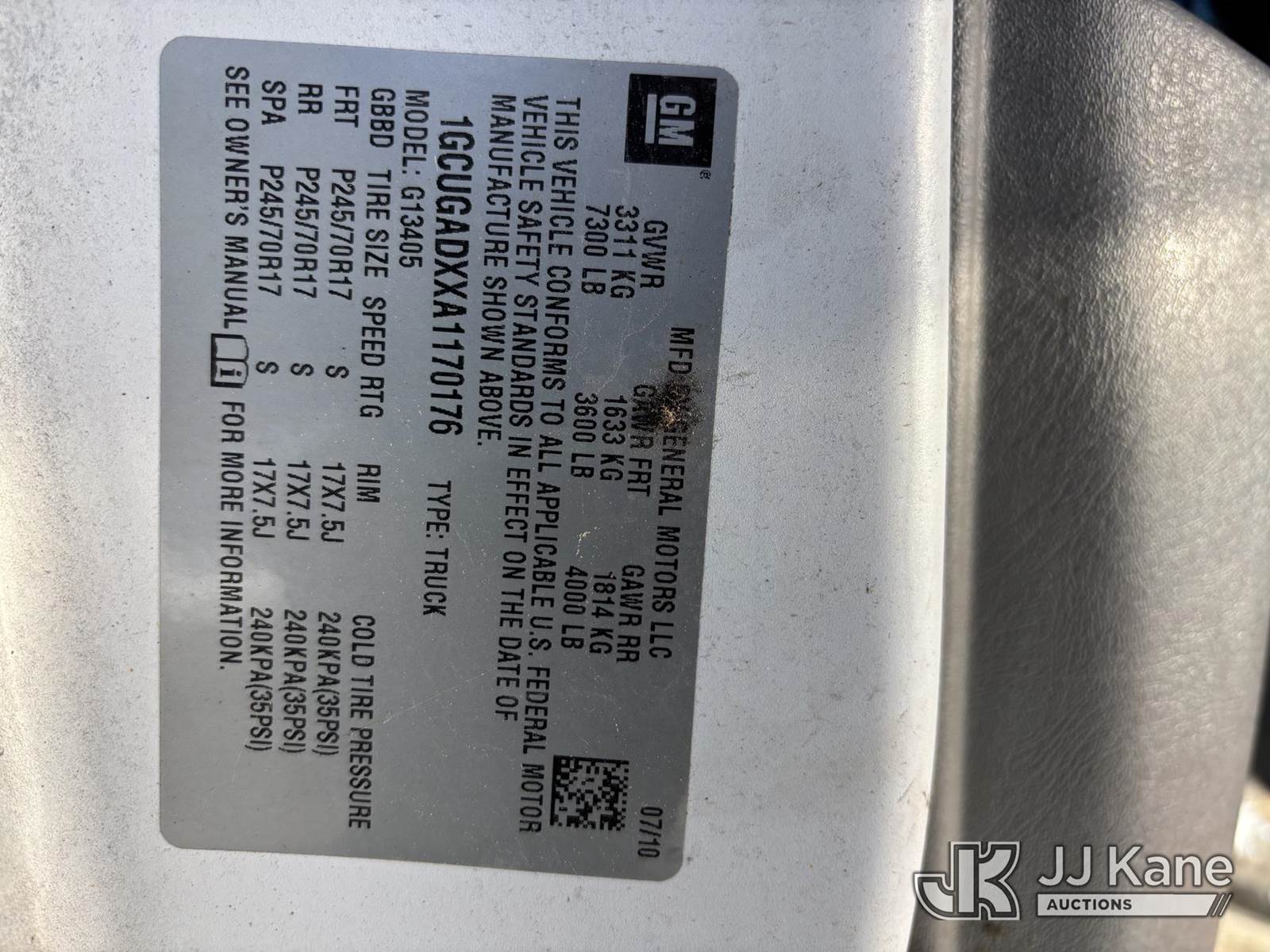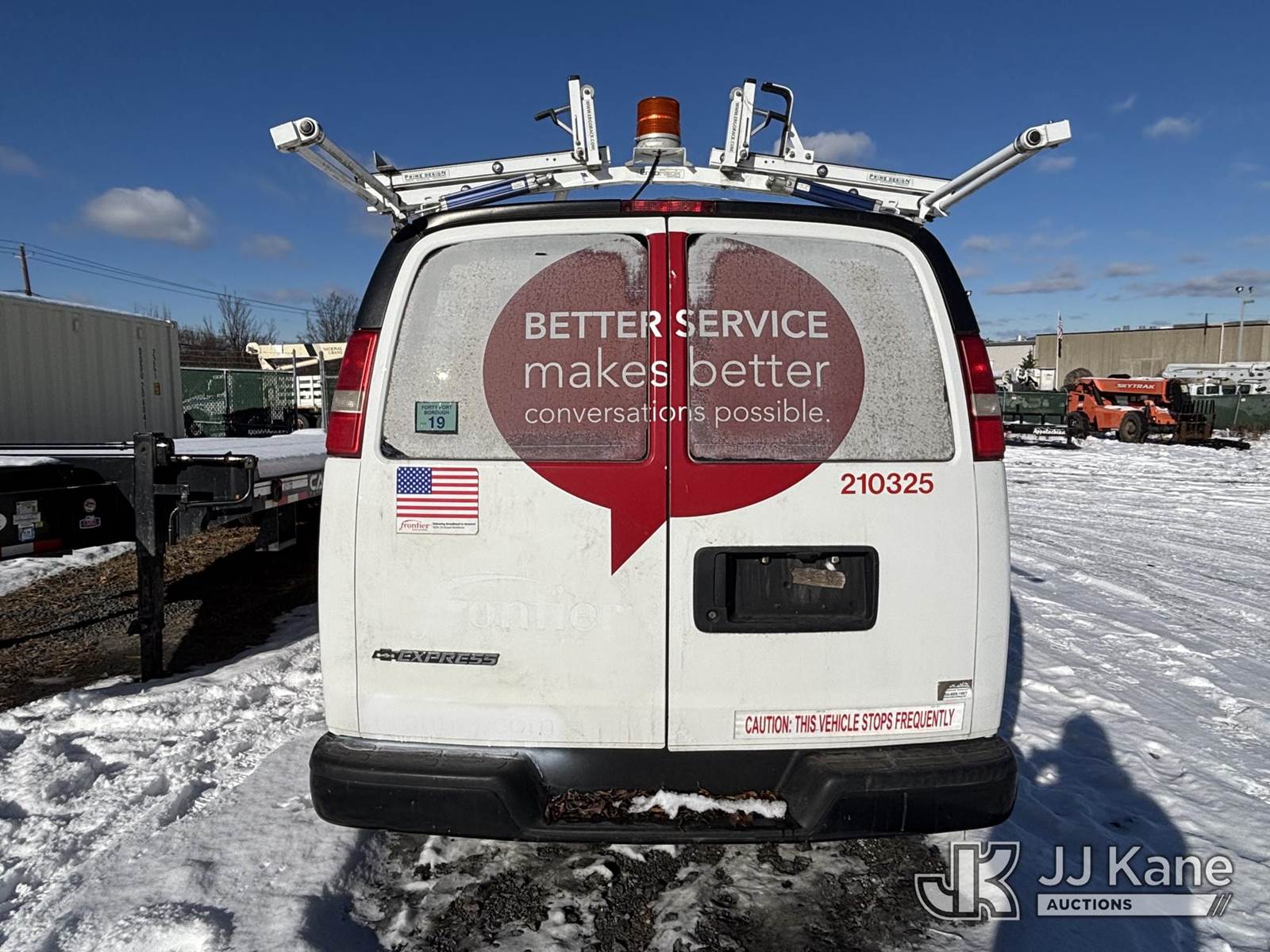 2010 Chevrolet Express G1500 Cargo Van, 6-cyl gas, Auto, A/C, with Ladder Rack & Inverter, (134,665 miles) (Runs & Moves On Jump Pack - Dies When Removed, Must Tow, Holes In Body, Body & Rust Damage) (Reads 11,061 hours) This is a Titled Item NOTE: This unit is being sold AS IS/WHERE IS via Timed Auction and is located in Plains, PA. For pre-sale questions, please contact Mary Darlington @ 570-899-4930 or Mary.Darlington@JJKane.com. JJ Kane Plains, PA yard is open for inspection on the Friday and Monday before the sale date from 9:00 am to 3:00 pm. REMOVAL: All items must be removed by 10 calendar days after the sale, Monday - Friday (Excluding Holidays). (Buyer is responsible for removal. Assistance by consignor or JJ Kane Auctions is not assured.)