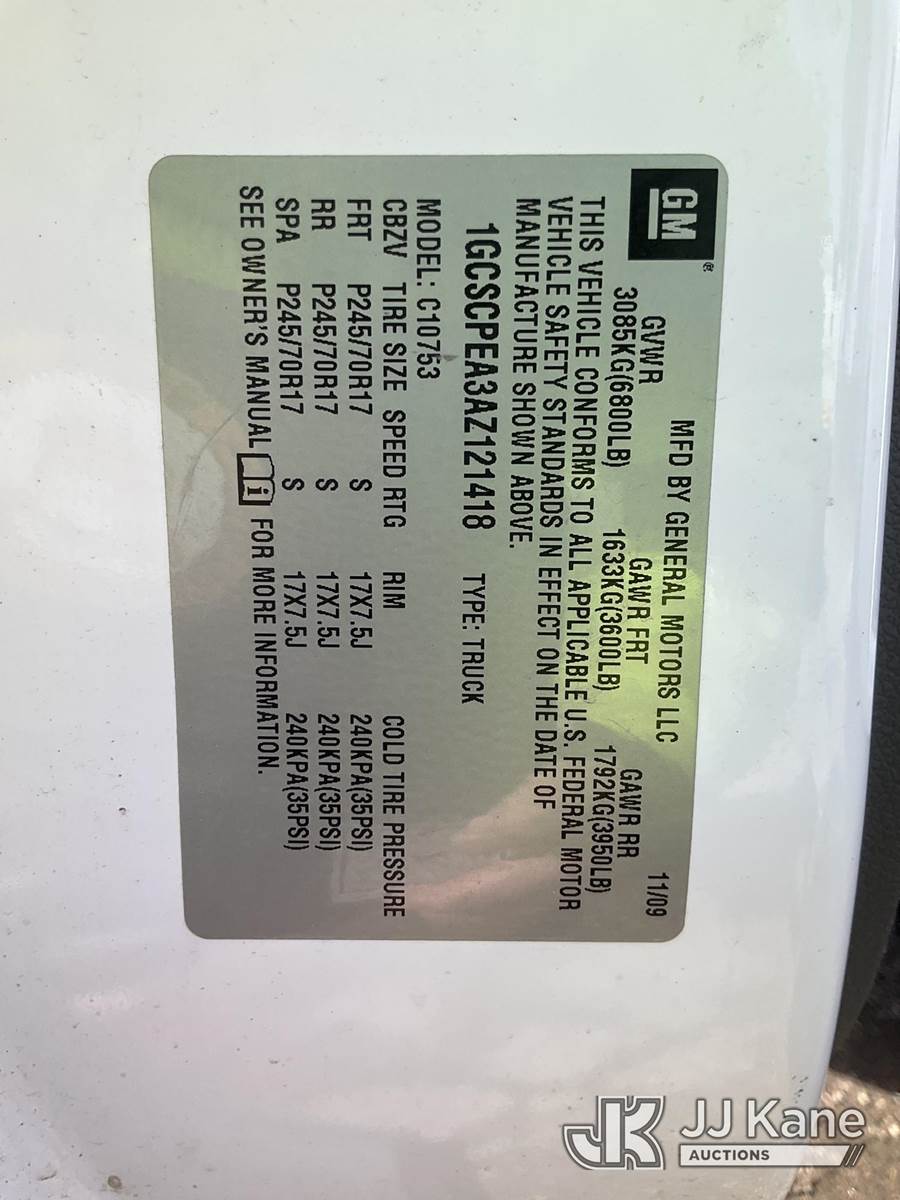 2010 Chevrolet Silverado 1500 Extended-Cab Pickup Truck, 4.8L V8 OHV 16V gas, RWD, 4-Speed Automatic, A/C, (150,912 miles) (Runs & Moves) (Check Engine Light On, Rust Damage, Bed/Wheel-Well Rusted Through) This is a Titled Item NOTE: This unit is being sold AS IS/WHERE IS via Timed Auction and is located in South Beloit, IL. Inspection & preview days for this unit are the 2 business days prior to the first day of items closing for this auction, item is located at 14354 Dearborn Ave South Beloit, IL and hours of operations are 8a-4p. For pre-sale questions, please contact Derek Eklund at (608) 904-0618 or (derek.eklund@jjkane.com). (Buyer is responsible for removal. Assistance by consignor or JJ Kane Auctions is not assured.)