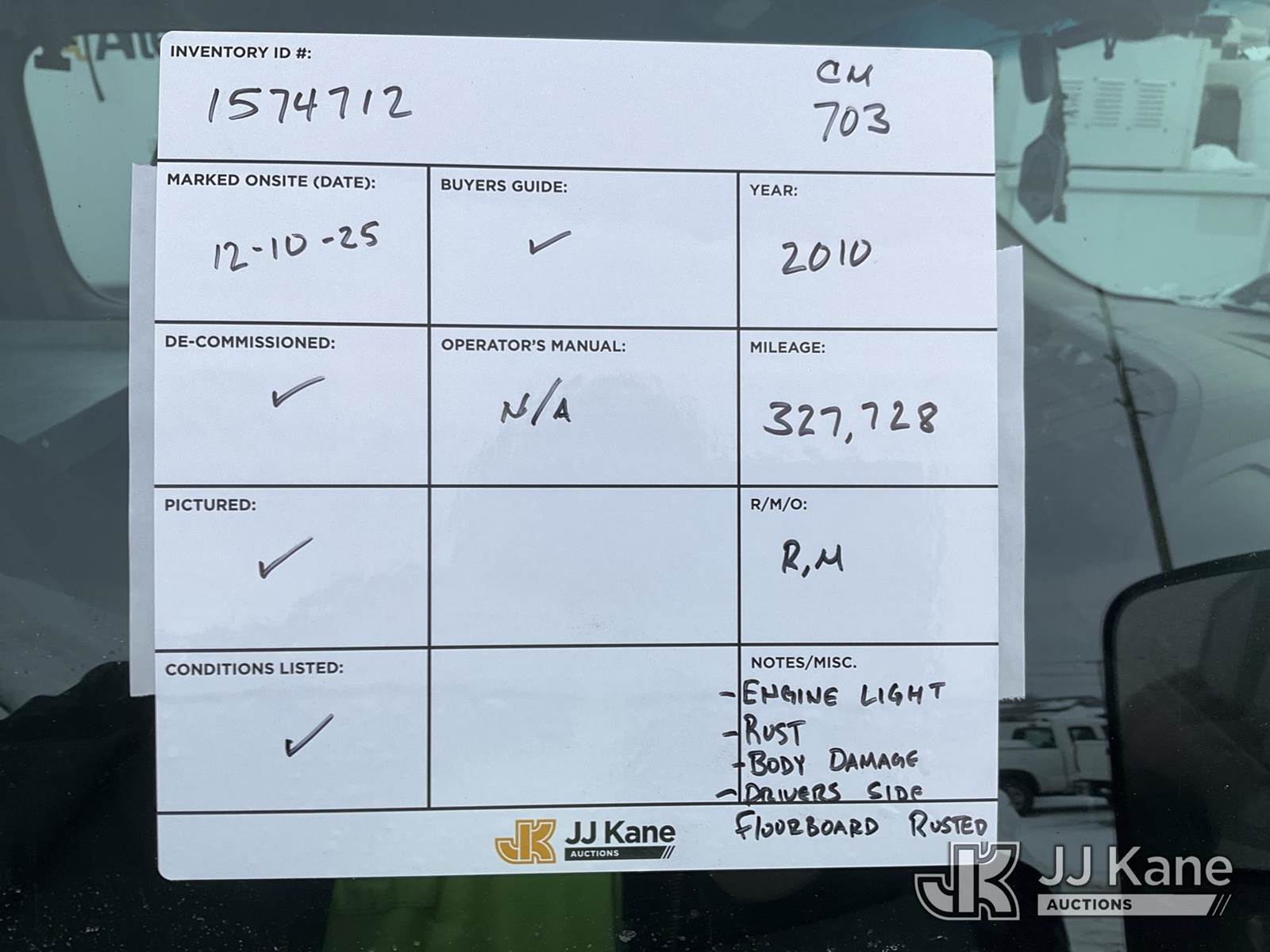 2010 Chevrolet Silverado 3500HD Work Truck Ext. Cab Service Truck, 6.0L V8 OHV 16V 6-Speed Automatic, 4wd, Gas, A/C, with inverter, (327,728 miles) (Runs, Moves) (Engine Light, Rust, Body Damage, Drivers Floorboard Rusted Through) This is a Titled Item NOTE: This unit is being sold AS IS/WHERE IS via Timed Auction and is located in Charlotte, MI. Inspection & preview days for this unit are the 2 business days prior to the first day of items closing for this auction, item is located at 750 Island Hwy Charlotte, MI 48813 and hours of operations are 8a-4p. For pre-sale questions, please contact Corey Cook at (517) 983-0796 or corey.cook@jjkane.com (Buyer is responsible for removal. Assistance by consignor or JJ Kane Auctions is not assured.)