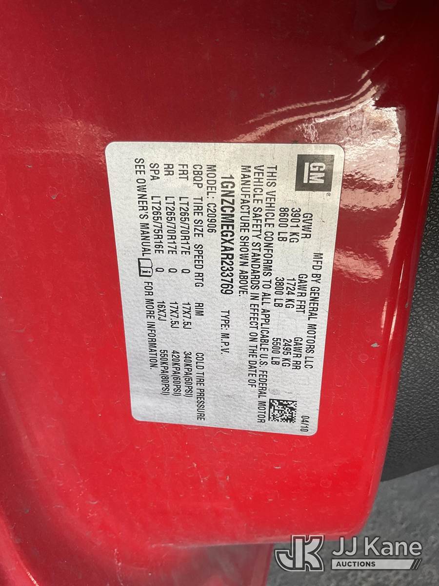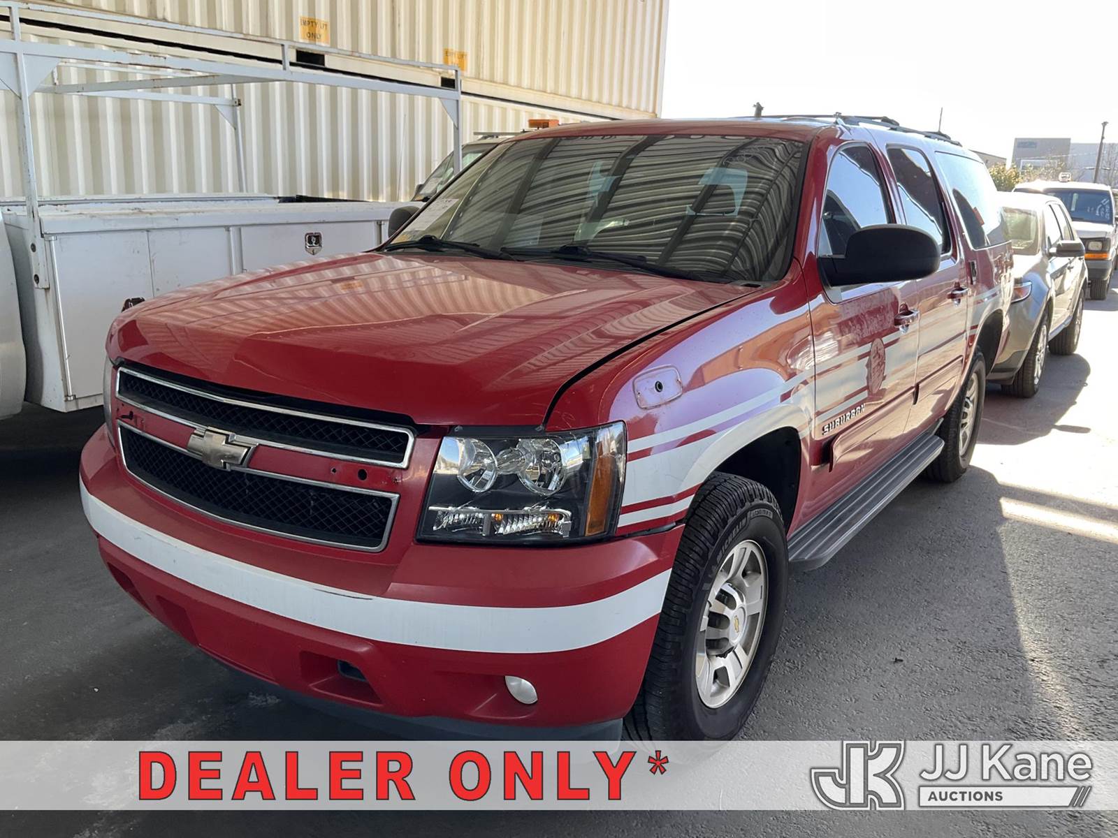 2010 Chevrolet Suburban 4-Door Sport Utility Vehicle, 8-cyl gas, 6-Speed Automatic, A/C, with Tow package, (254,550 miles) (Runs & Moves) (Lifter Tick, Traction Control Light On, Interior Stripped Of Parts) (Bidding Restricted to Licensed Vehicle Dealers Only), This is a Titled Item NOTE: This unit is being sold AS IS/WHERE IS via Timed Auction and is located in Jurupa Valley, CA. Inspection & preview days for this unit are the 2 business days prior to the first day of items closing for this auction, item is located at 4510 Muth Way Jurupa Valley, CA 92509 and hours of operations are 8a-4p. For pre-sale questions, please contact please contact Office Staff @ (310) 353-7140. Dealer License Number 45696. (Buyer is responsible for removal. Assistance by consignor or JJ Kane Auctions is not assured.)