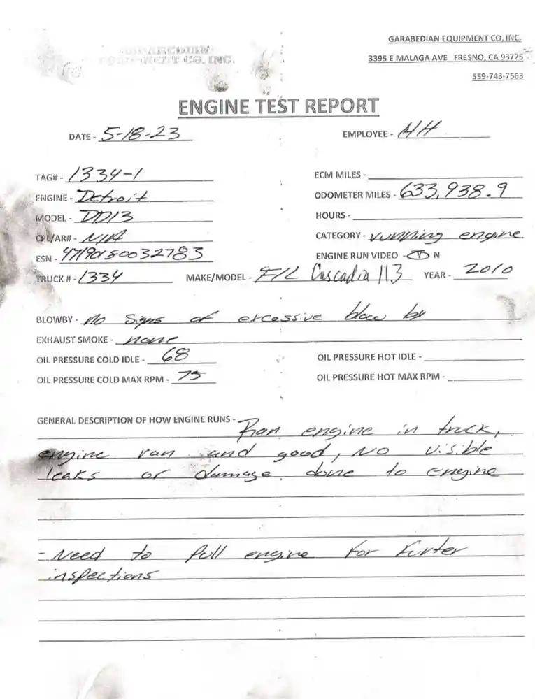 DD13 EPA07, 410 HP, S/N 471901S0032783, 633,996 Odometer Miles. Engine Runs Good. See Video And Test Report.