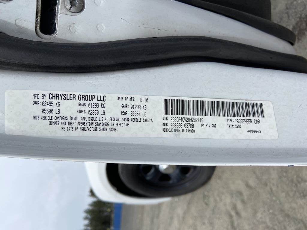 Location: Spokane WA ***City Government Surplus*** VIN: 2B3CA4CV2AH282018 Engine: 3.5L V6 Gas Transmission: Automatic *No center console, missing interior door panels* Spotlight, power windows, power mirrors, power locks, A/C, AM/FM/CD, 225/60R18 tires. Miles: 140,081